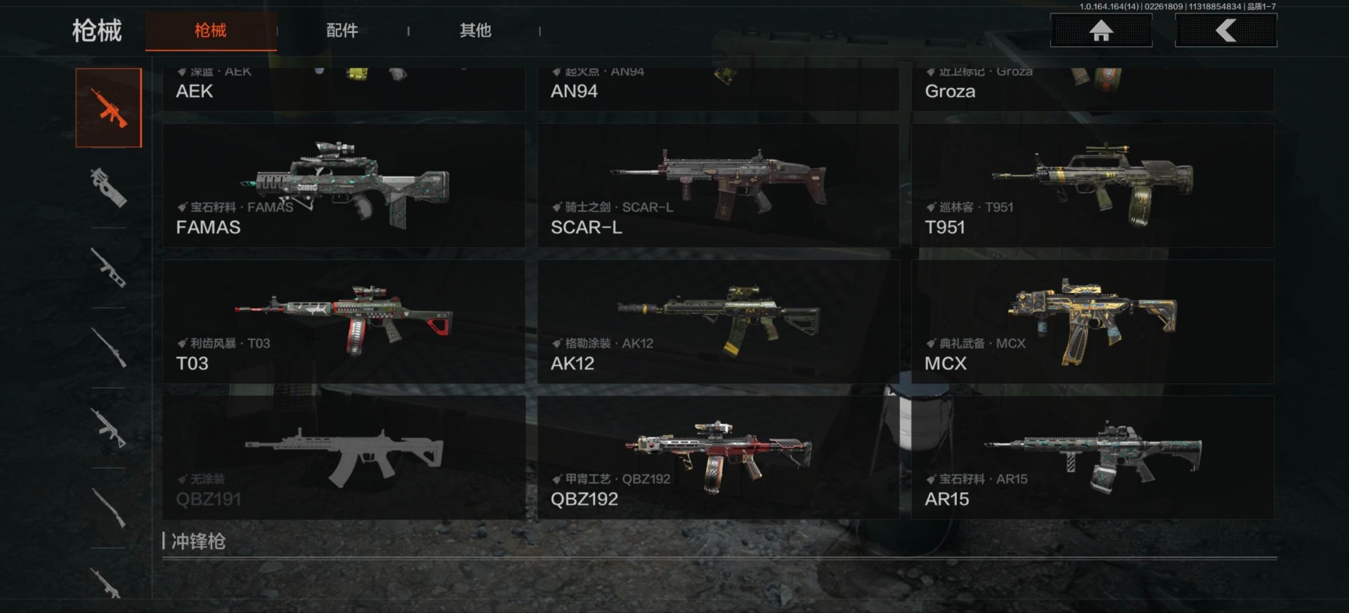 【金色枪皮】近卫荣誉·RPK16,包络战术·AKM,地脉深处·FAL,镀火熔金·H416,骑士之剑·VSS