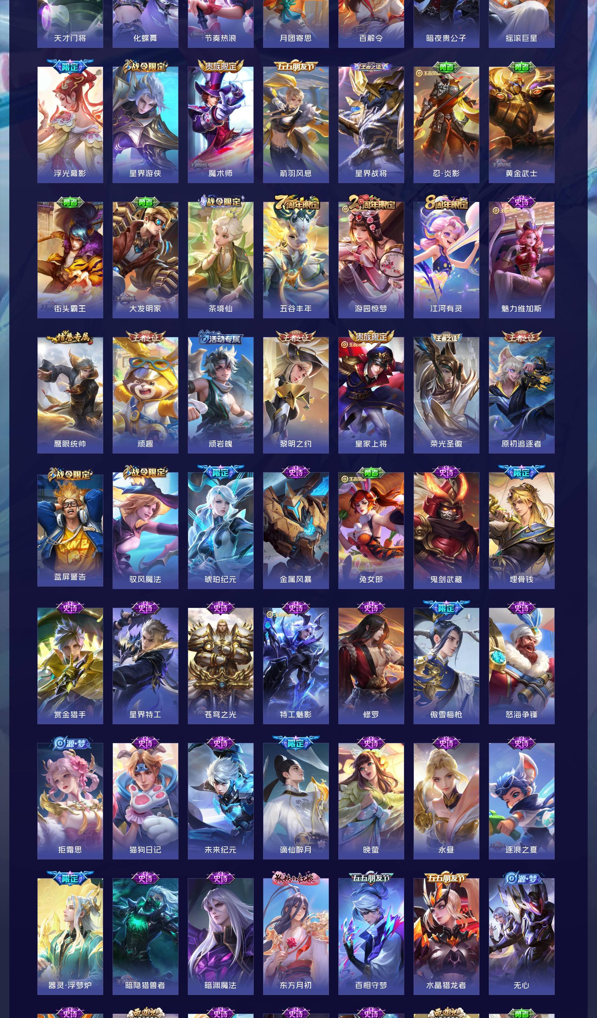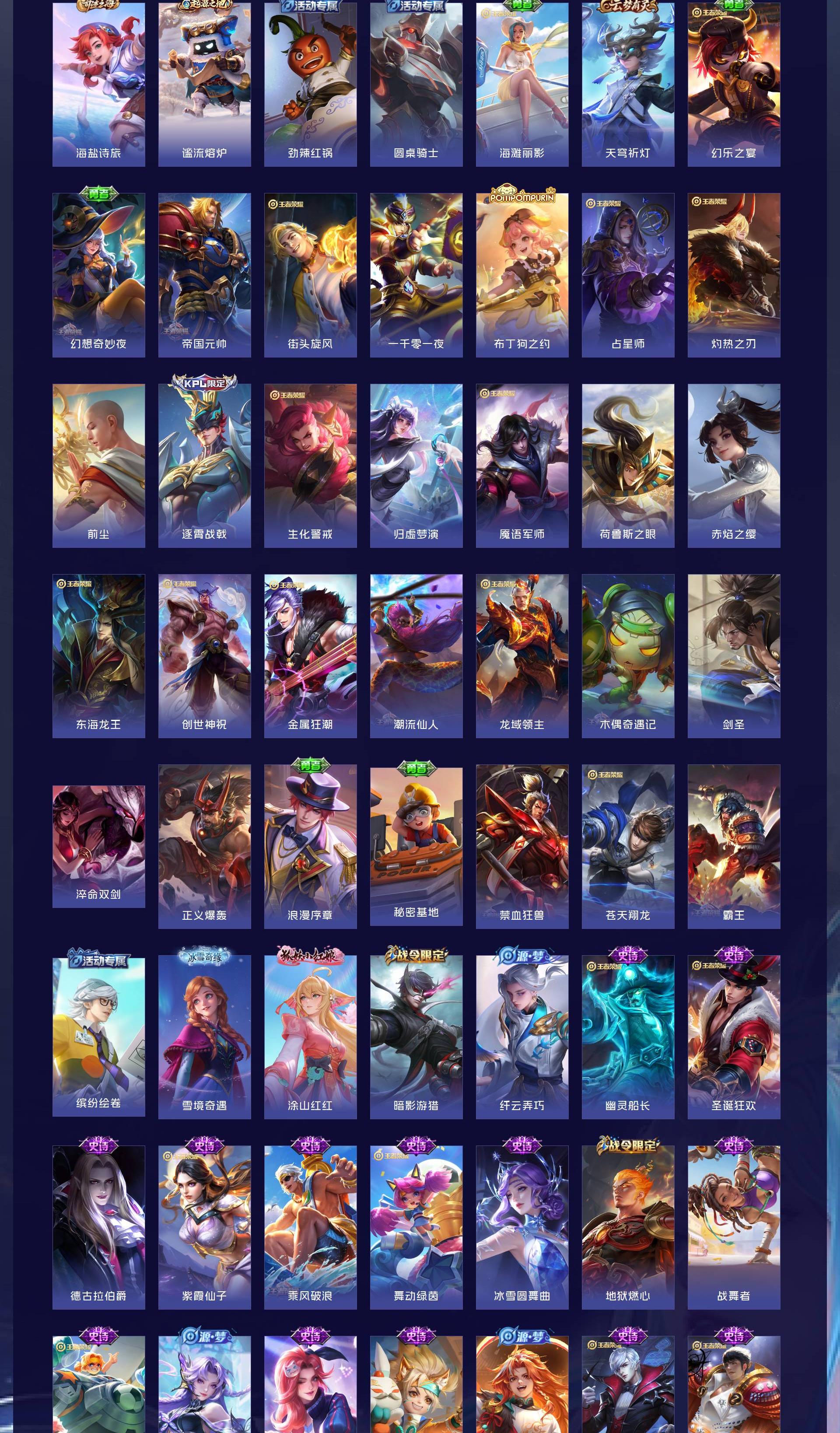 V7 皮肤266 英雄128 最强王者 荣耀典藏1 珍品传说2 传说20 其他皮肤250
