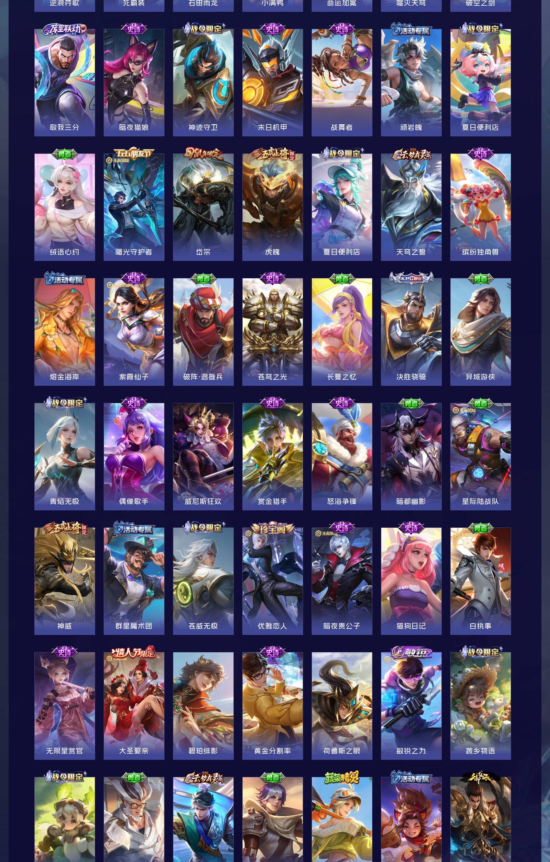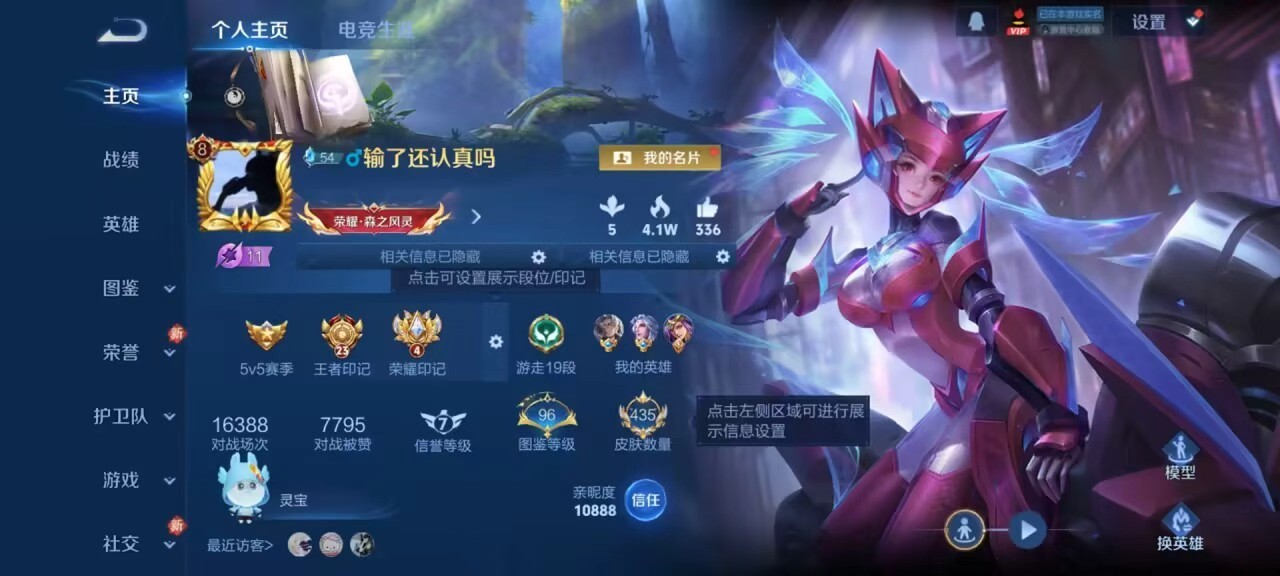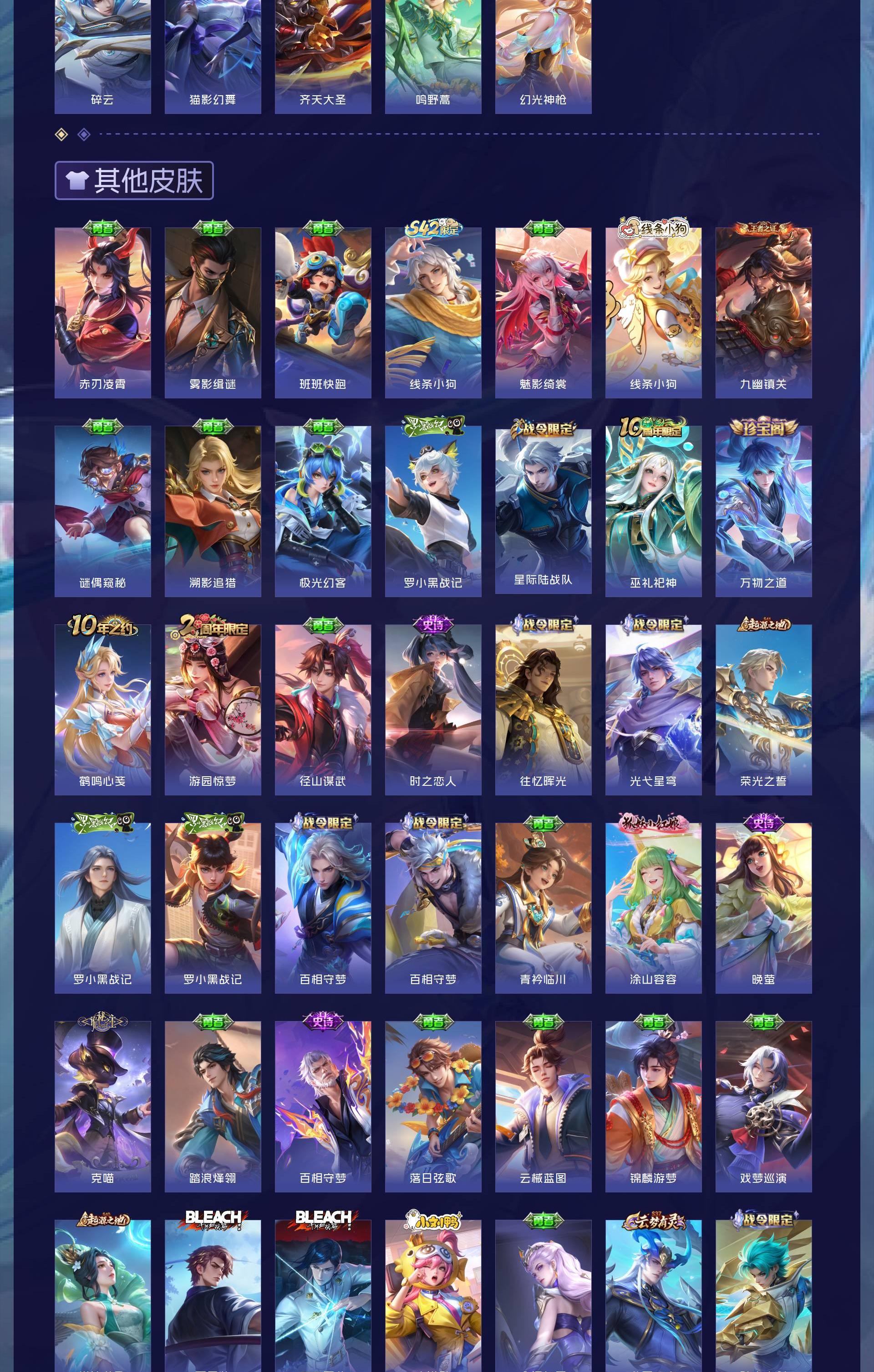 V8 皮肤435 英雄129 至尊星耀 荣耀典藏3 无双皮肤1 传说19 其他皮肤419