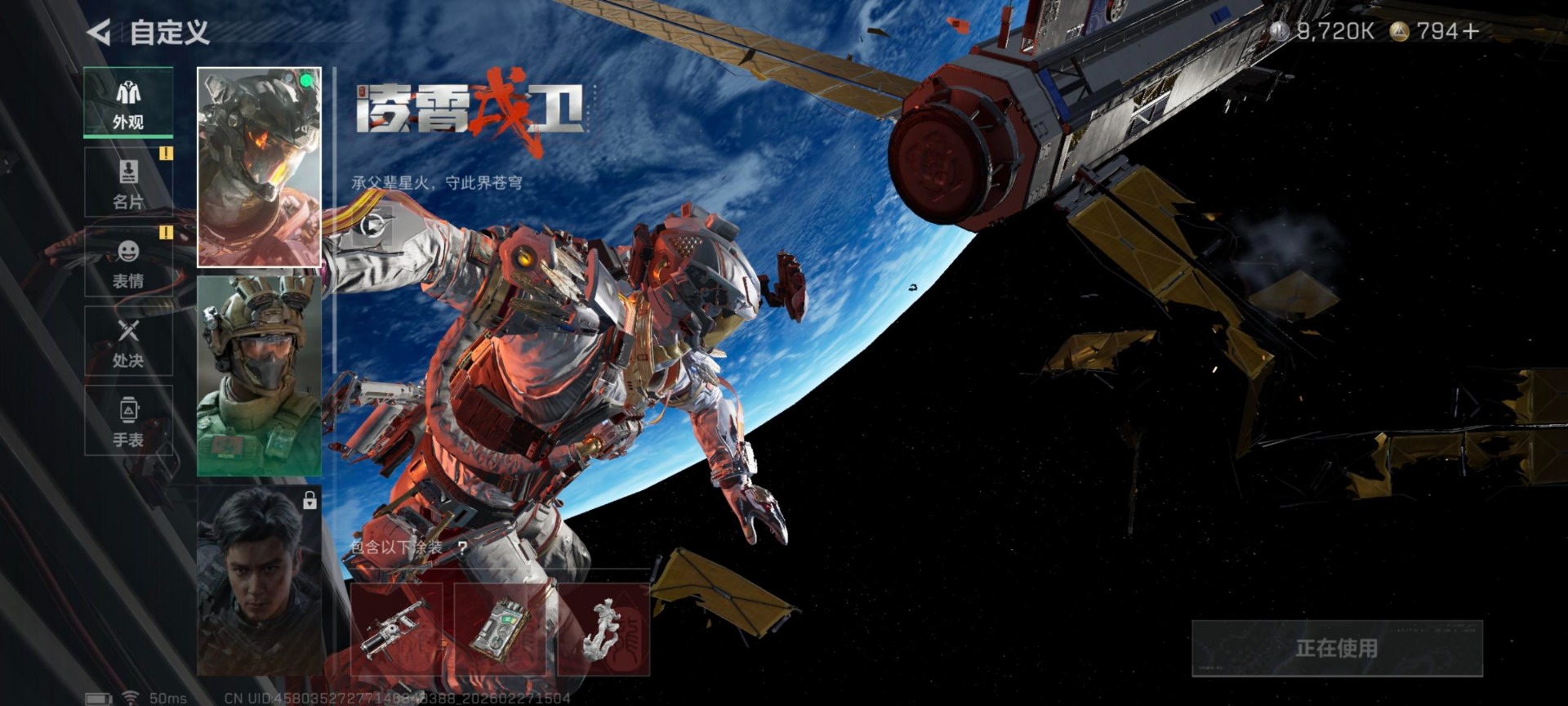 总资产:219.4M 1干员外观 16传说枪械 哈夫币:9.720K