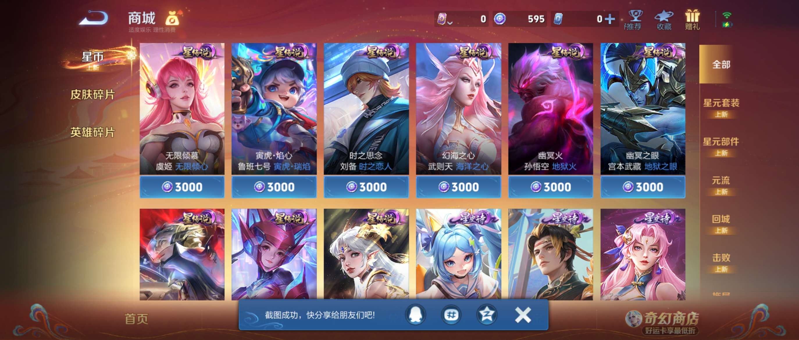 有星币还有皮肤碎片韩信的街头霸王 腾讯视频两个月的 SVP 一年 VIP 一年VIP200