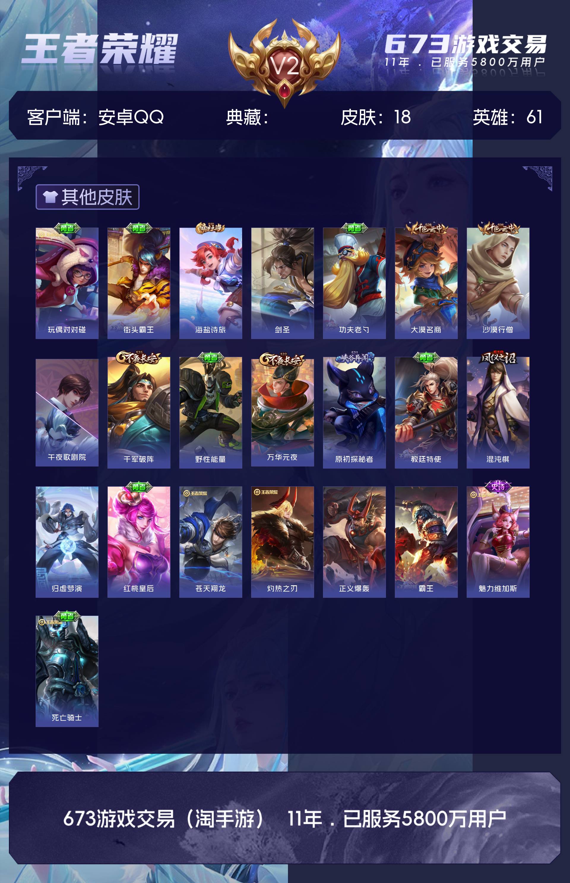V2 皮肤18 英雄61 荣耀黄金 其他皮肤22
