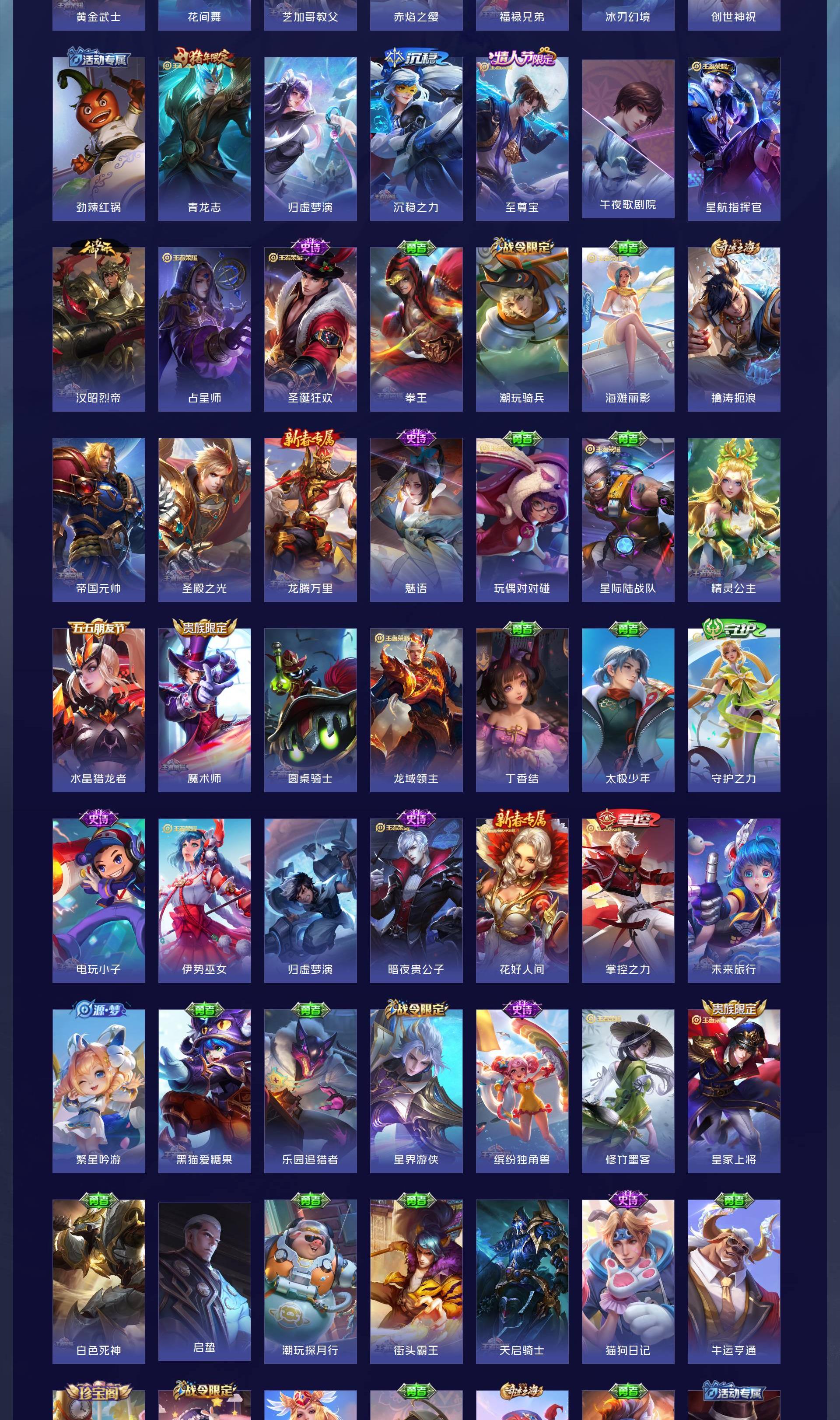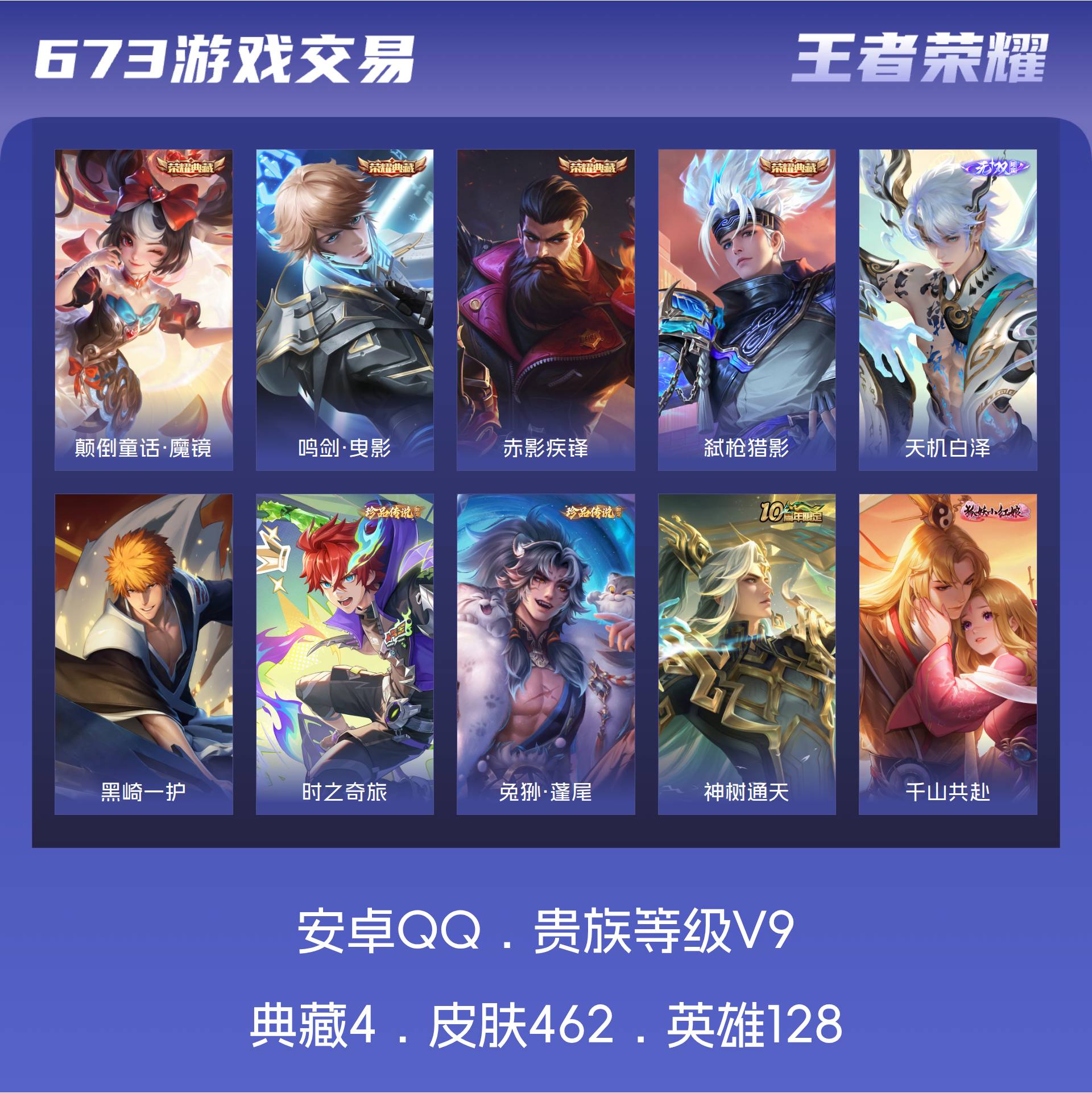 V9 皮肤462 英雄128 无双王者 荣耀典藏4 无双皮肤1 珍品传说3 传说38 其他皮肤423