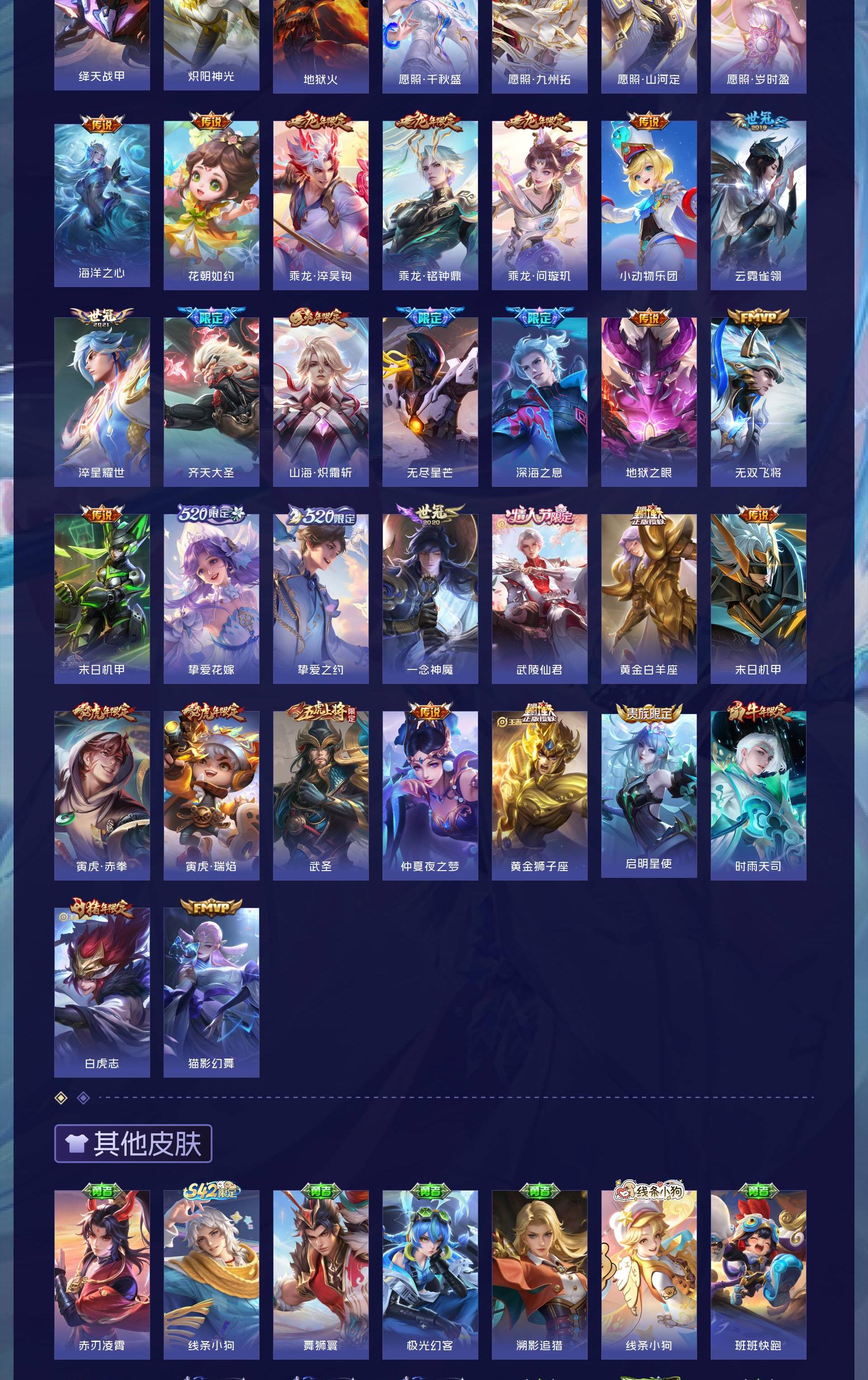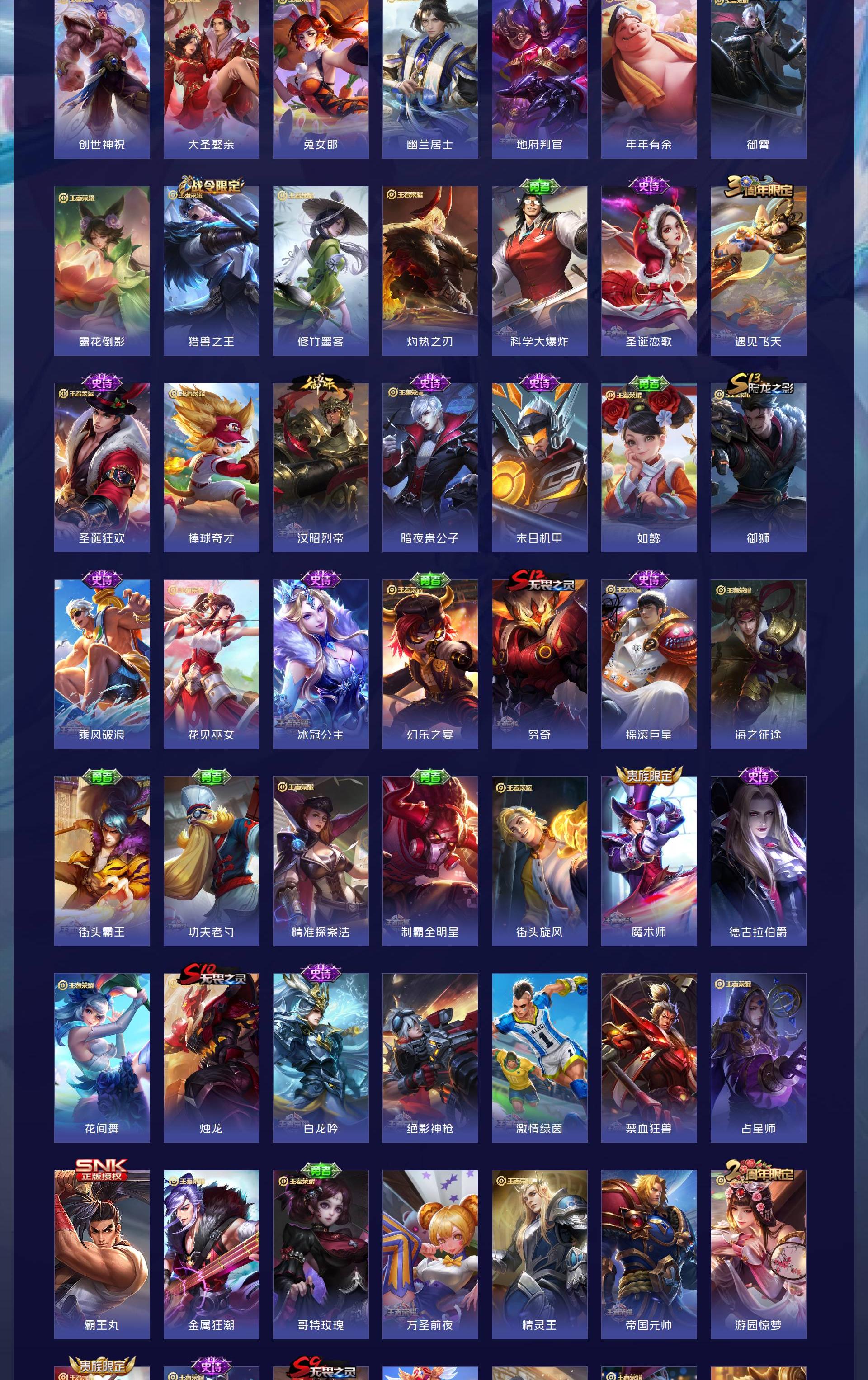 V10 皮肤492 英雄129 至尊星耀 荣耀典藏4 珍品传说4 传说51 其他皮肤439