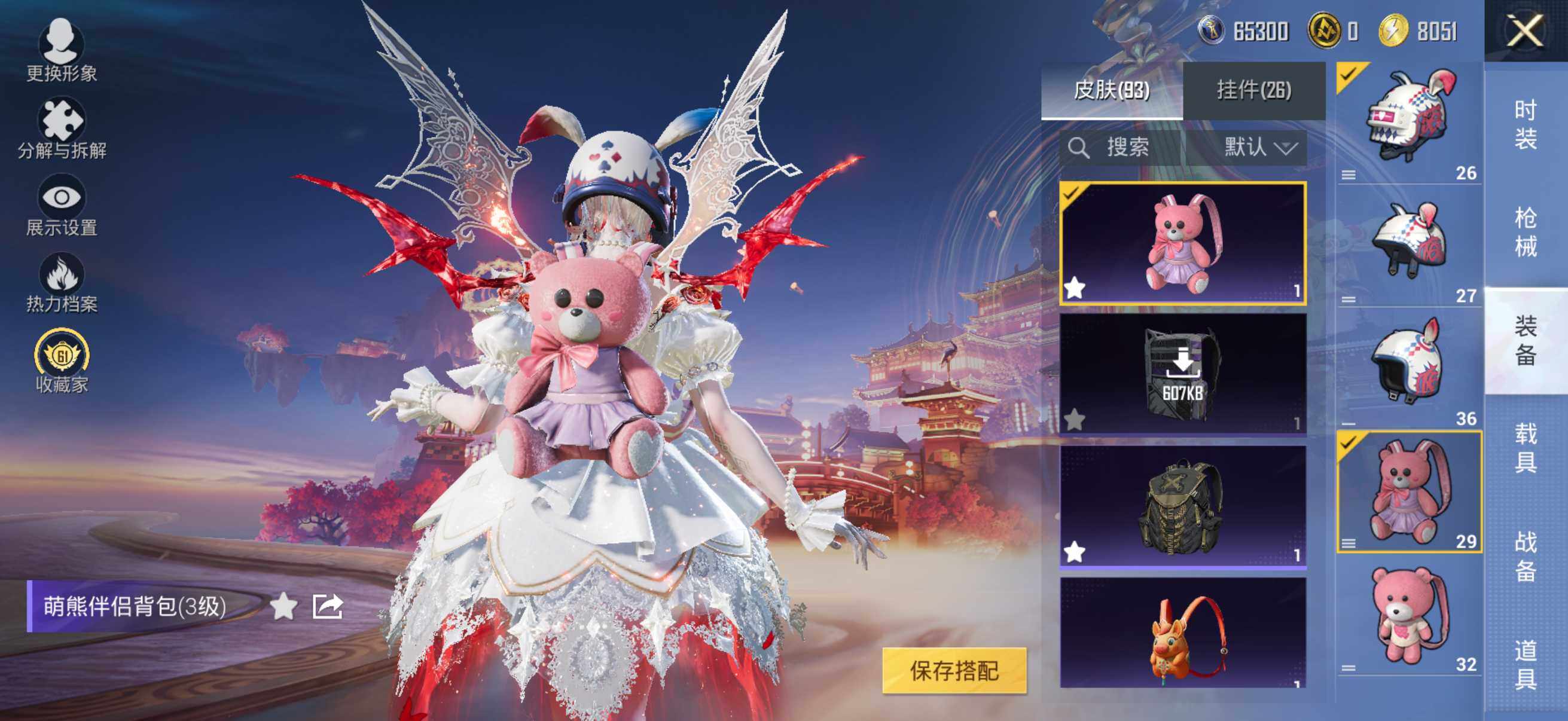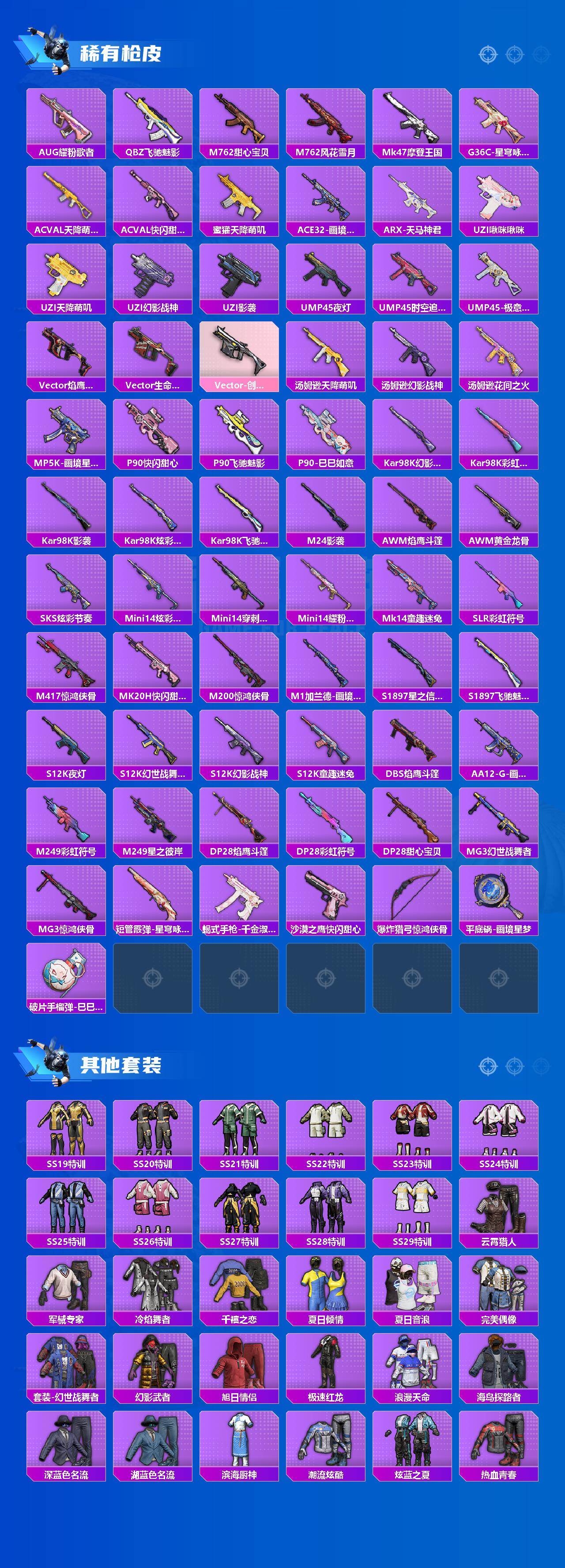 2红装-蓝螳螂-童趣头盔-萌熊背包-苹果 微信-2神装-6粉装-12特效枪-0载具-2粉色飞行器-57886热力值-10王牌印记-142套装-188枪皮