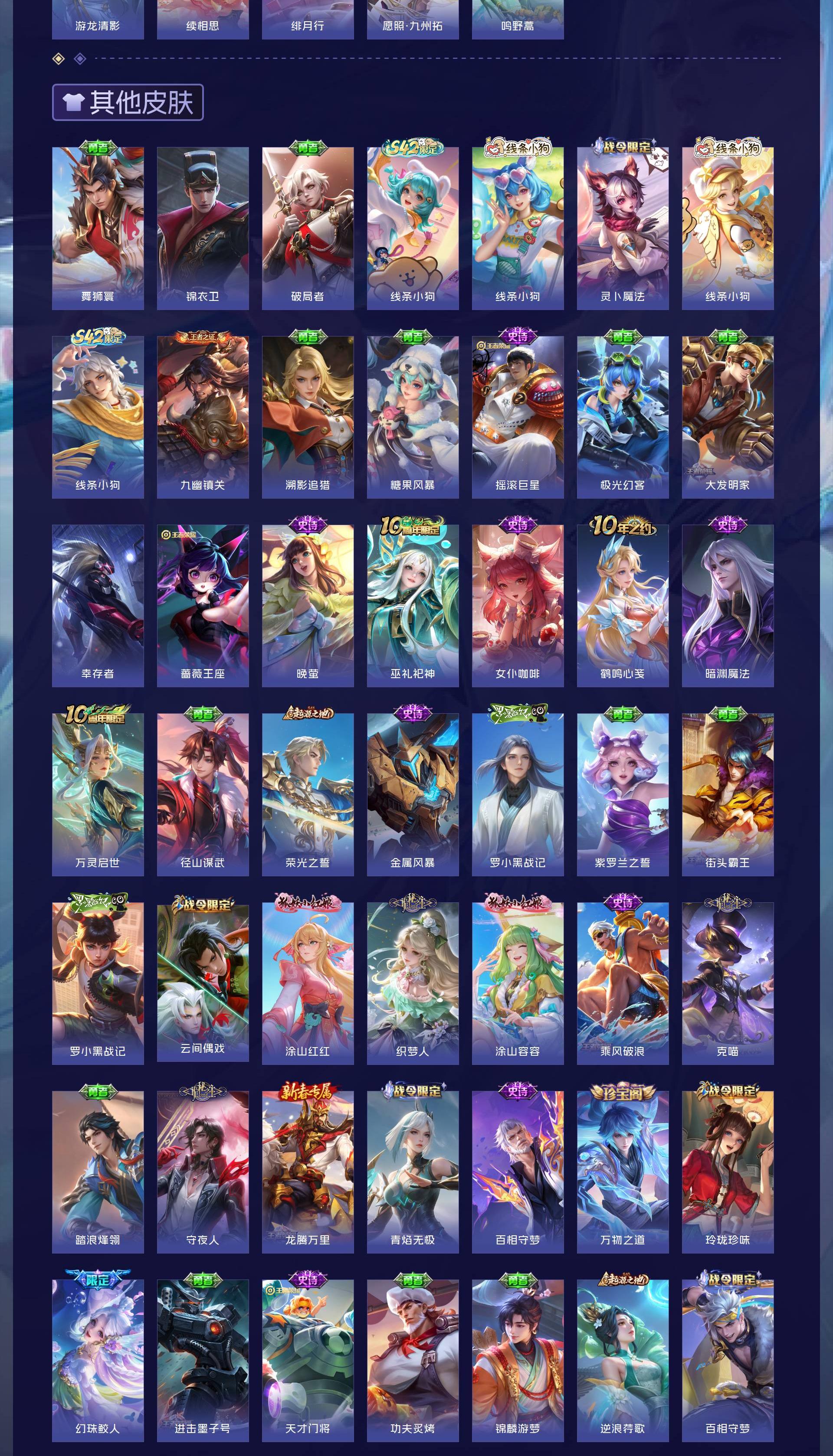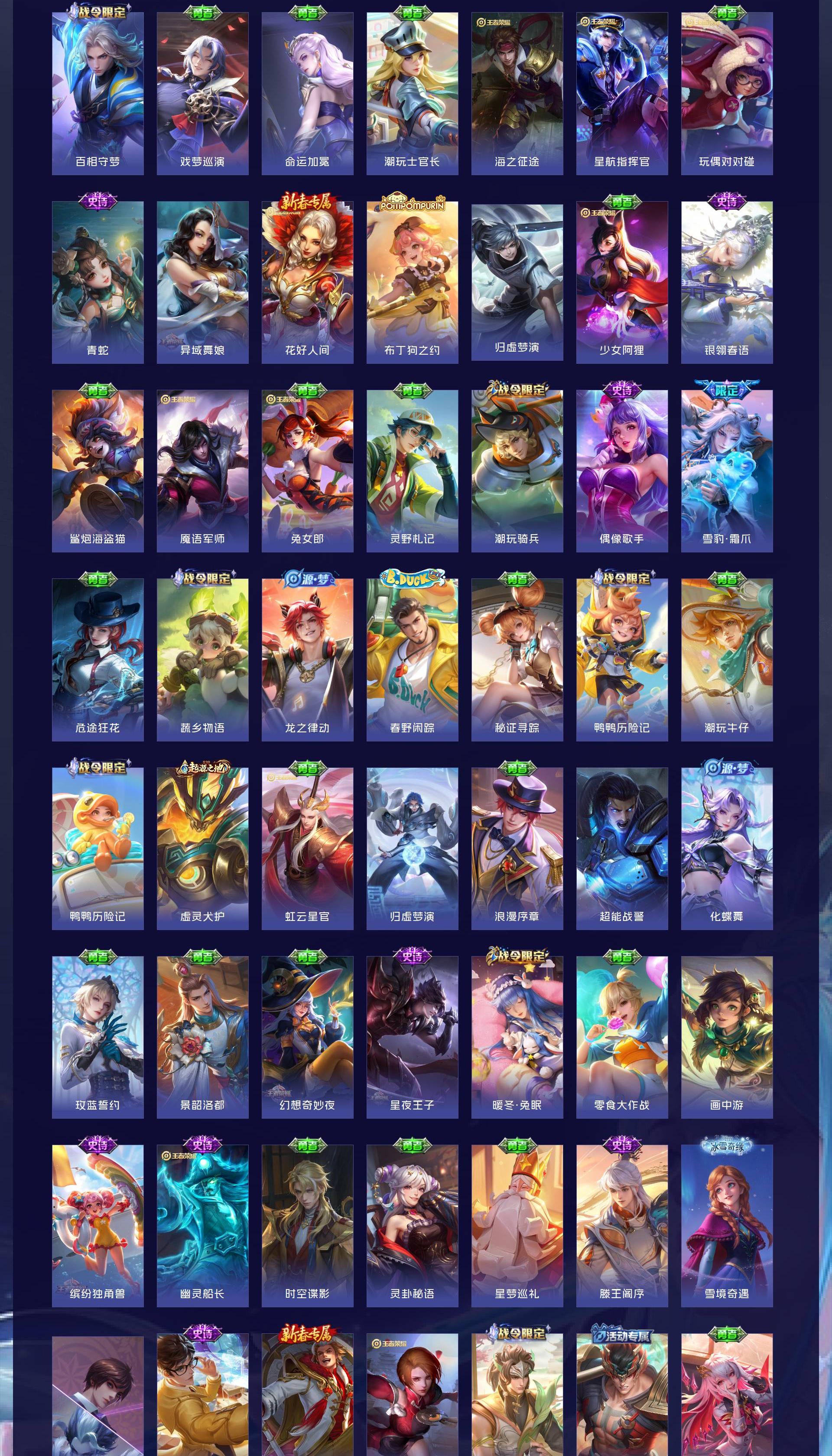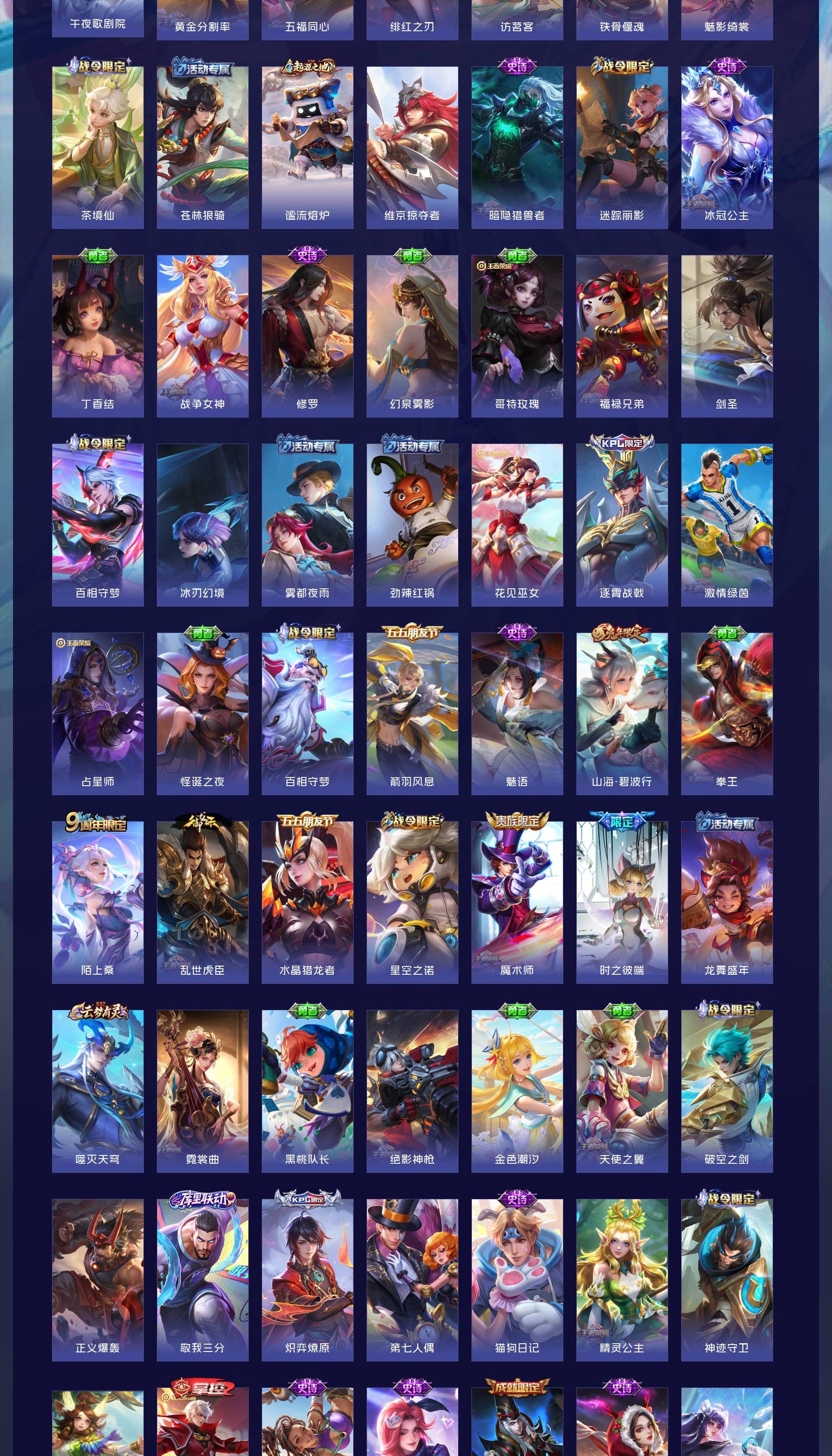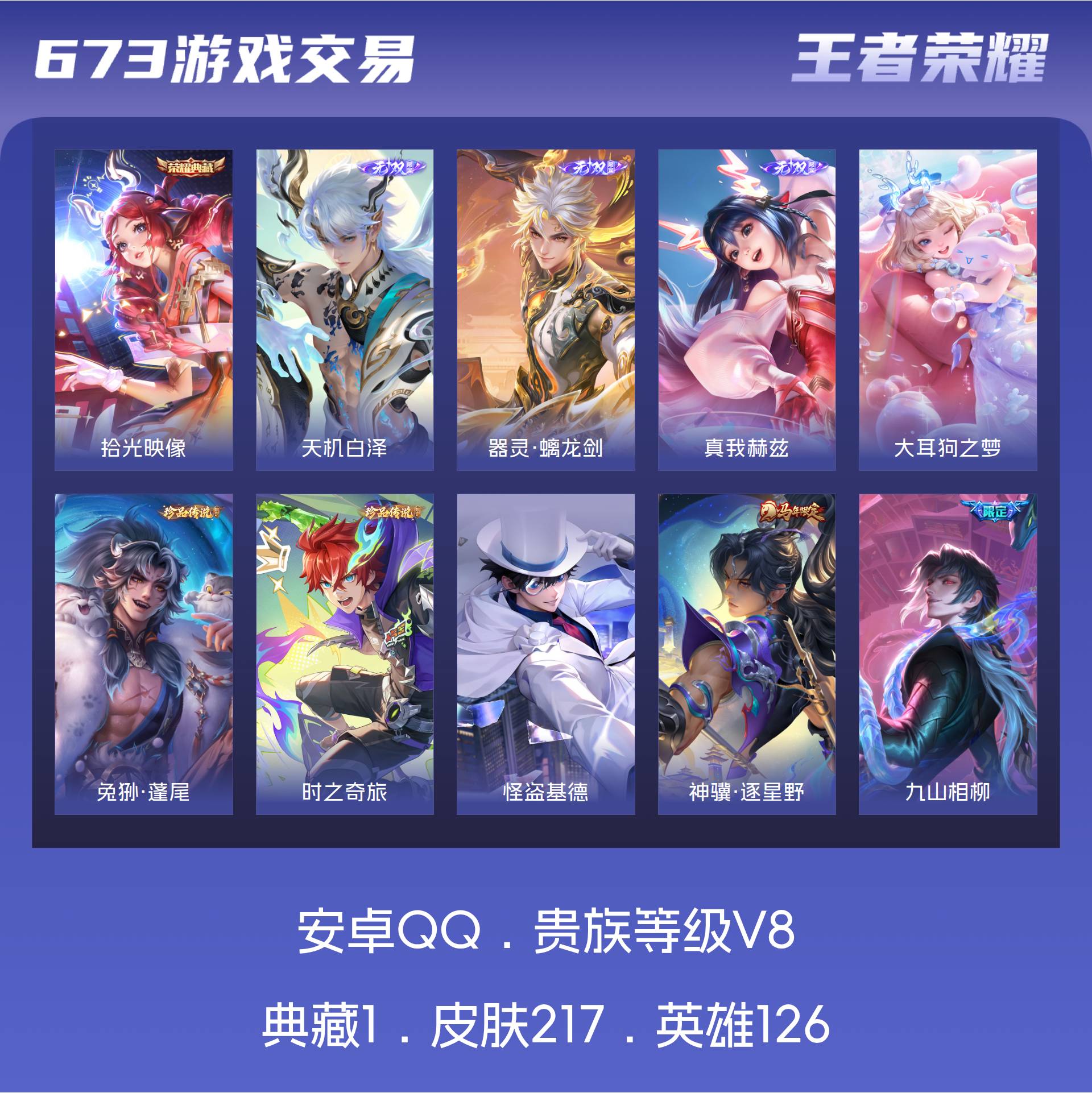 V8 皮肤217 英雄126 至尊星耀 荣耀典藏1 无双皮肤3 珍品传说4 传说12 其他皮肤202