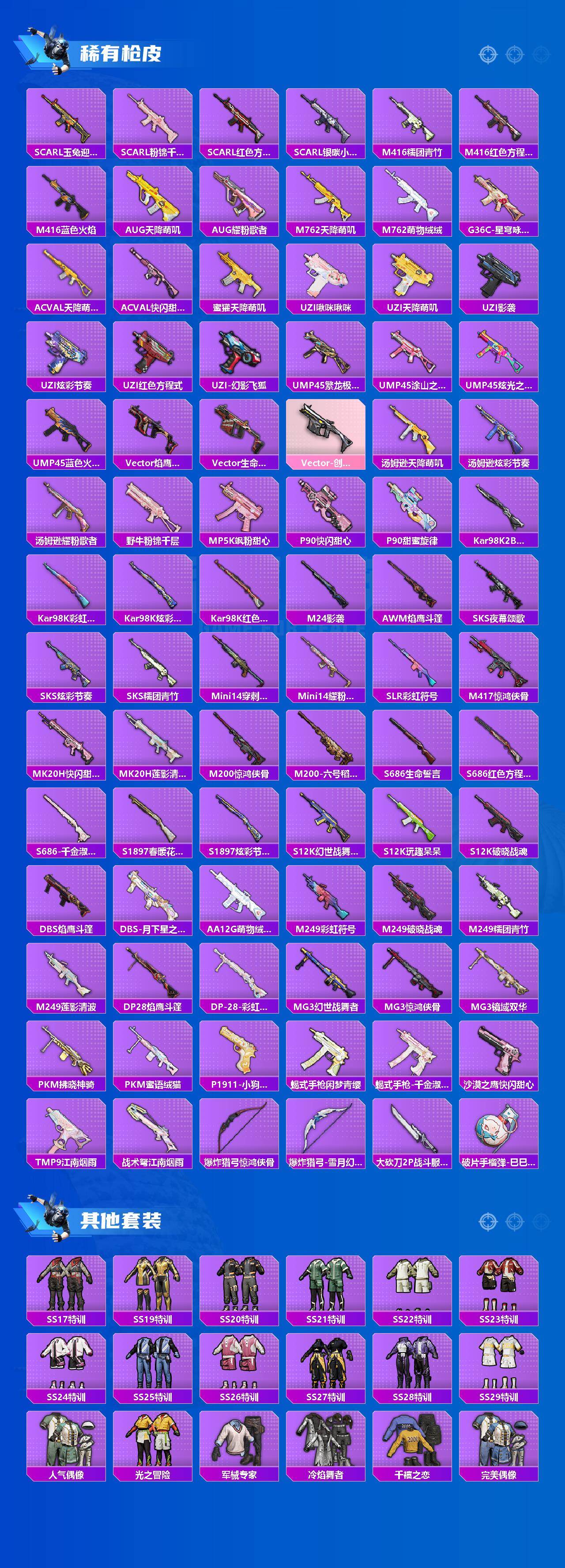 【粉色枪皮等级】:AKM-绿萝繁花(五级),SCAR-L-锦绣绵绵(五级),M416-电玩时刻(五级),GROZA-镜光银凌(五级),AUG-暖羊咩