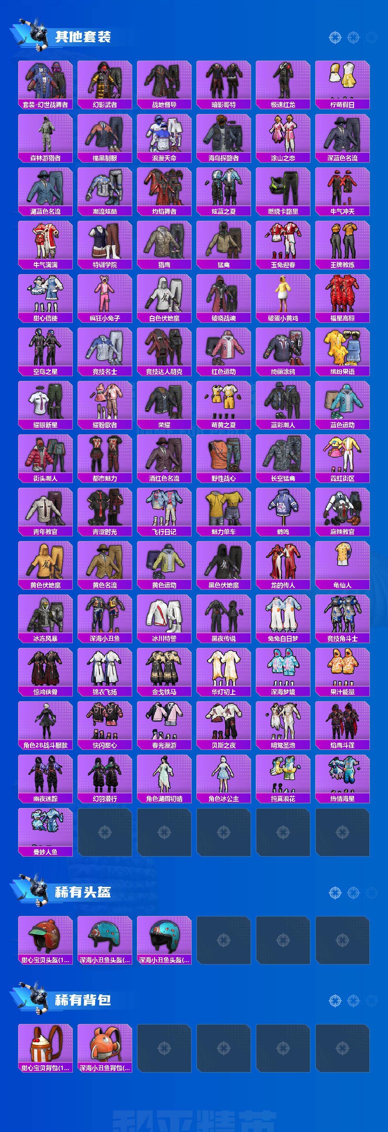 【热门品类】:套装-浪漫天命,套装-深海小丑鱼,套装-小丑鱼,角色-2B战斗服款,套装-龟仙人,套装-暗影哥特