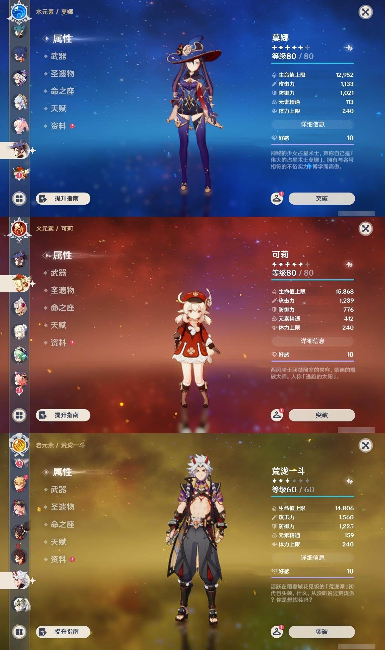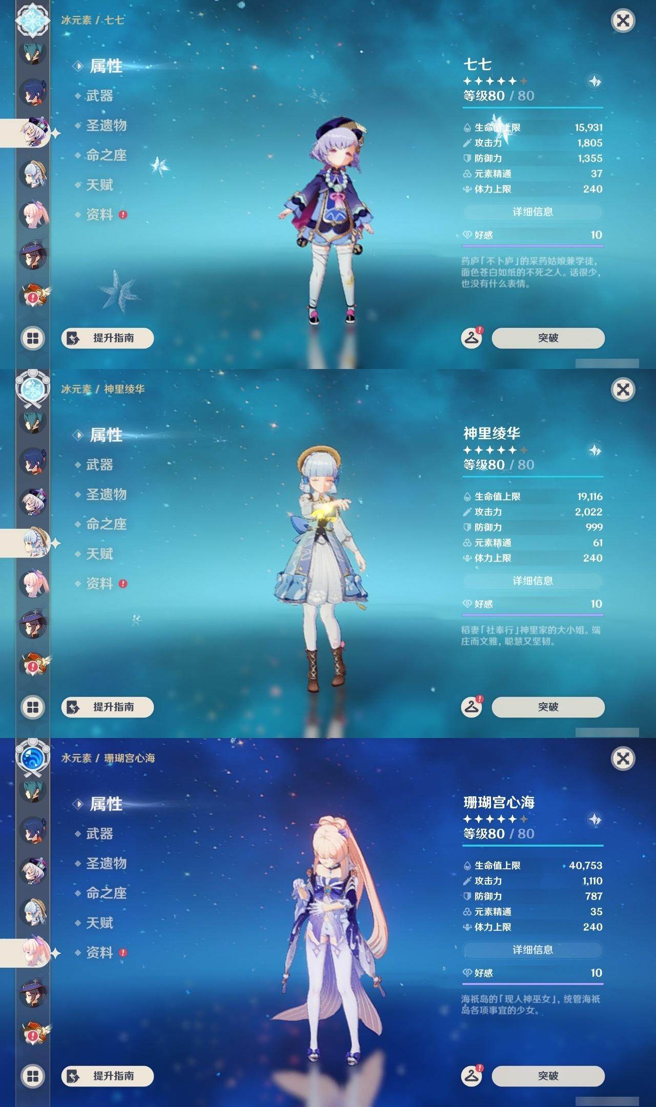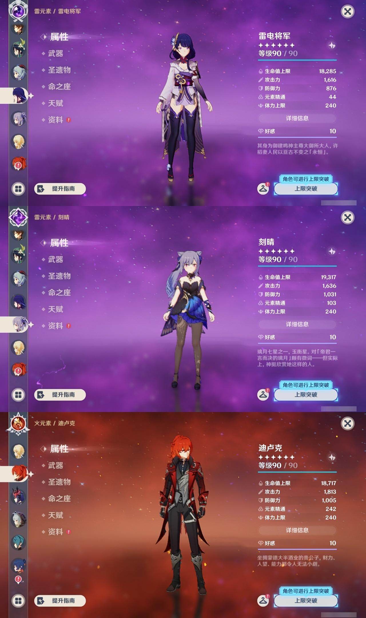 0命那维莱特,2命纳西妲,0命提纳里,0命夜兰,0命申鹤,0命荒泷一斗,2命雷电将军,0命枫原万叶,0命神里绫华,0命钟离,1命胡桃,0命甘雨,0命温迪,0命可莉,0命珊瑚宫心海,2命刻晴,4命七七,2命莫娜,1命迪卢克,精1薙草之稻光,精1飞雷之弦振,精1四风原典,精1天空之脊,精1天空之翼,精1天空之刃