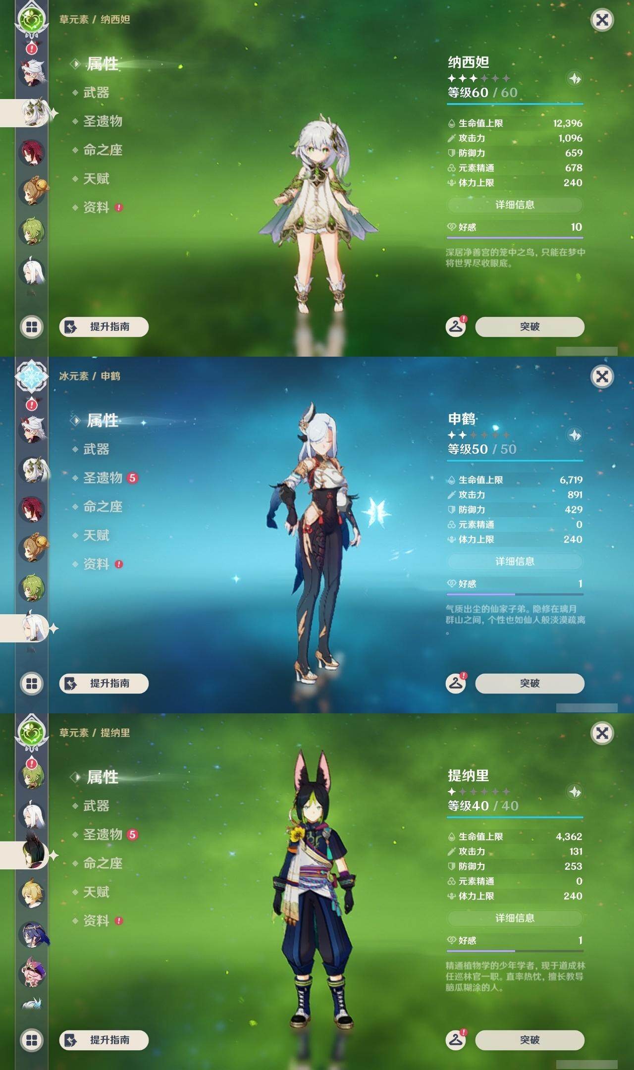 60级/39黄/女主/19个五星角色/6个五星武器0命那维莱特,2命纳西妲,