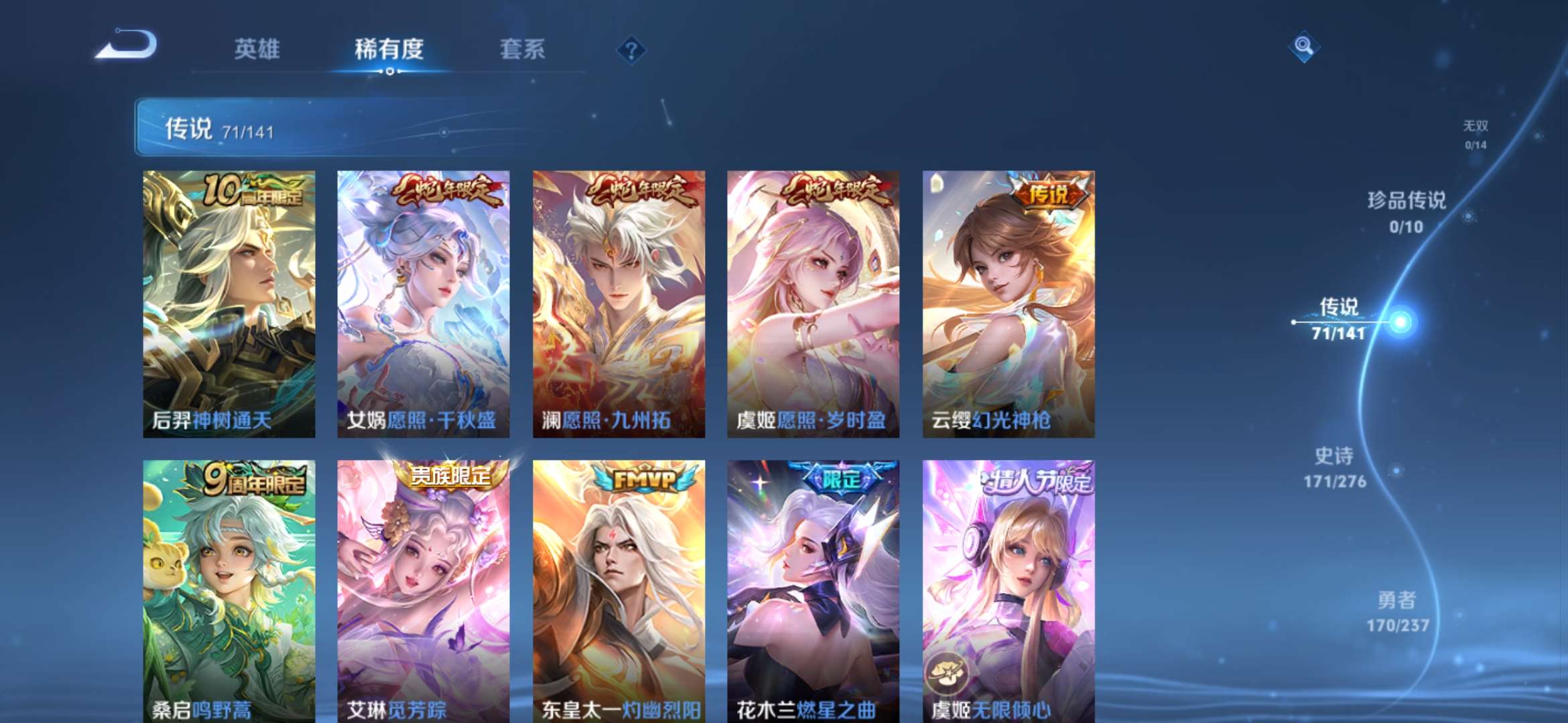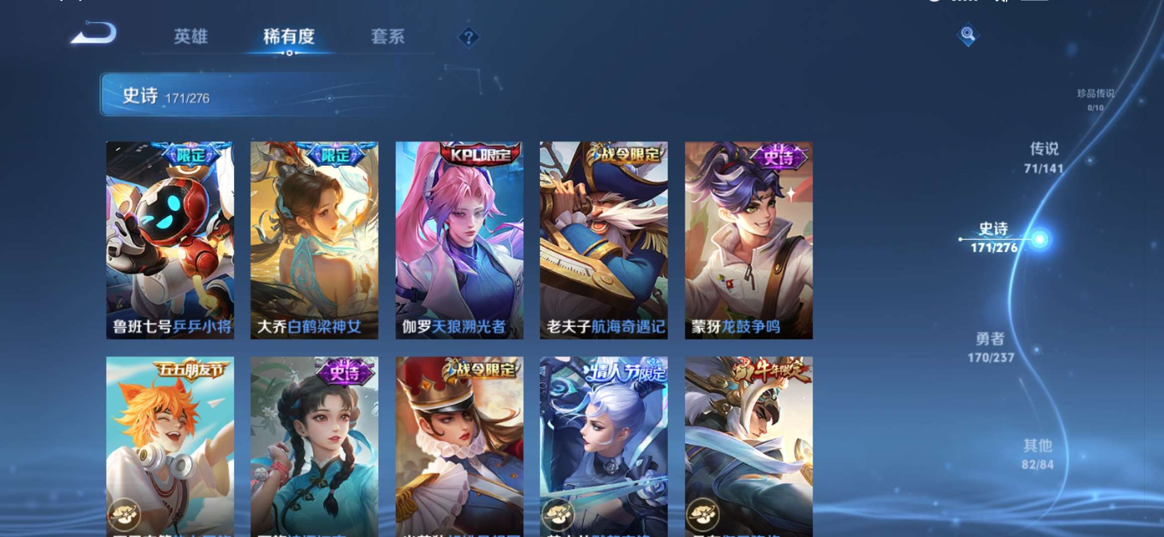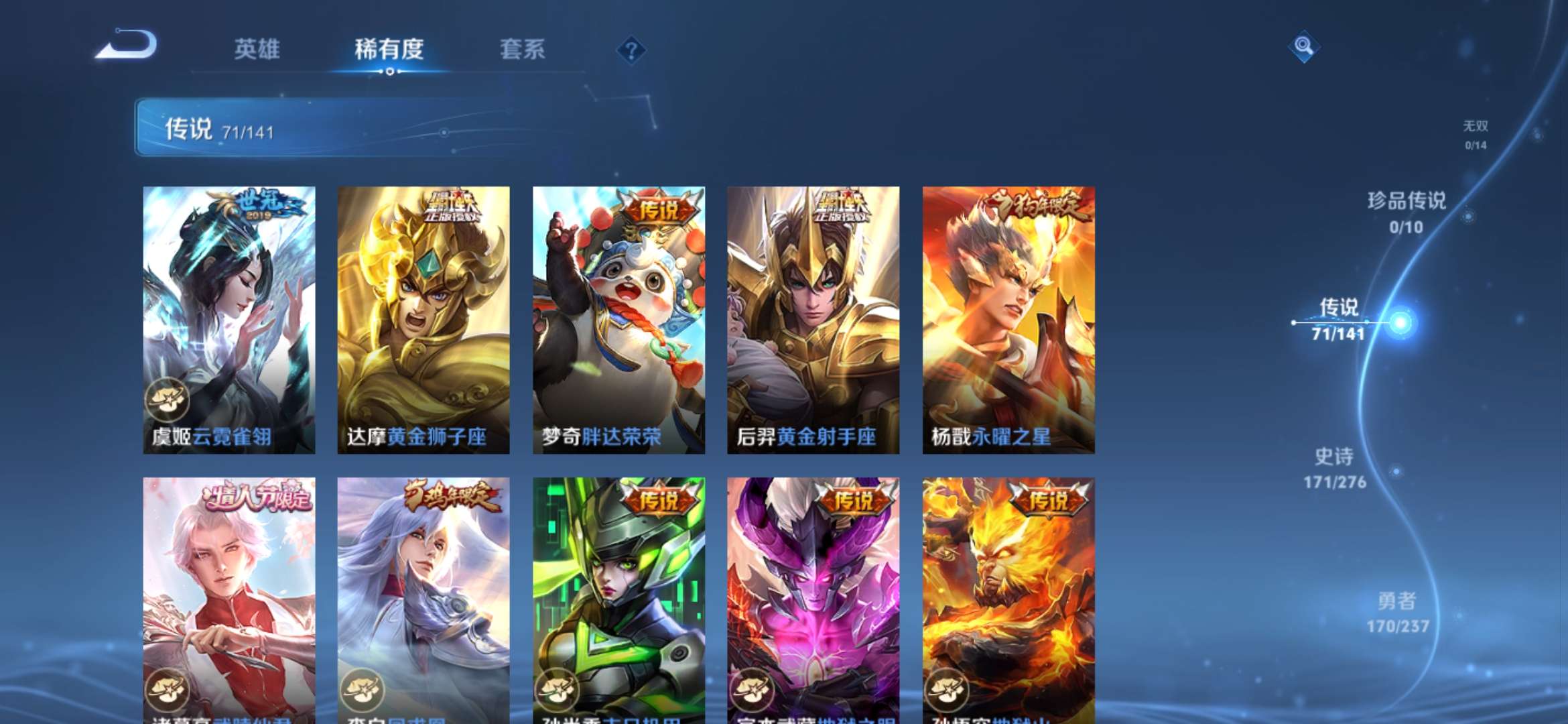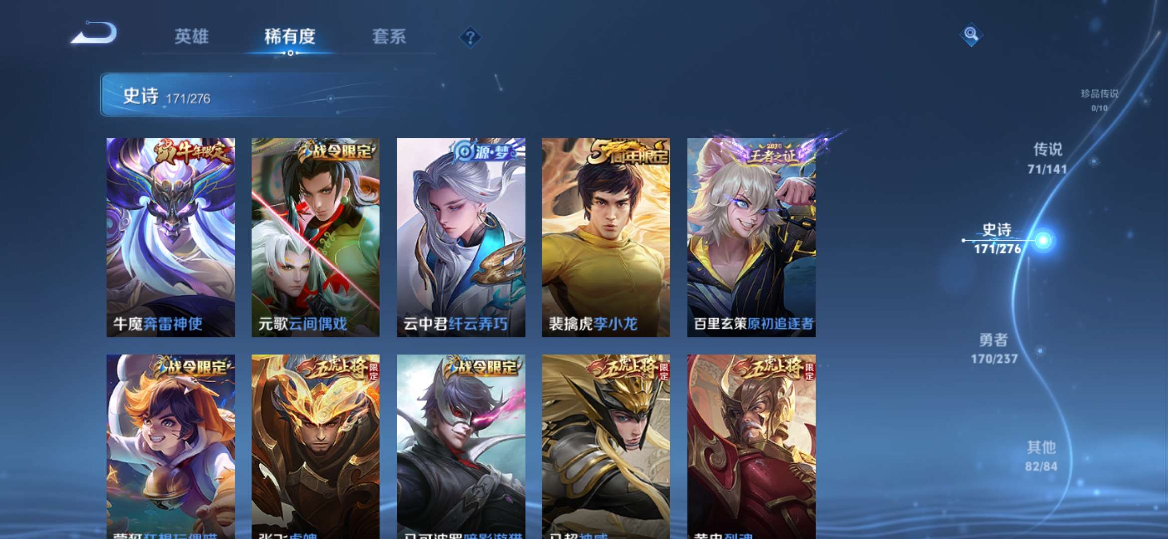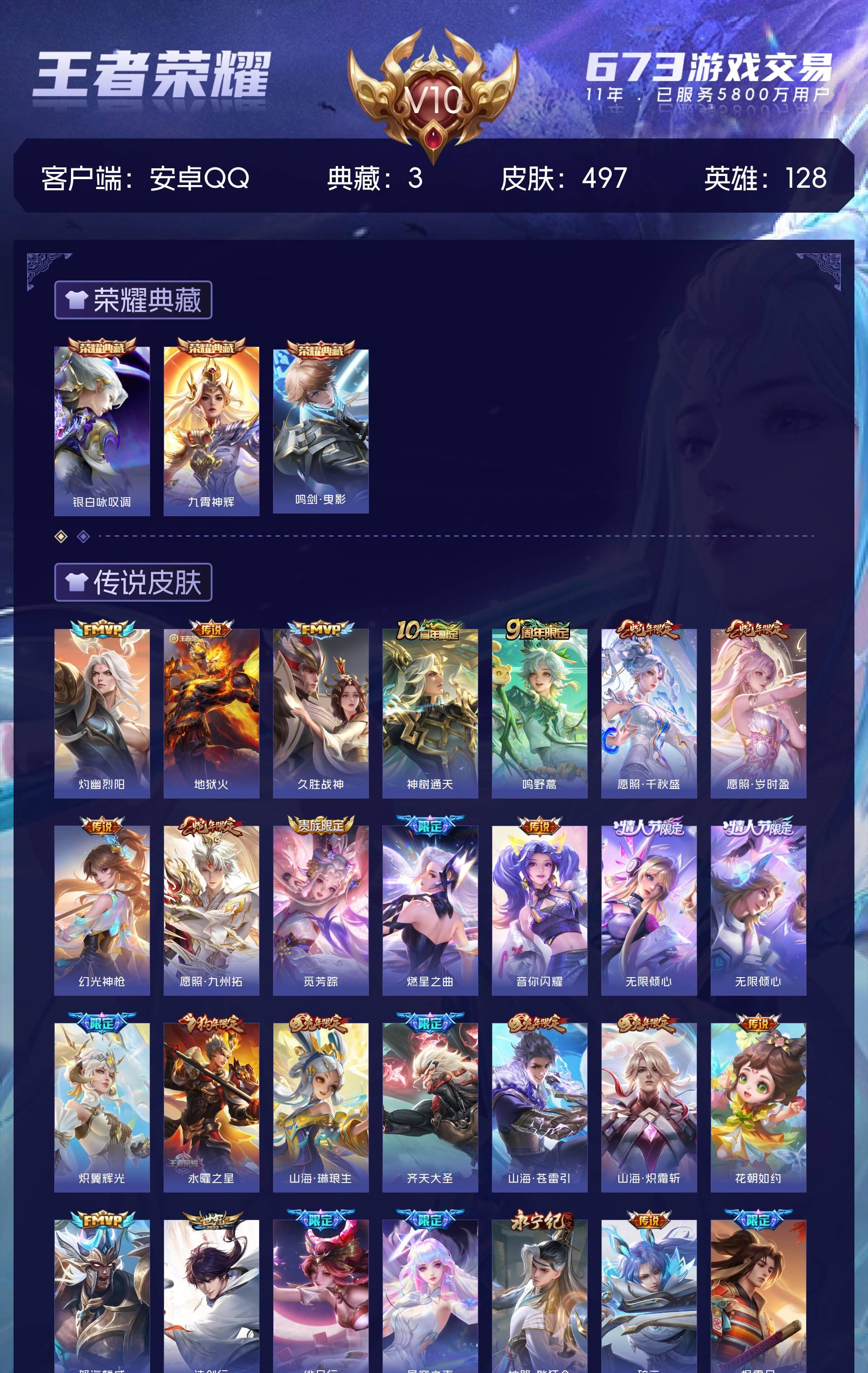 V10 皮肤497 英雄128 荣耀王者 荣耀典藏3 传说71 其他皮肤428