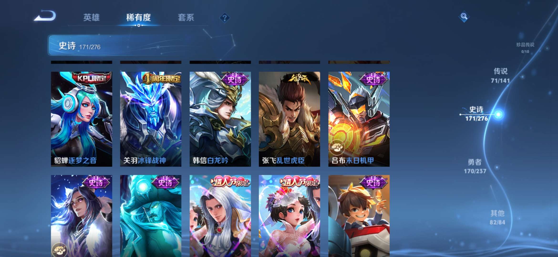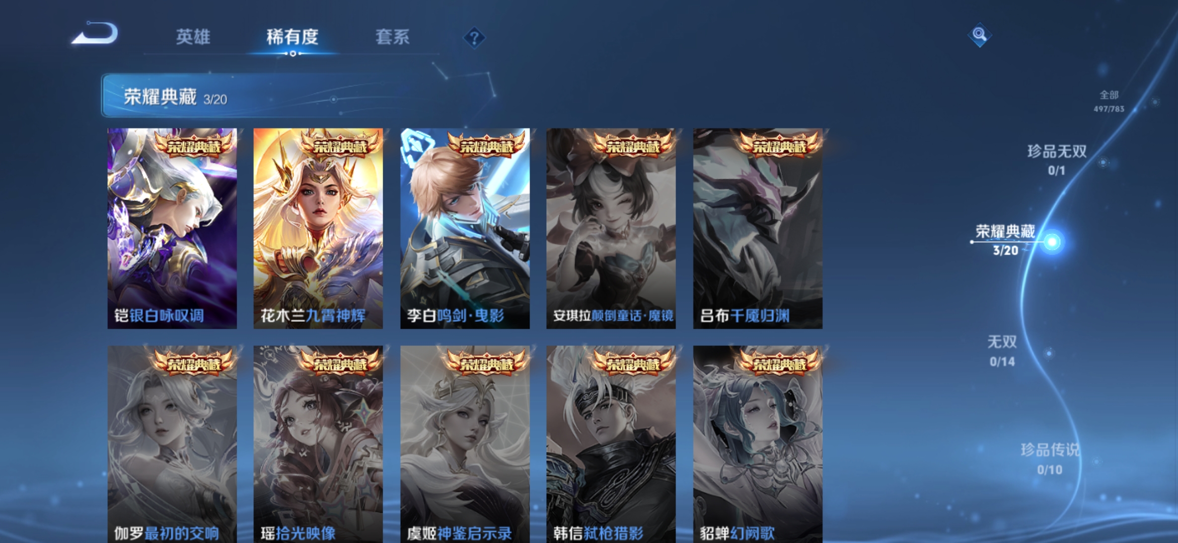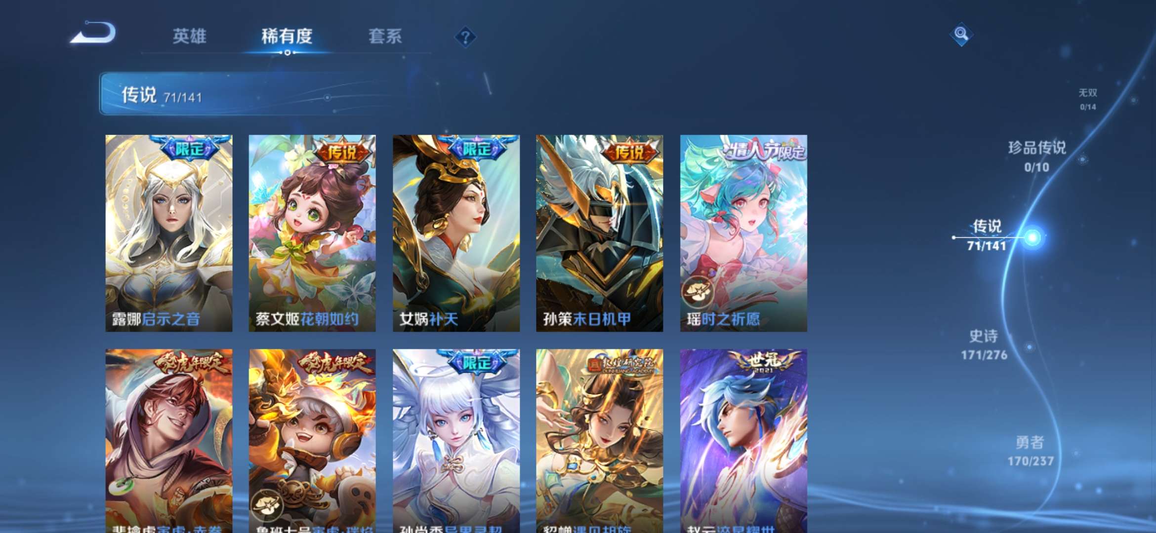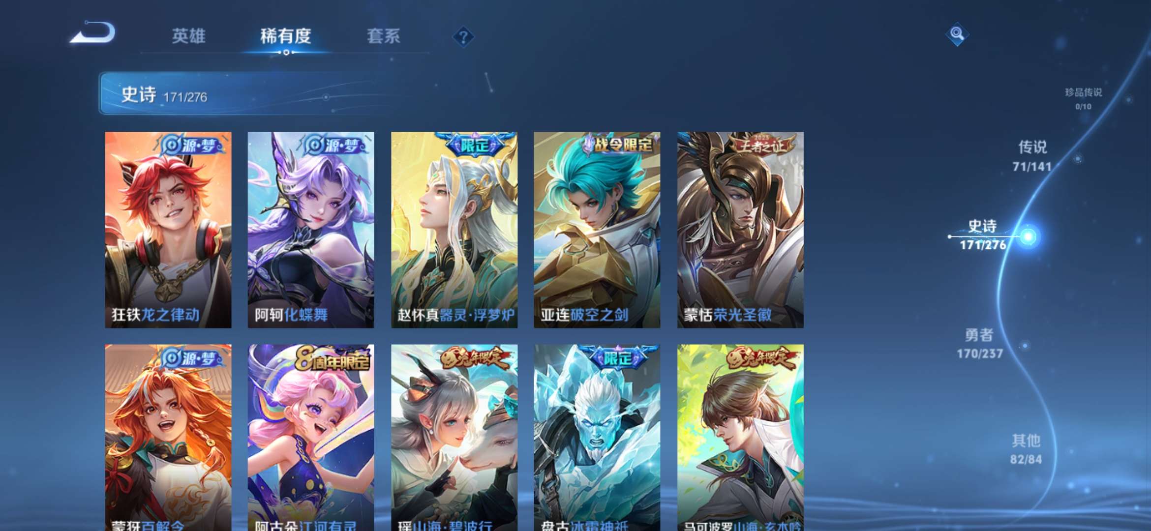 V10 皮肤497 英雄128 荣耀王者 荣耀典藏3 传说71 其他皮肤428