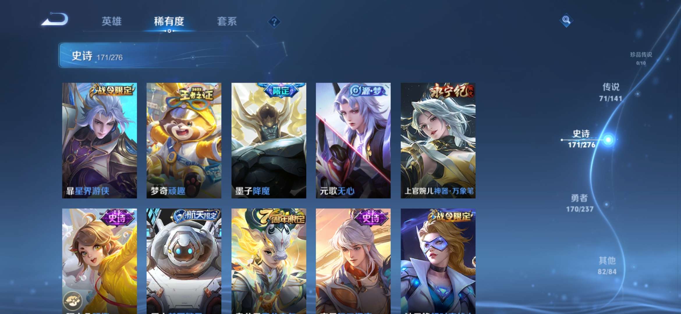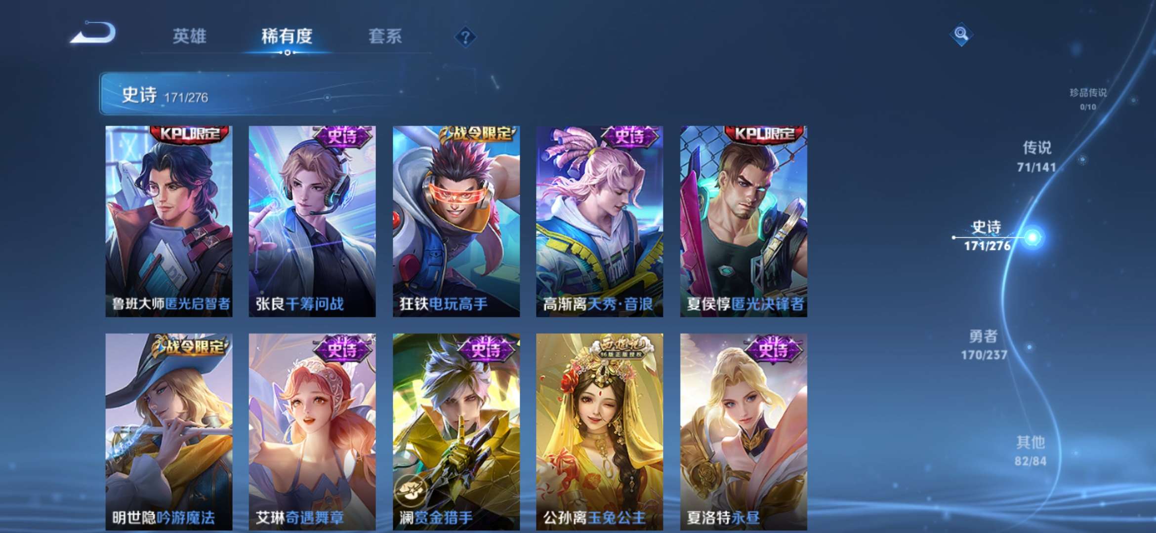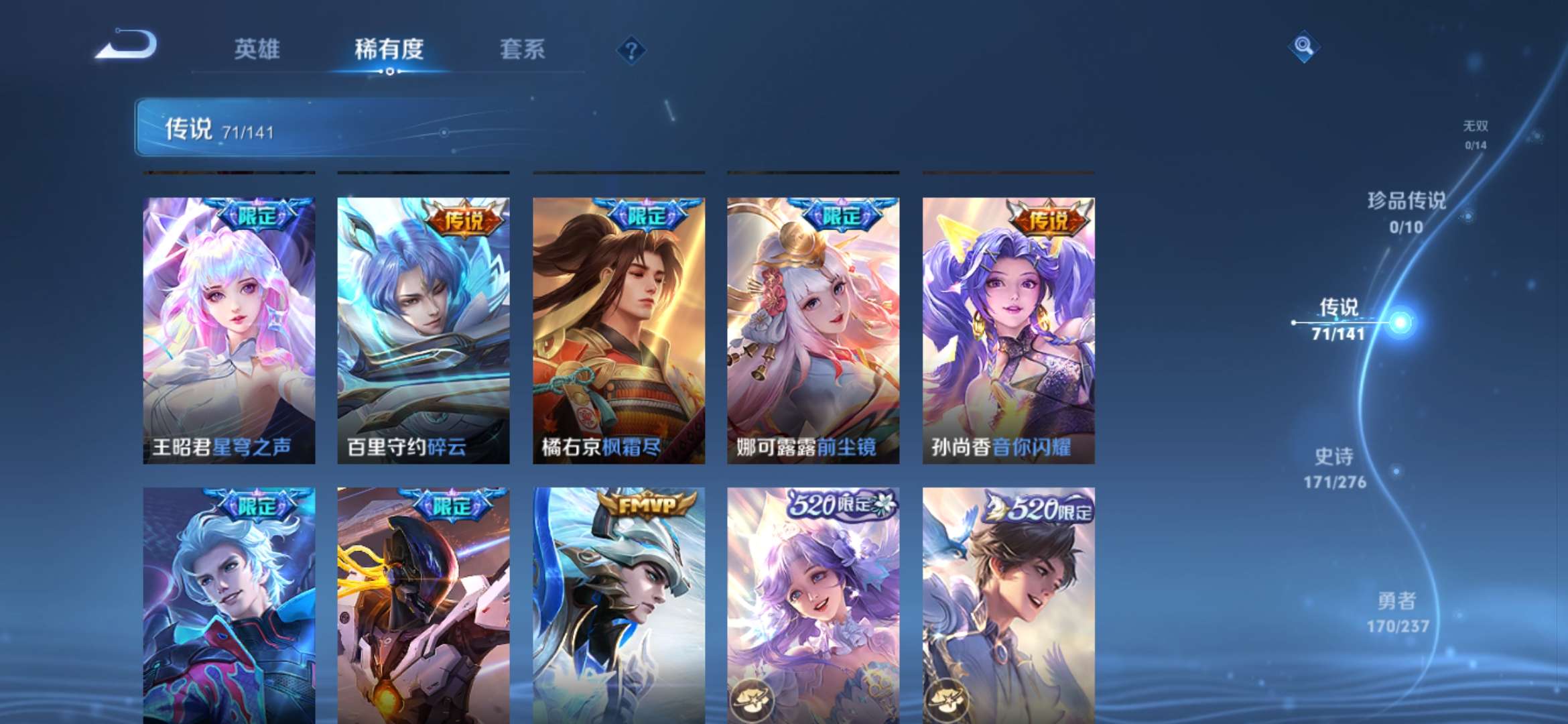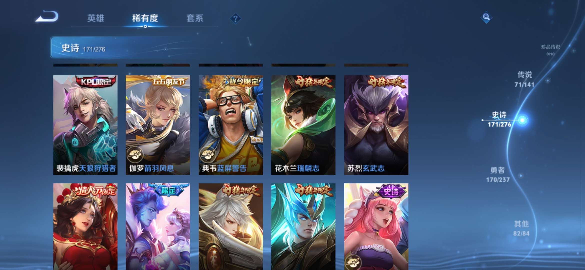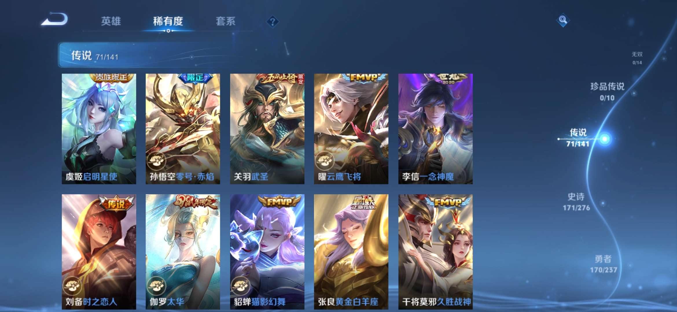 V10 皮肤497 英雄128 荣耀王者 荣耀典藏3 传说71 其他皮肤428