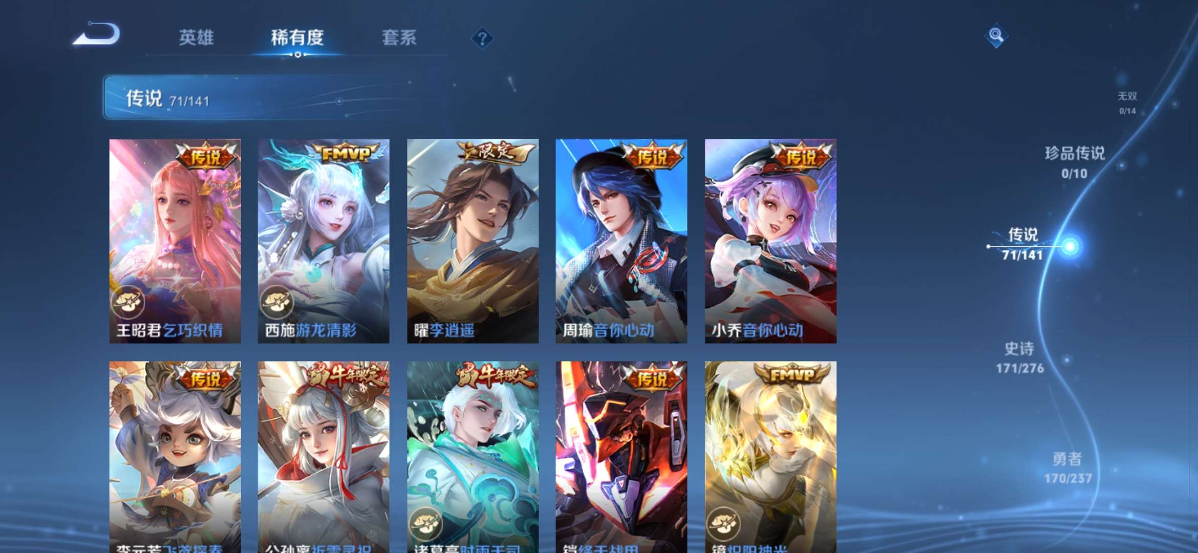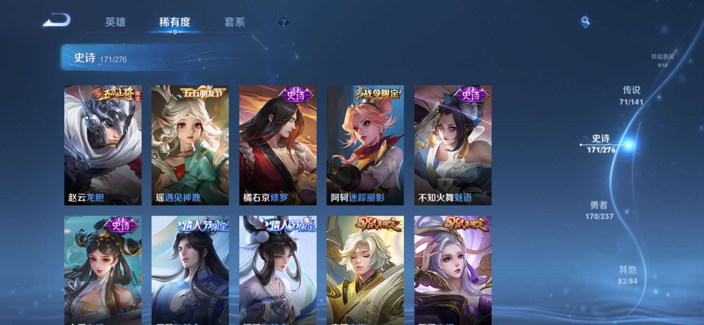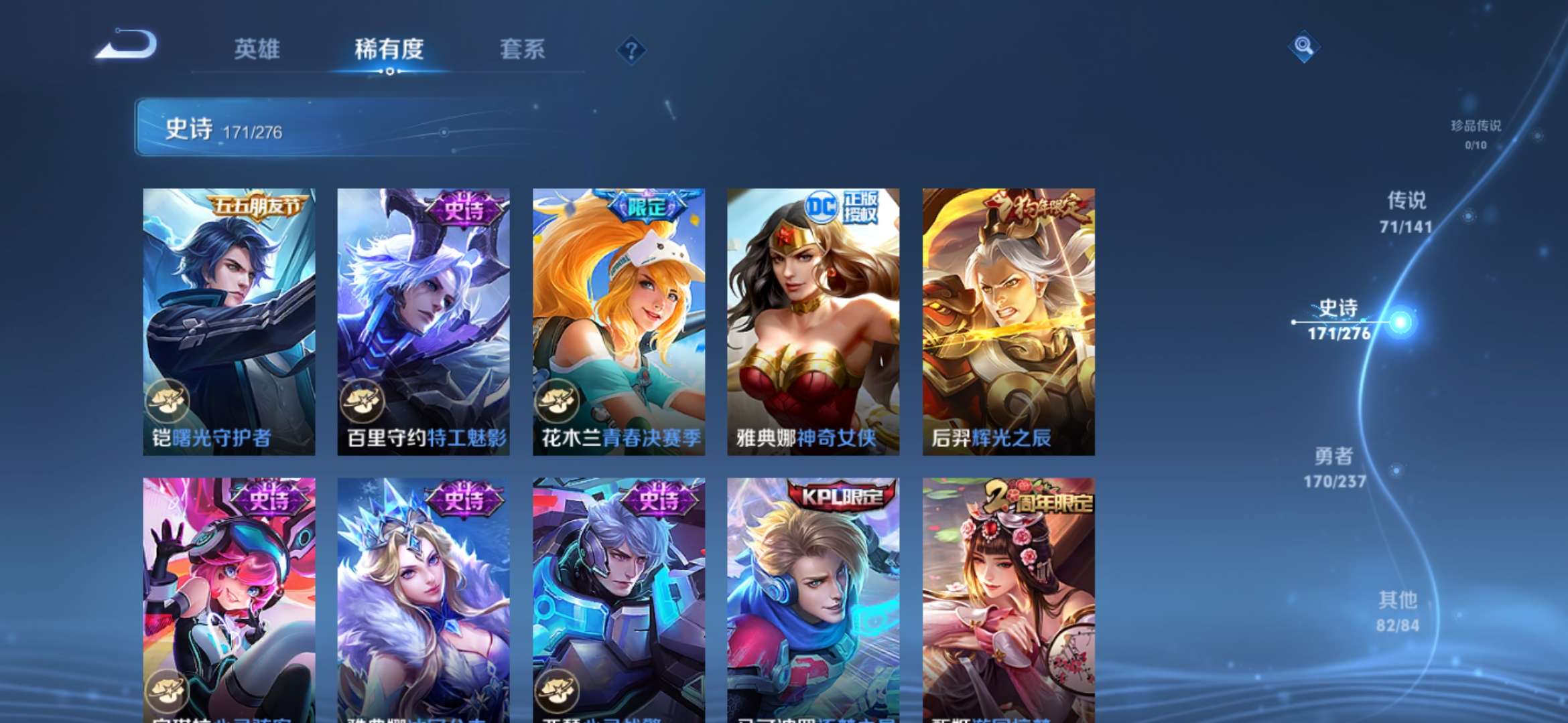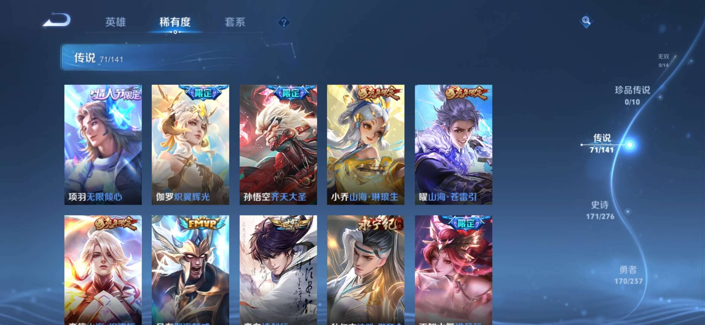 V10 皮肤497 英雄128 荣耀王者 荣耀典藏3 传说71 其他皮肤428
