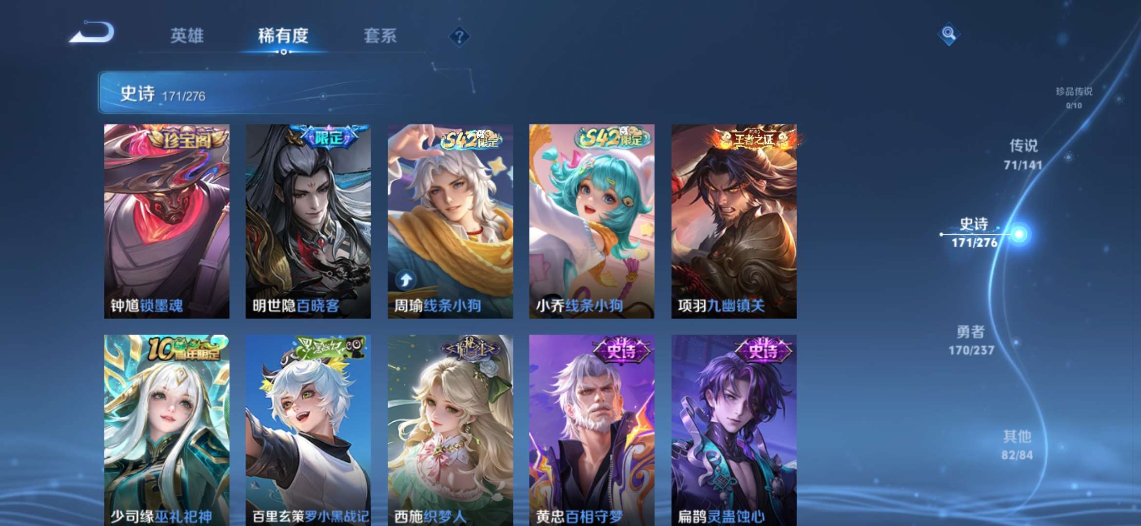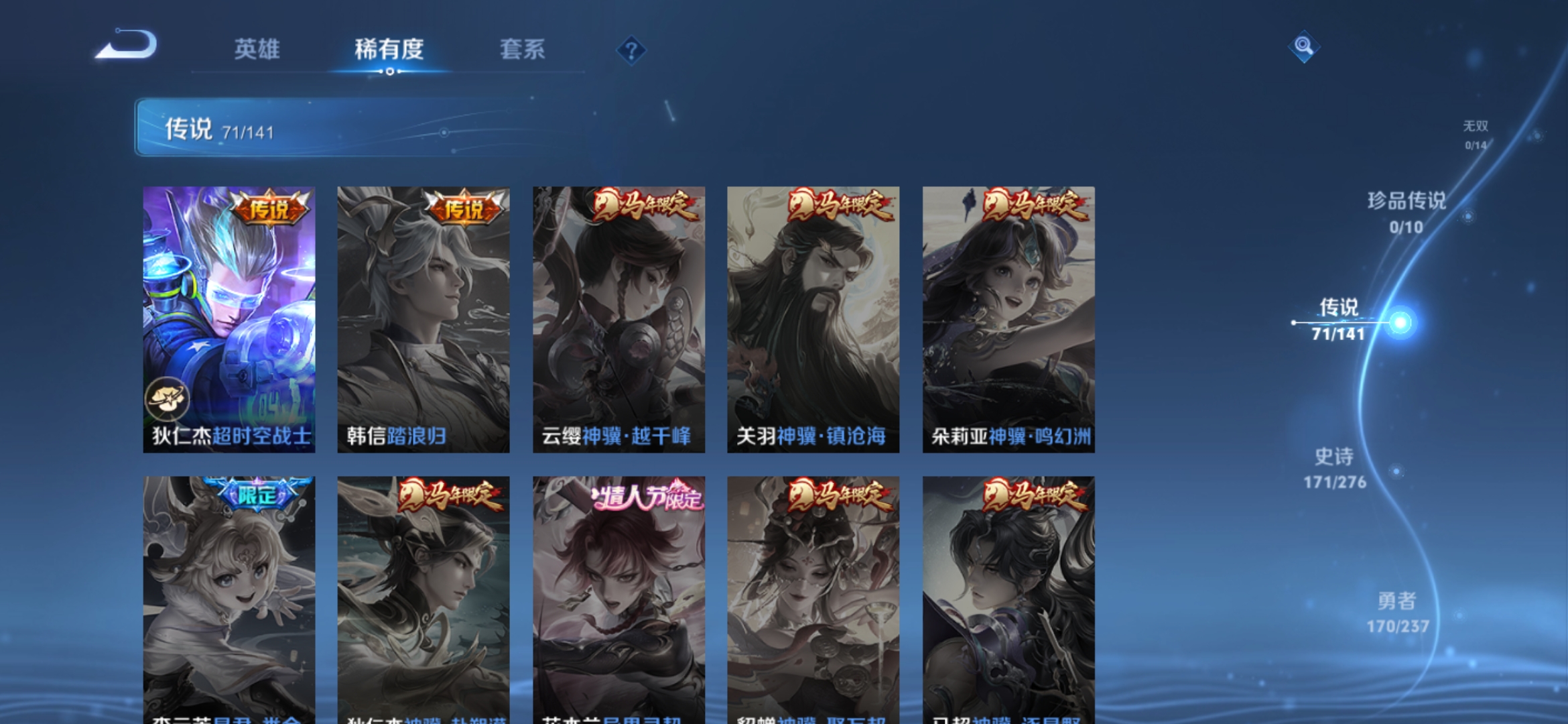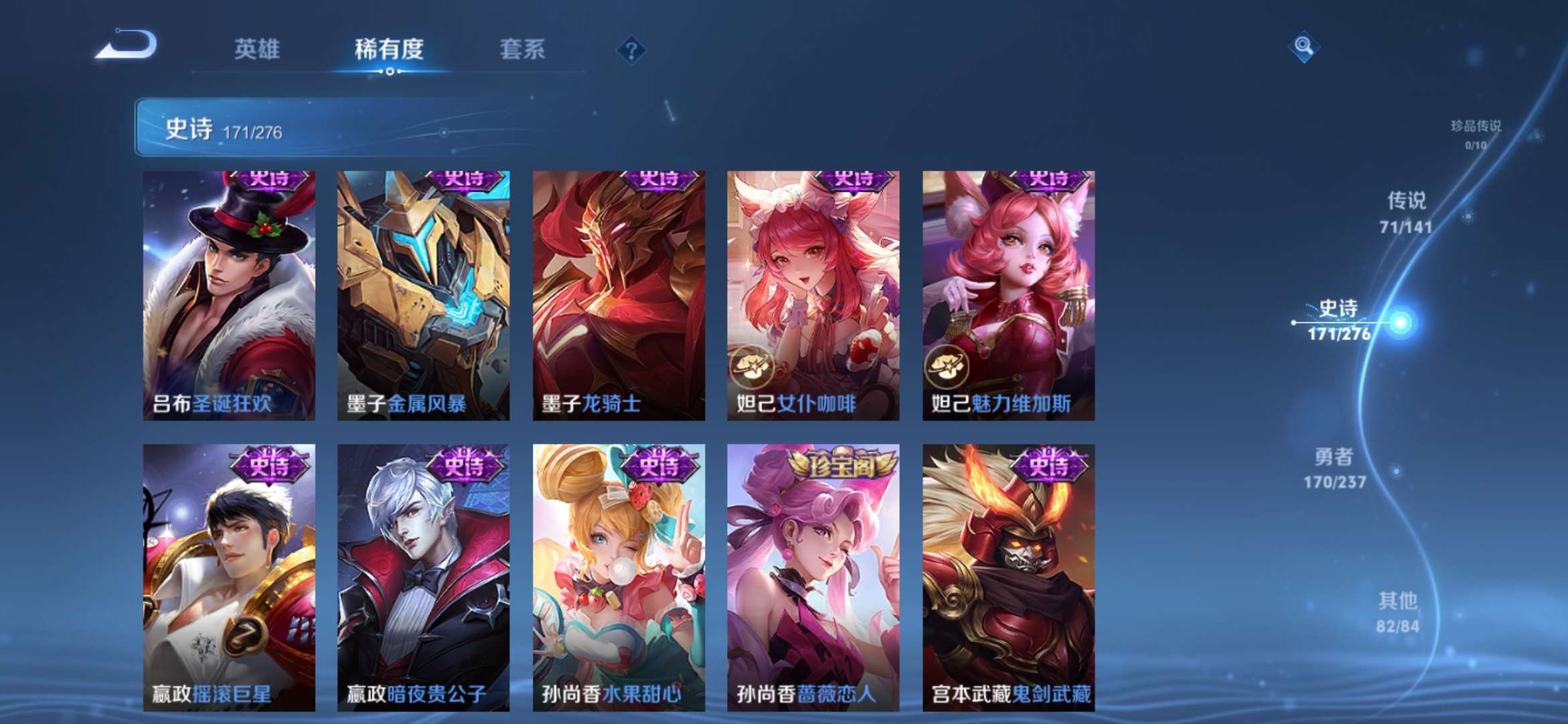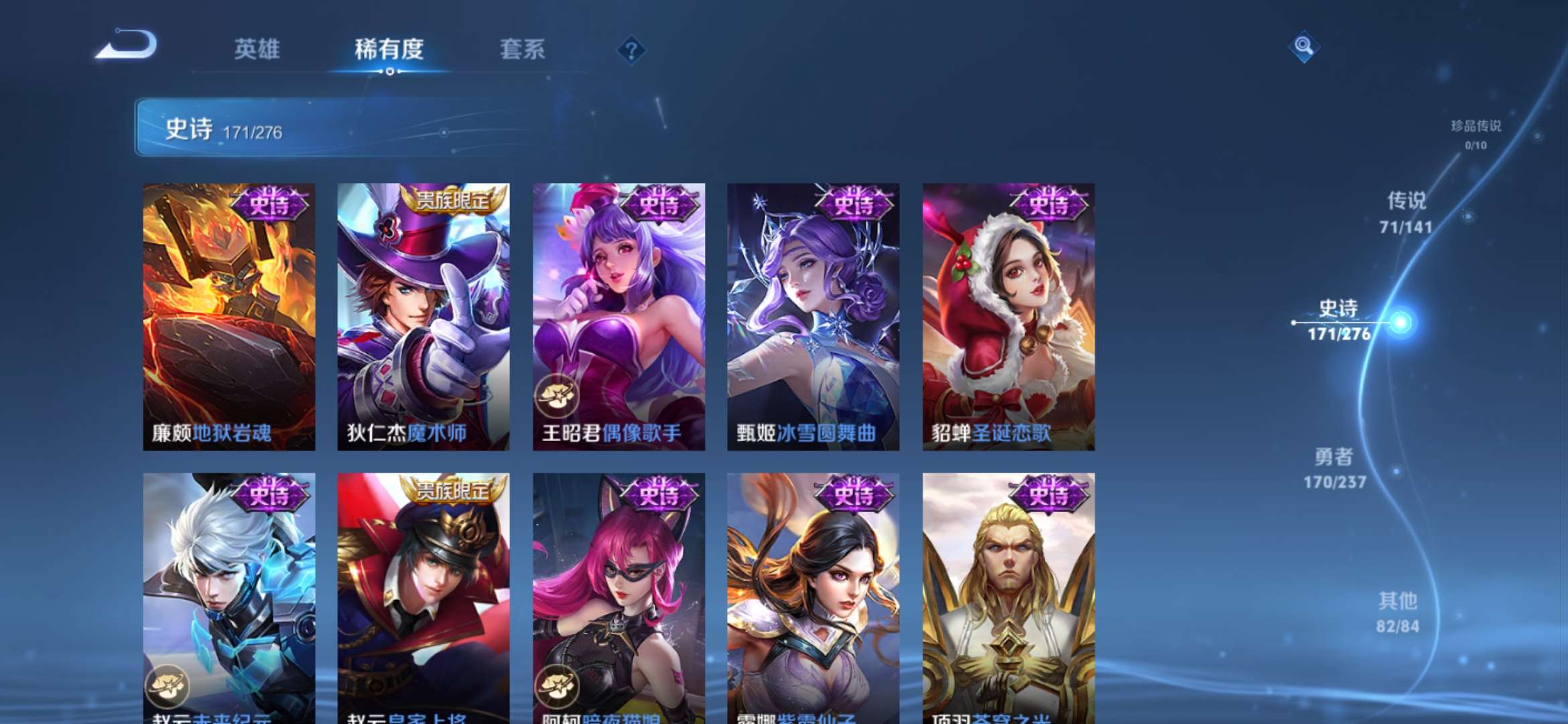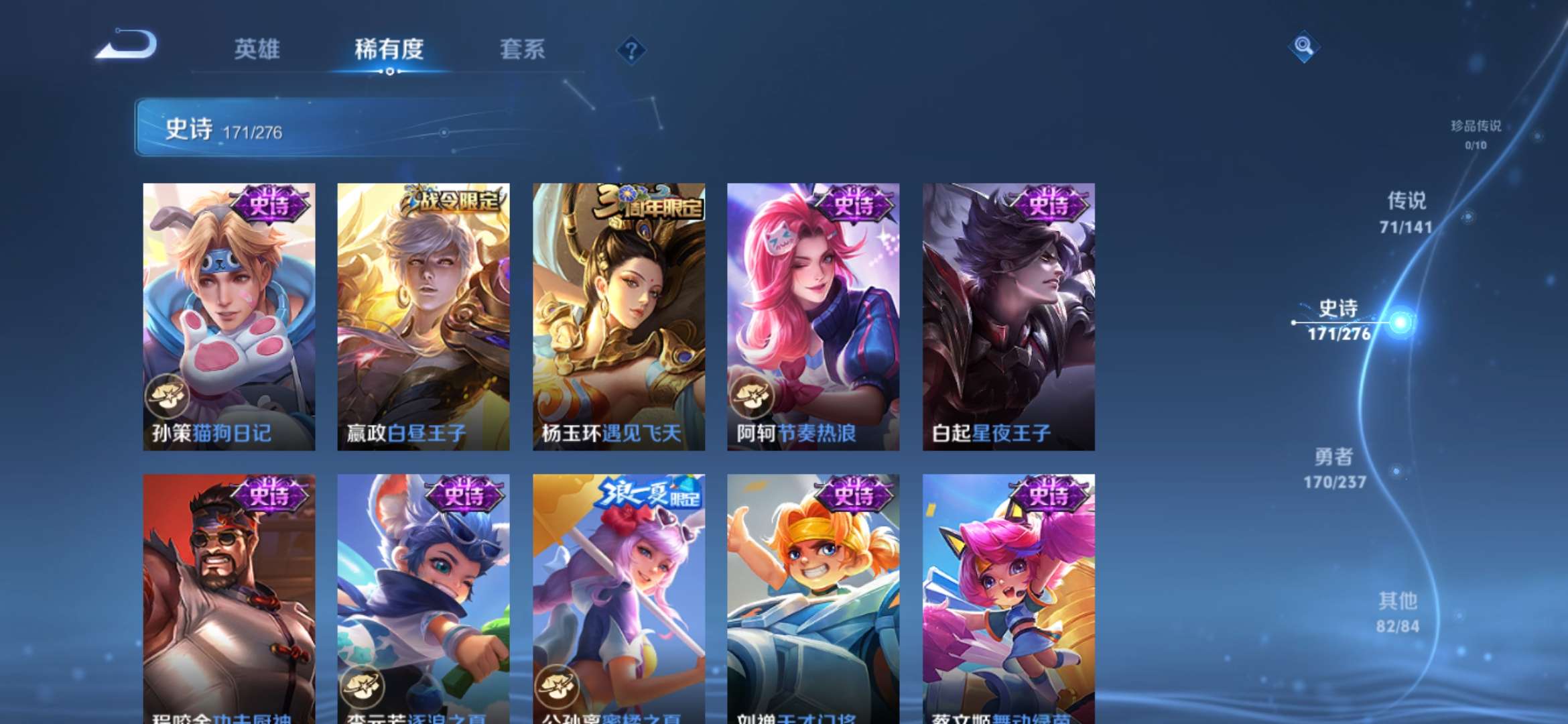 V10 皮肤497 英雄128 荣耀王者 荣耀典藏3 传说71 其他皮肤428