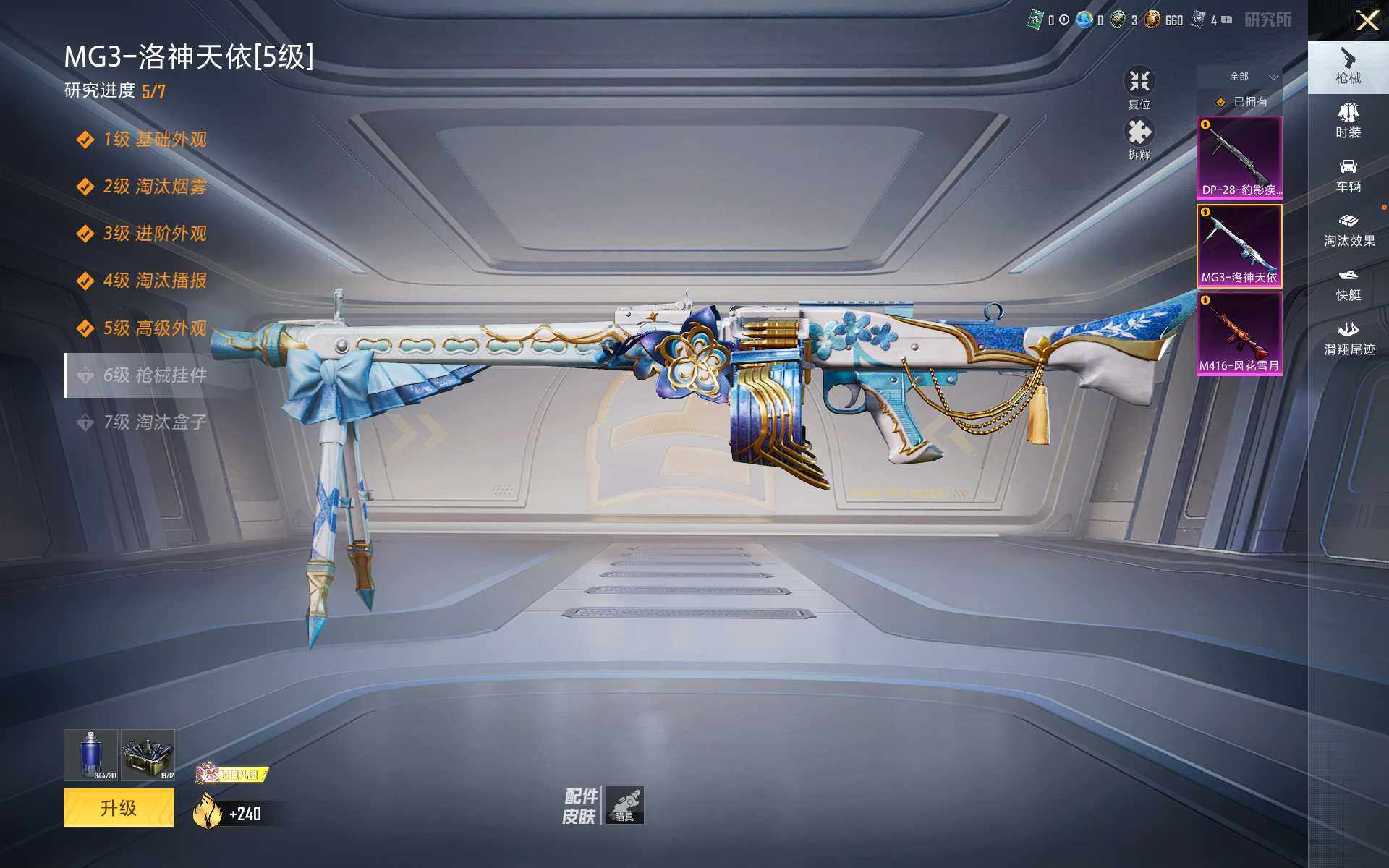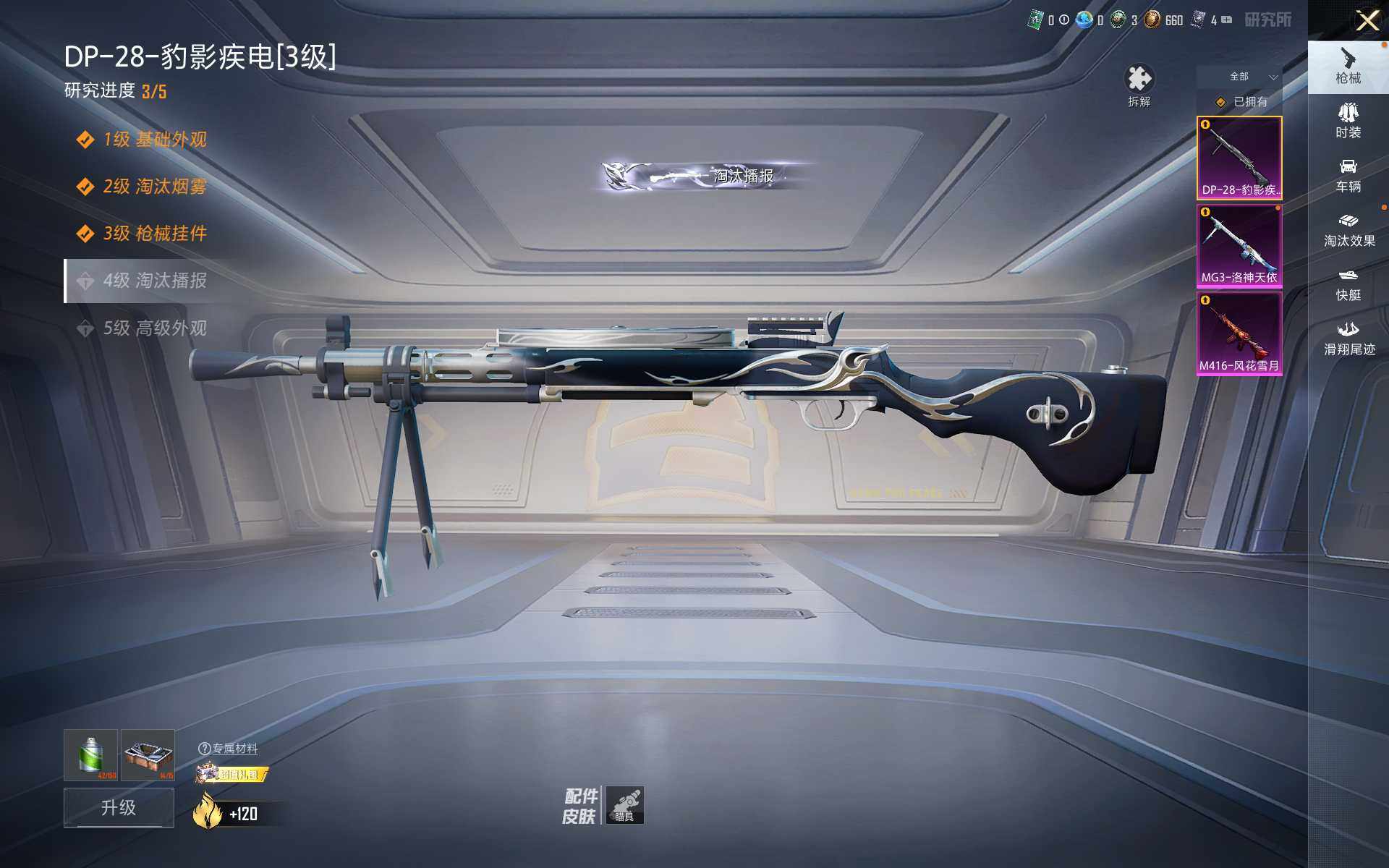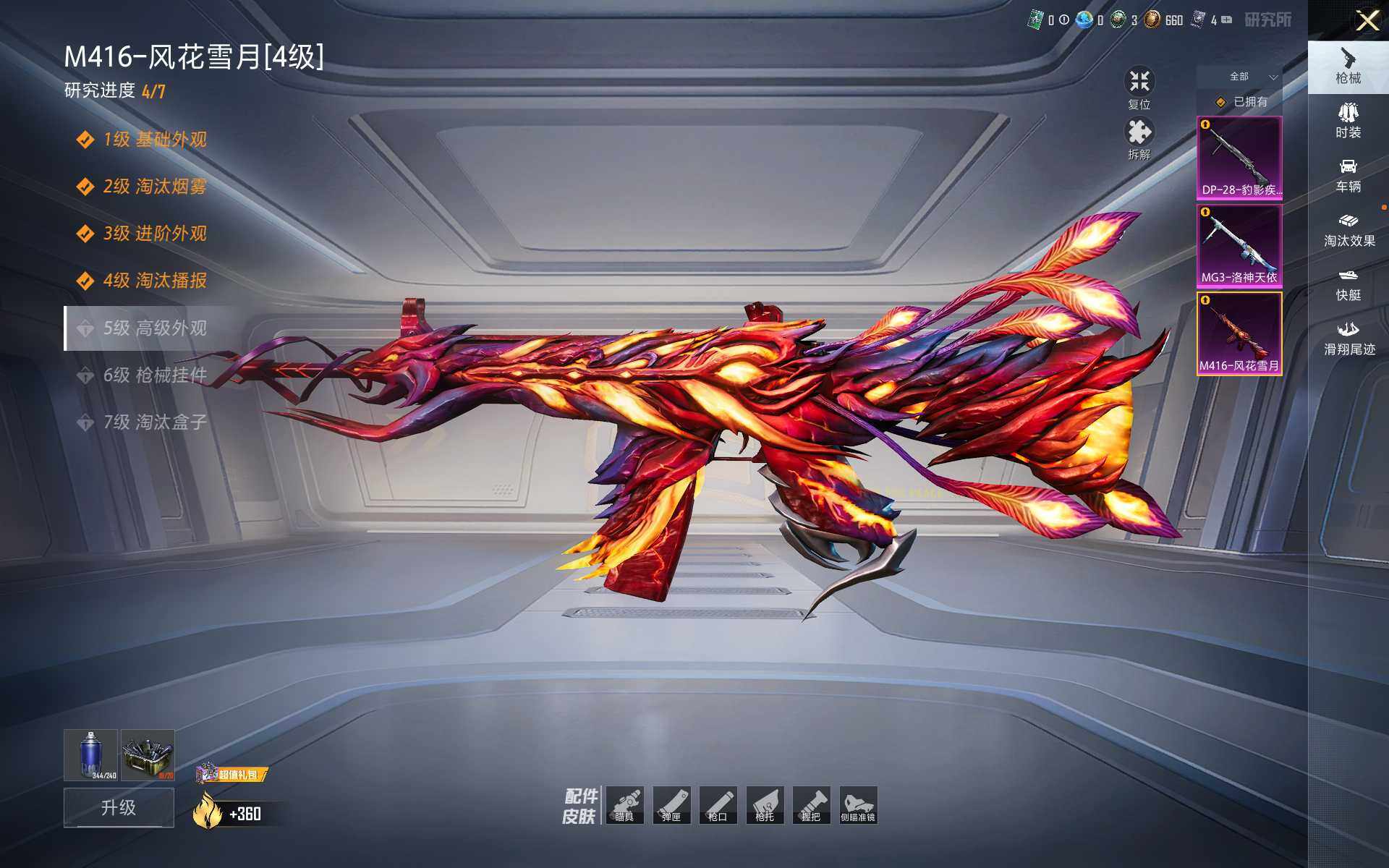【粉色枪皮等级】:M416-风花雪月(四级),DP-28-豹影疾电(三级