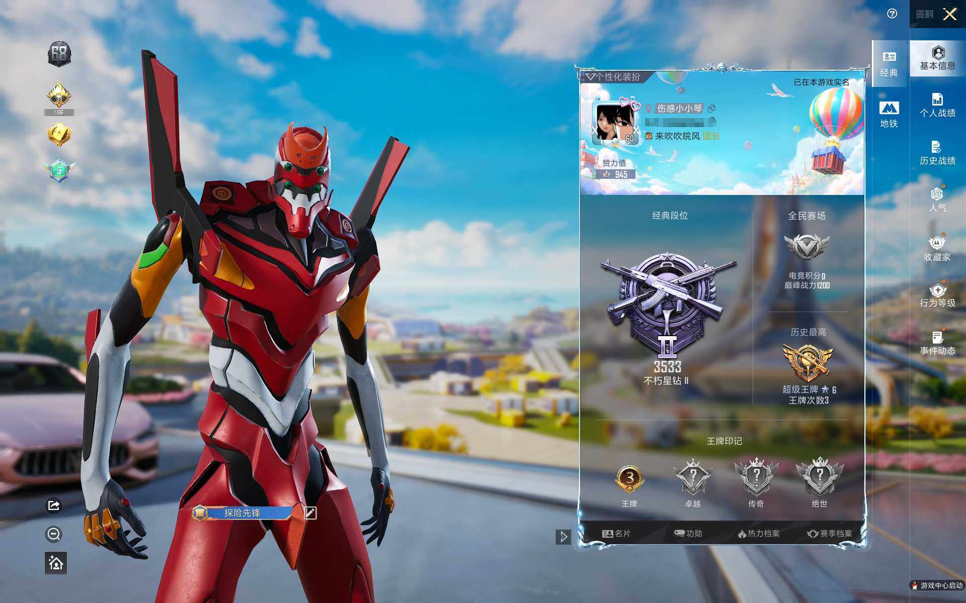 苹果 手Q-8粉装-3特效枪-1载具-2粉色飞行器-32077热力值-3王牌印