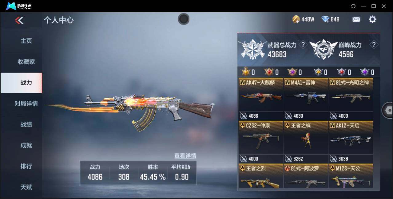 【英雄武器】:AK47-火麒麟,AK47-樱斗士-一觉,AK47-血武士,AK47-木兰,AK47-雅韵青花,M4A1-雷神,M4A1-黑骑士,M4A1-死神*2,M4A1-