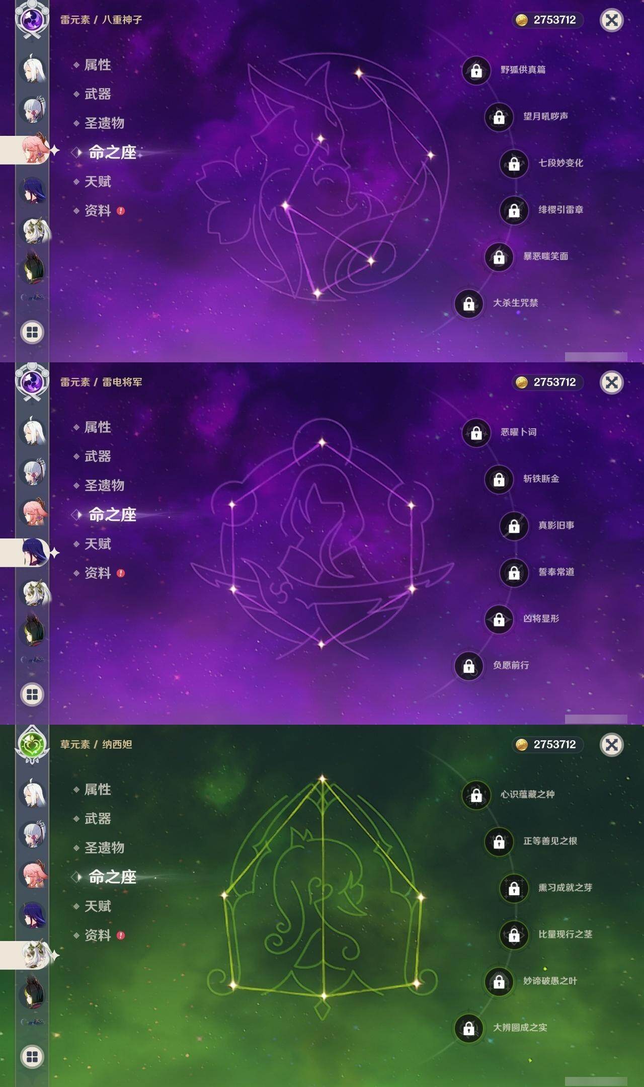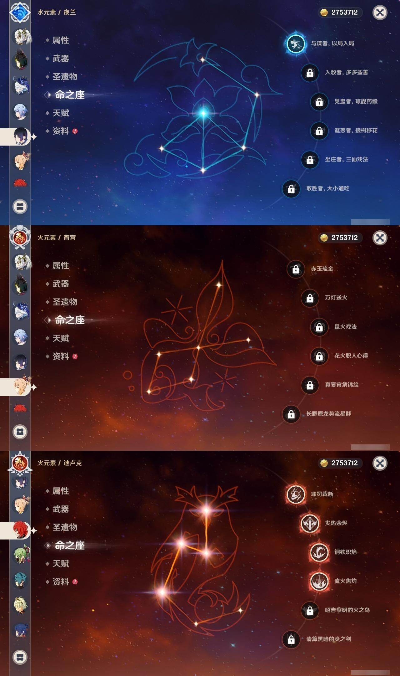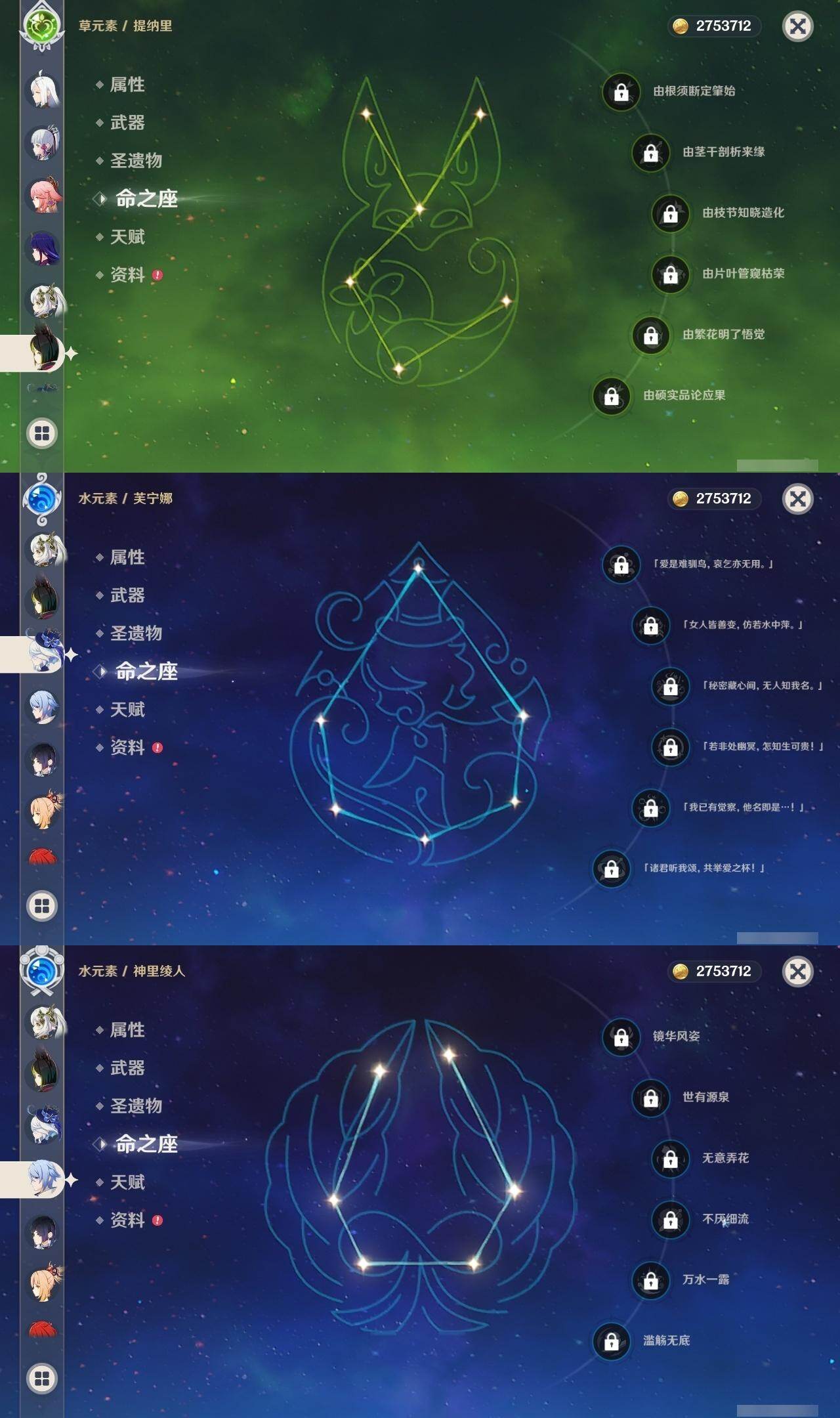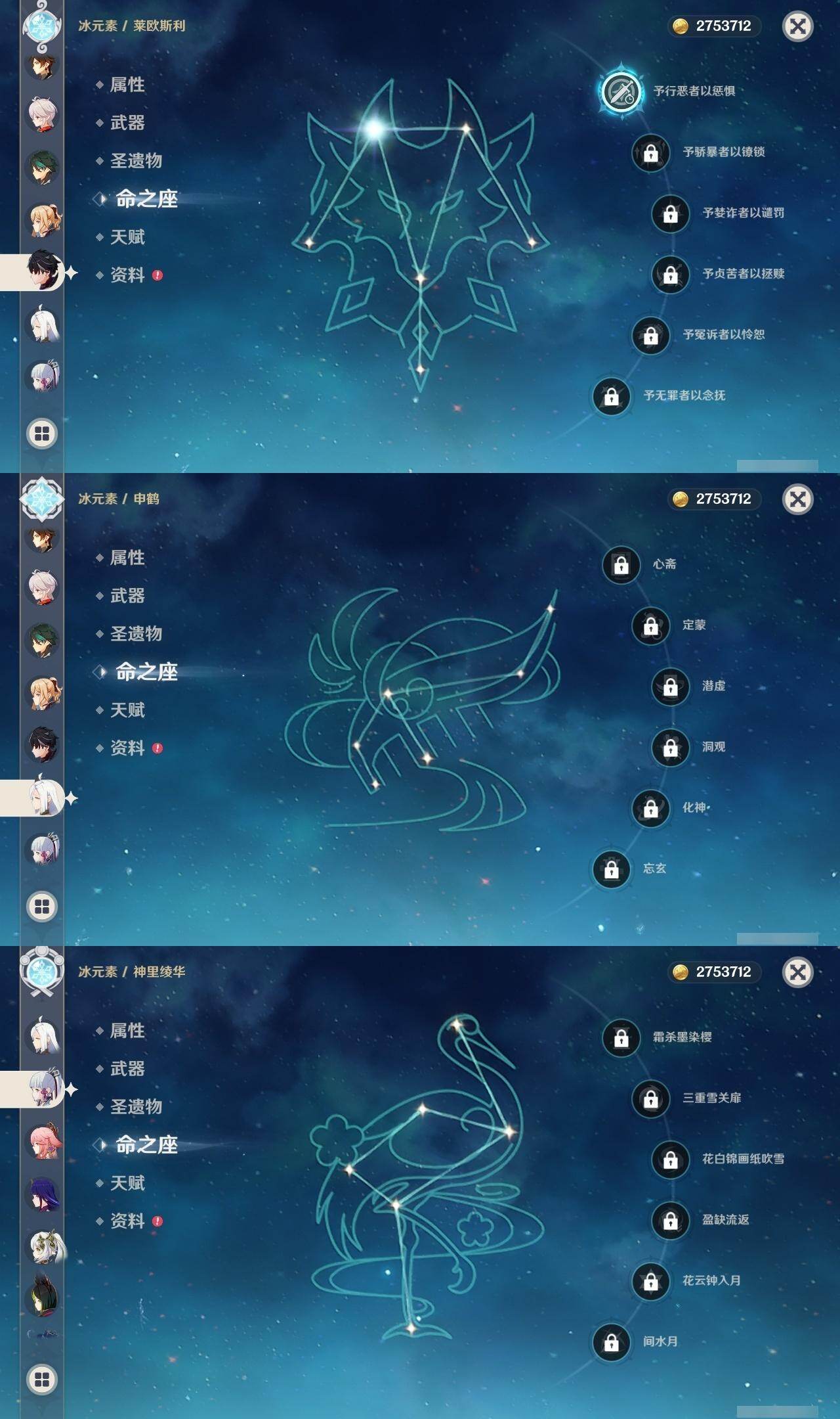 0命芙宁娜,1命莱欧斯利,0命那维莱特,0命纳西妲,0命提纳里,1命夜兰,0命神里绫人,0命八重神子,0命申鹤,0命优菈,0命雷电将军,0命枫原万叶,0命神里绫华,0命钟离,0命魈,0命宵宫,0命刻晴,3命七七,1命琴,4命迪卢克,0命艾梅莉埃,0命玛薇卡,精1金流监督,精1四风原典,精1天空之刃,精1天空之卷,精1风鹰剑