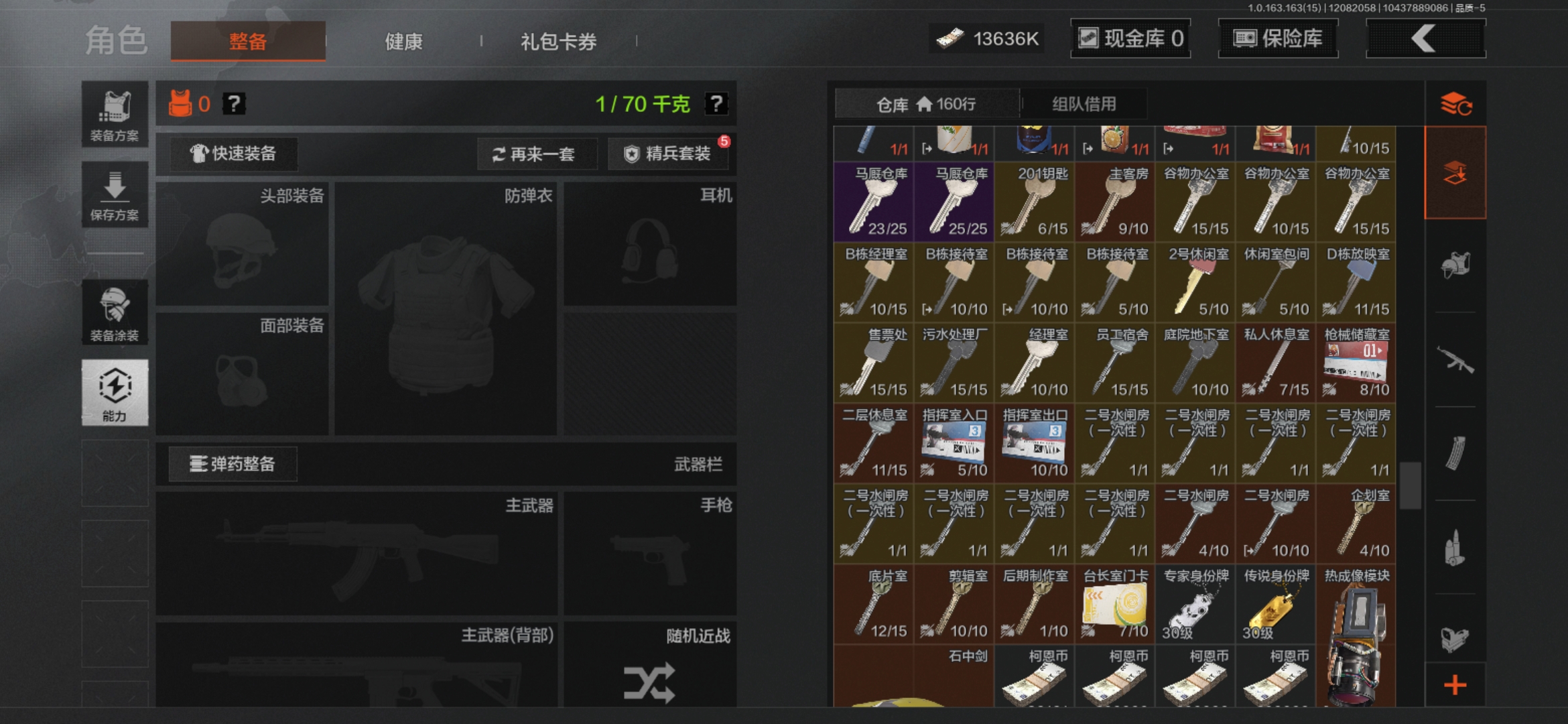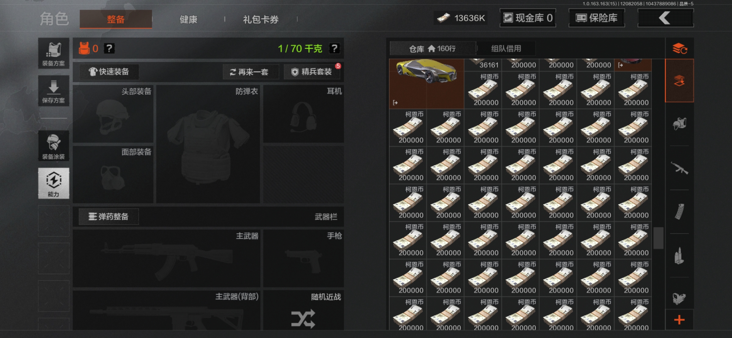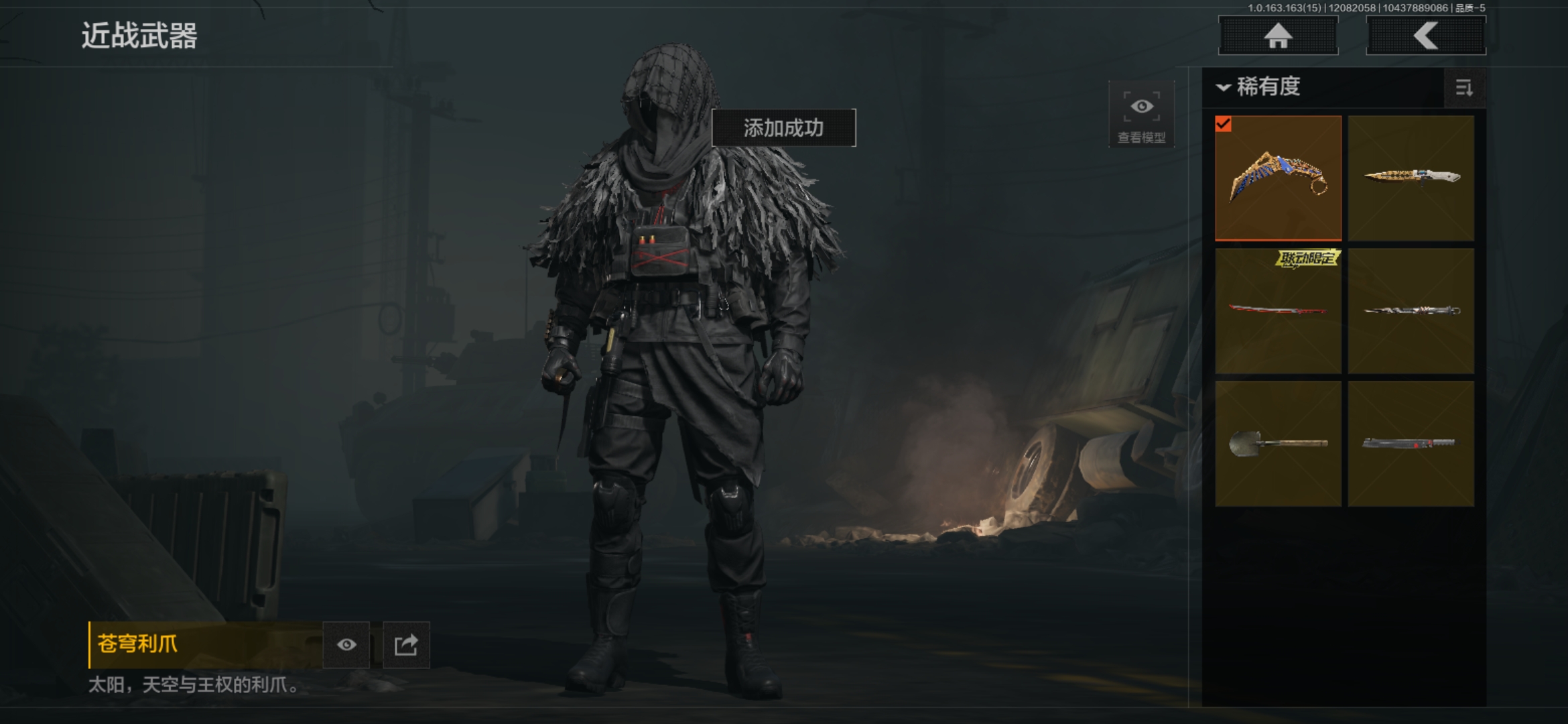 【仓库价值32.5M 1金衣服:使徒欧瑞金 6刀 工兵铲 开山刀 补牢 螺丝刀