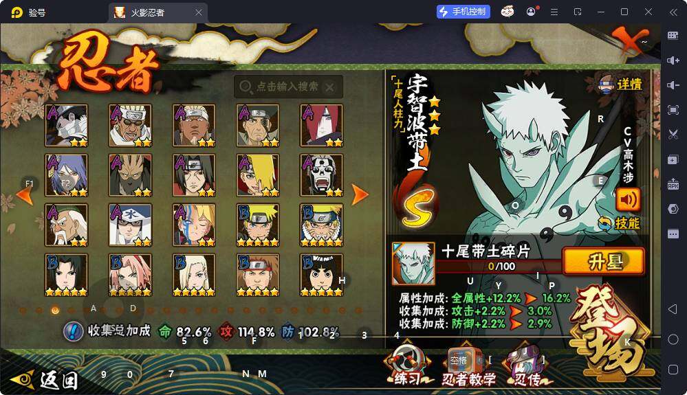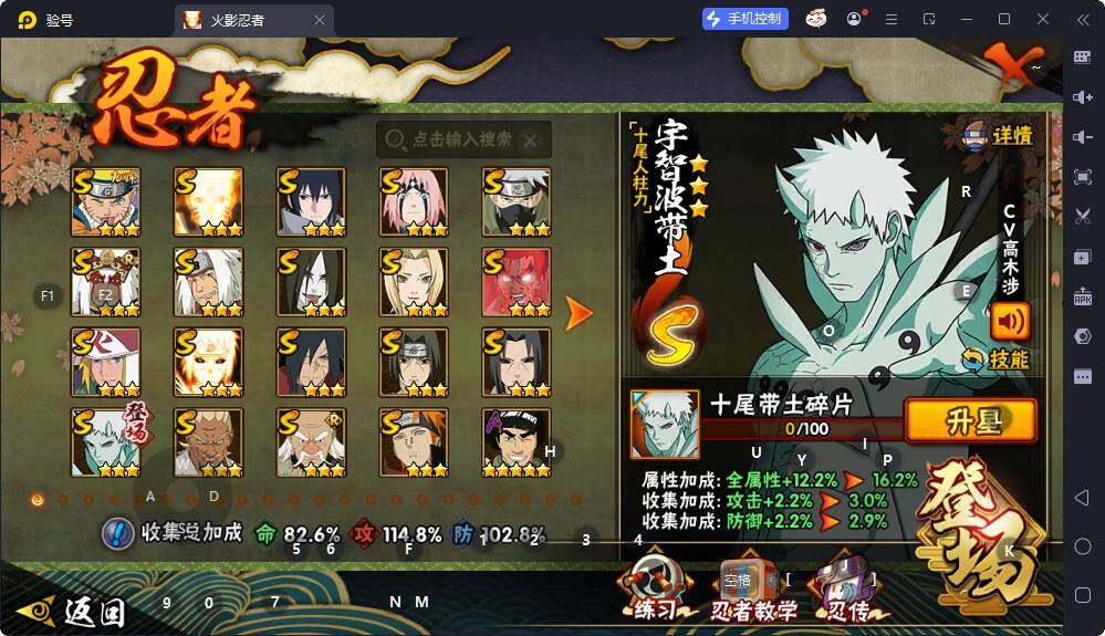 V9/战力1168W/S忍19/A忍34/2星大野木「侠隐江