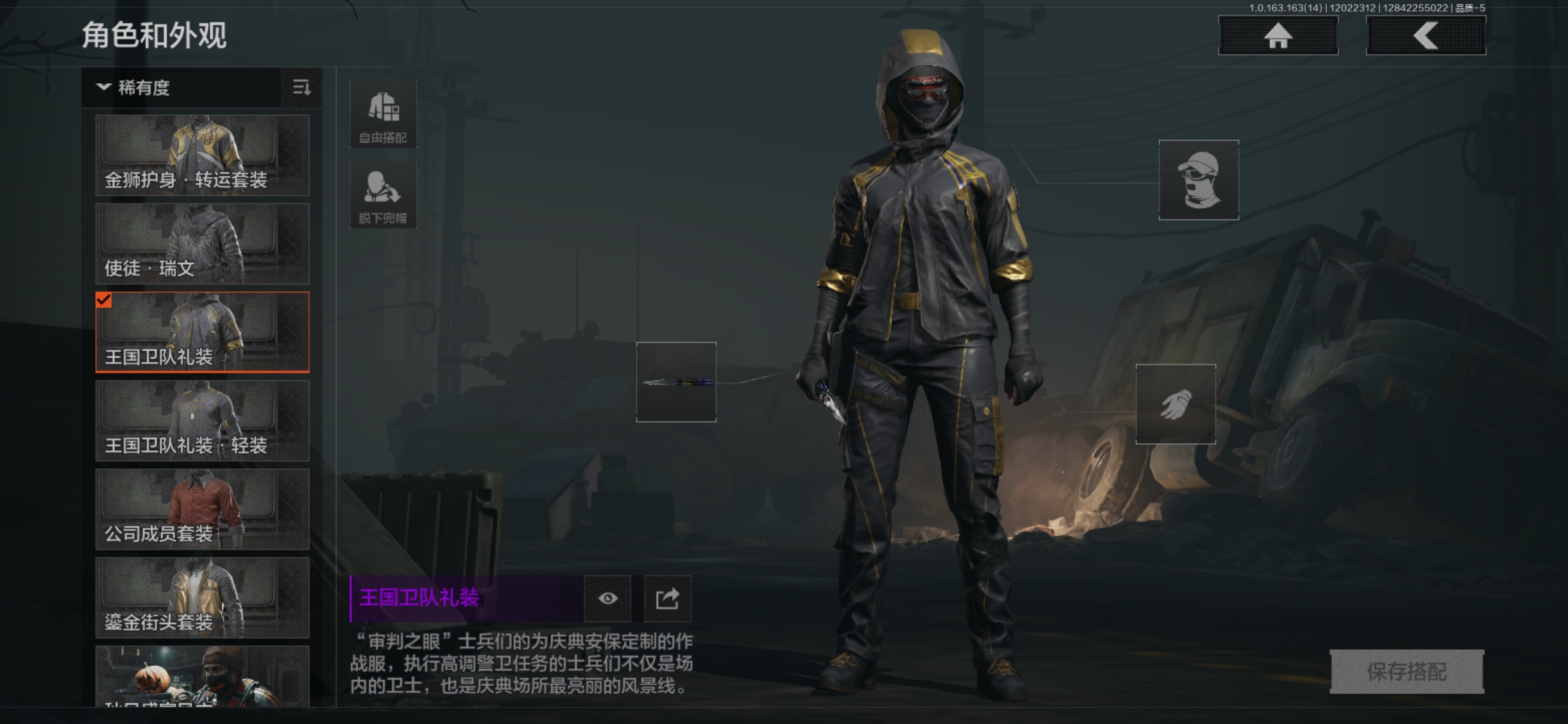【套装】 金狮护身·转运套装 使徒·瑞文 王国卫队礼装 王国卫队礼装·轻装 公司成员套装 鎏金街头套装