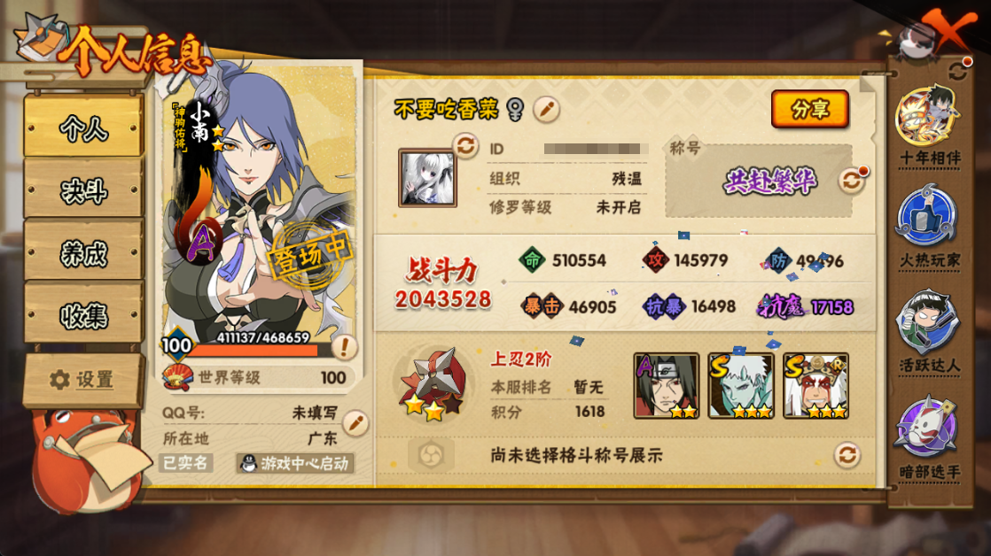 (可转苹果)204W战力十尾带土3S+泳装鼬7A战力204账