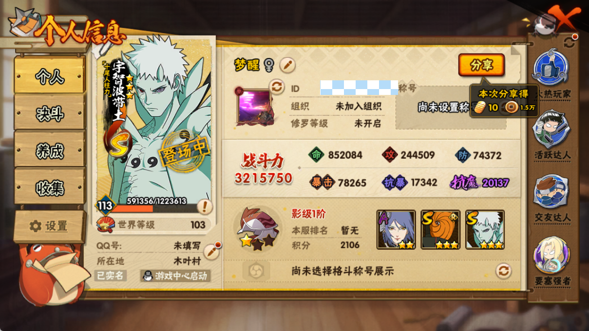 (可转苹果)321w五影斑+十尾带土4s+1直购13a战力3
