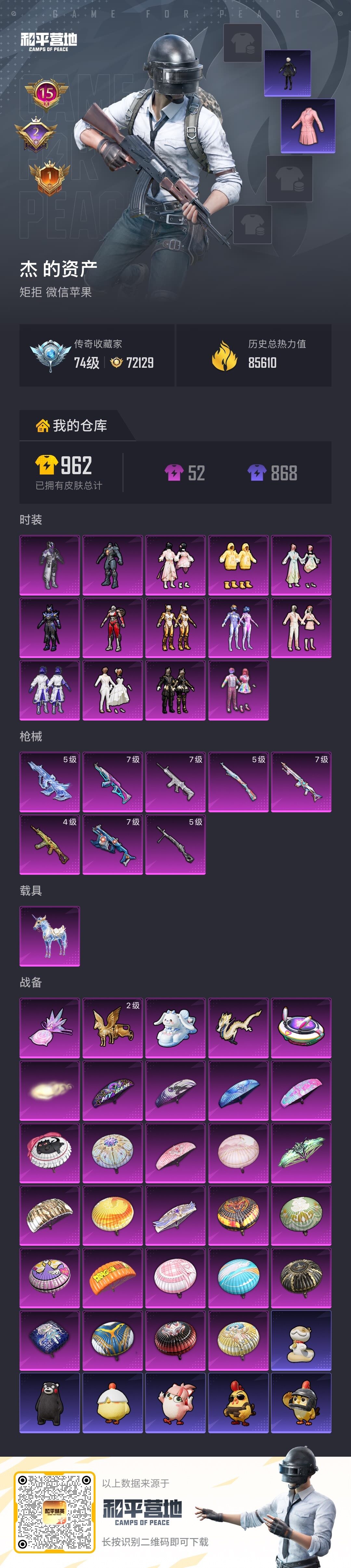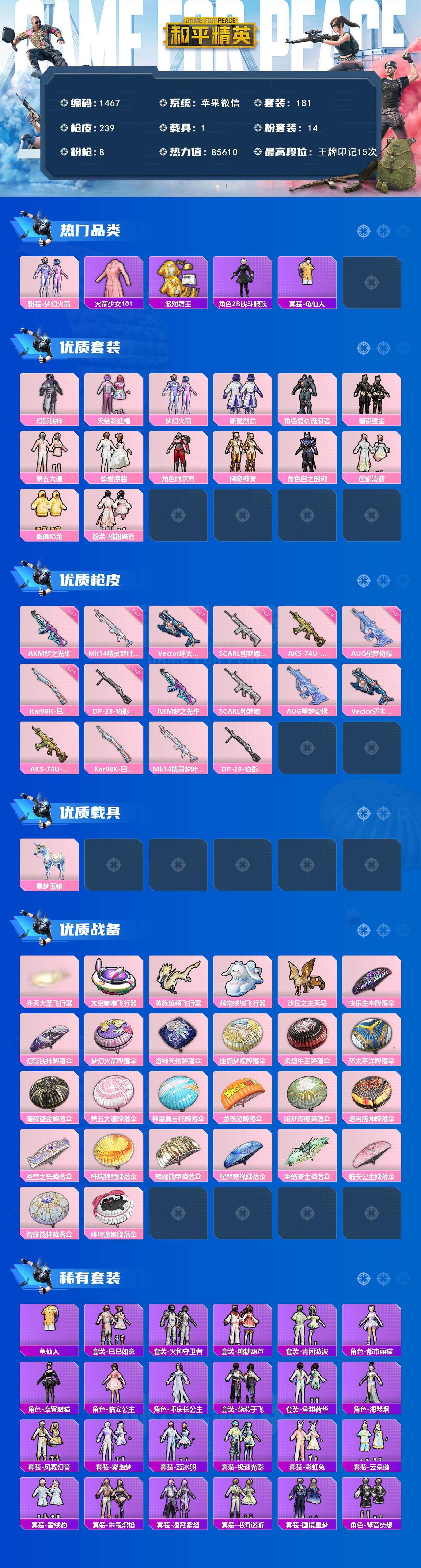 df苹果 微信-【极品公主号,素材号,老101,5级星梦AUG,火箭头,小金鞋,小白龙】14粉装-8特效枪-1载具-6粉色飞行器-85610热力值-15王牌印记-181套装-239枪皮