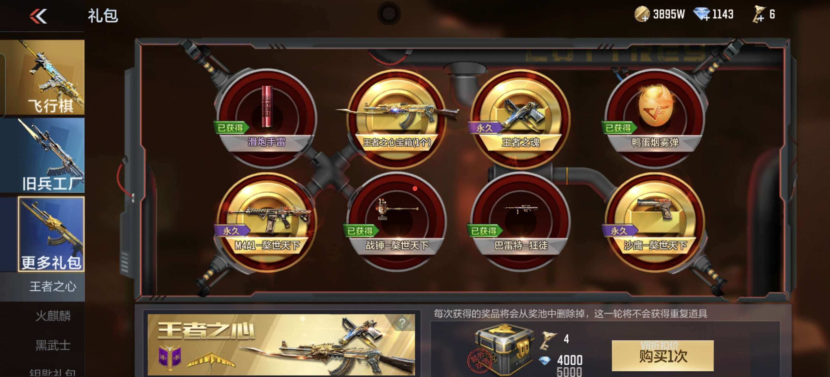 3把王怒,2个幽灵刀锋,有晴雅,AK波塞东,三至尊一同款,还有别的武器太多了截不过来,三国武器有很多