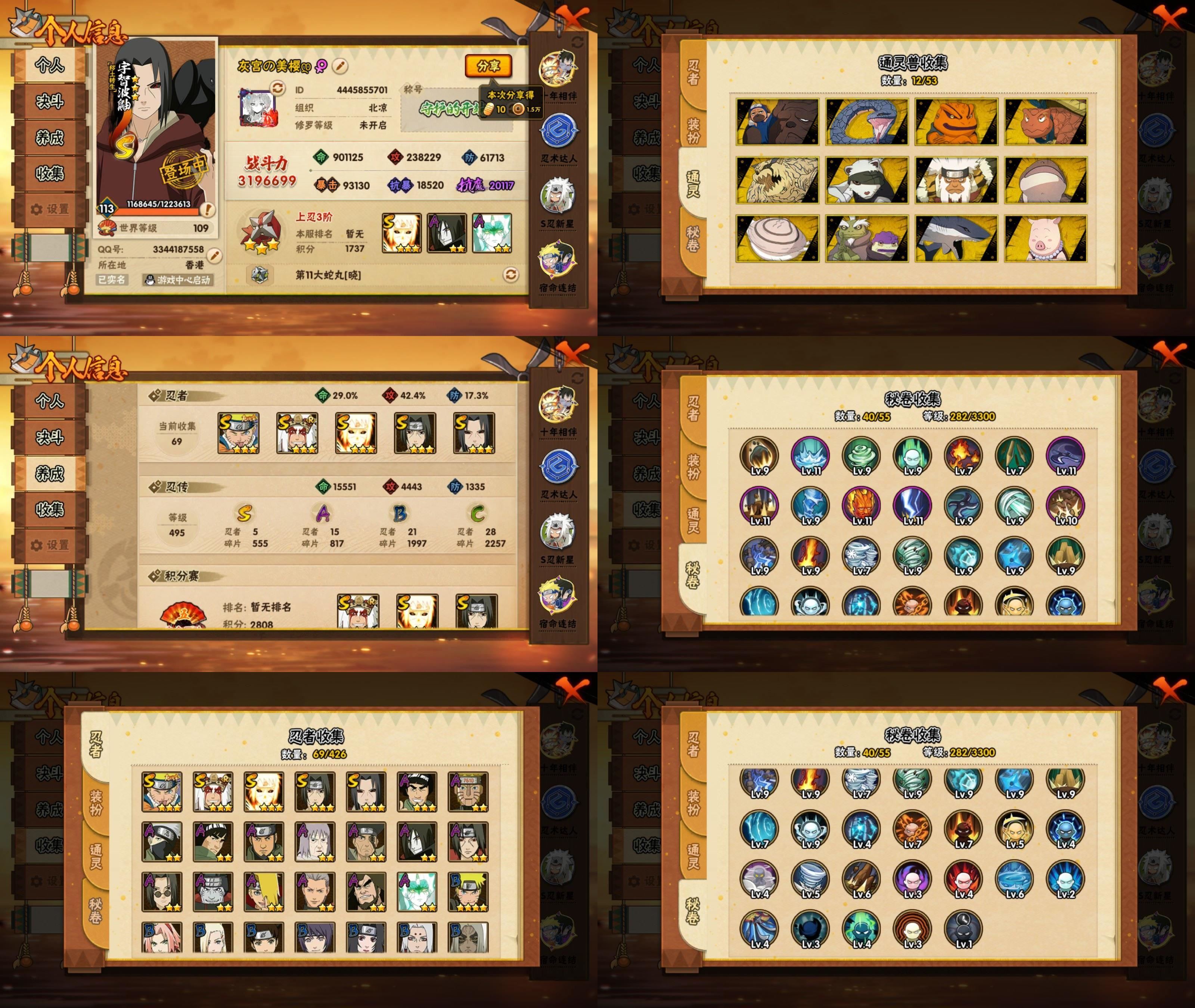 IOS/5S忍/15A忍/战力319W/V5/区服4585【S忍者】宇智波佐助「漩涡鸣人」,自来也「舞之豪杰」,宇智波鼬「秽土转生」,宇智波鼬