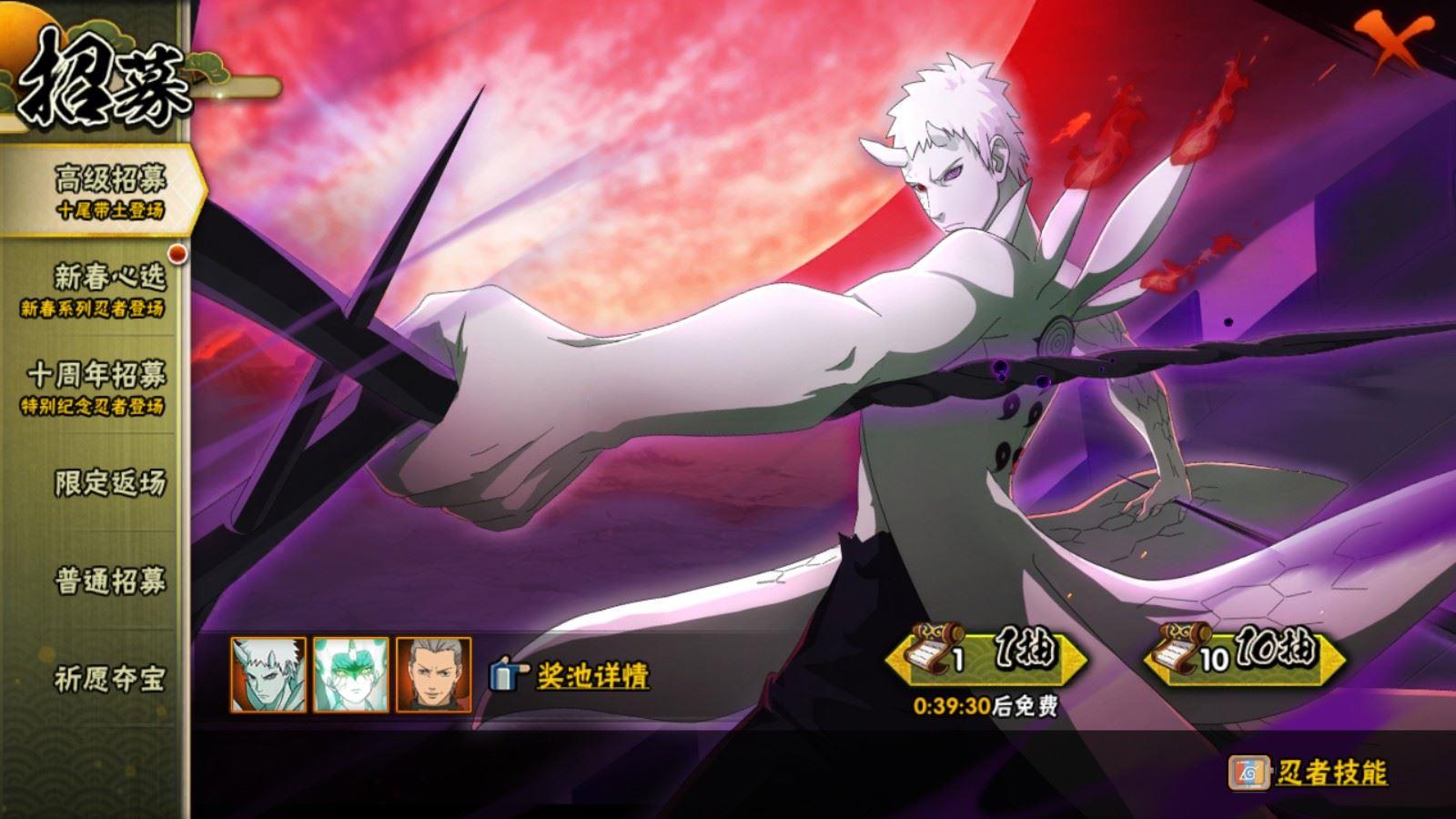 【S忍者】宇智波带土「十尾人柱力」,宇智波佐助「漩涡鸣人」,宇智波佐助「永恒万花筒」,迈特凯「S门」,自来也「舞之豪杰」,药师兜「仙人模式」,宇智波斑「白面具」,千手扉间「秽土转生」,纲手「百豪」,波风水门「秽土转生」,宇智波鼬「须佐能乎」,佩恩「天道」,波风水门,大蛇丸,纲手,