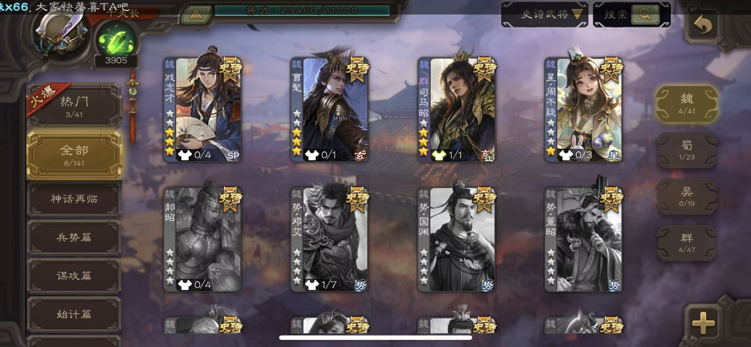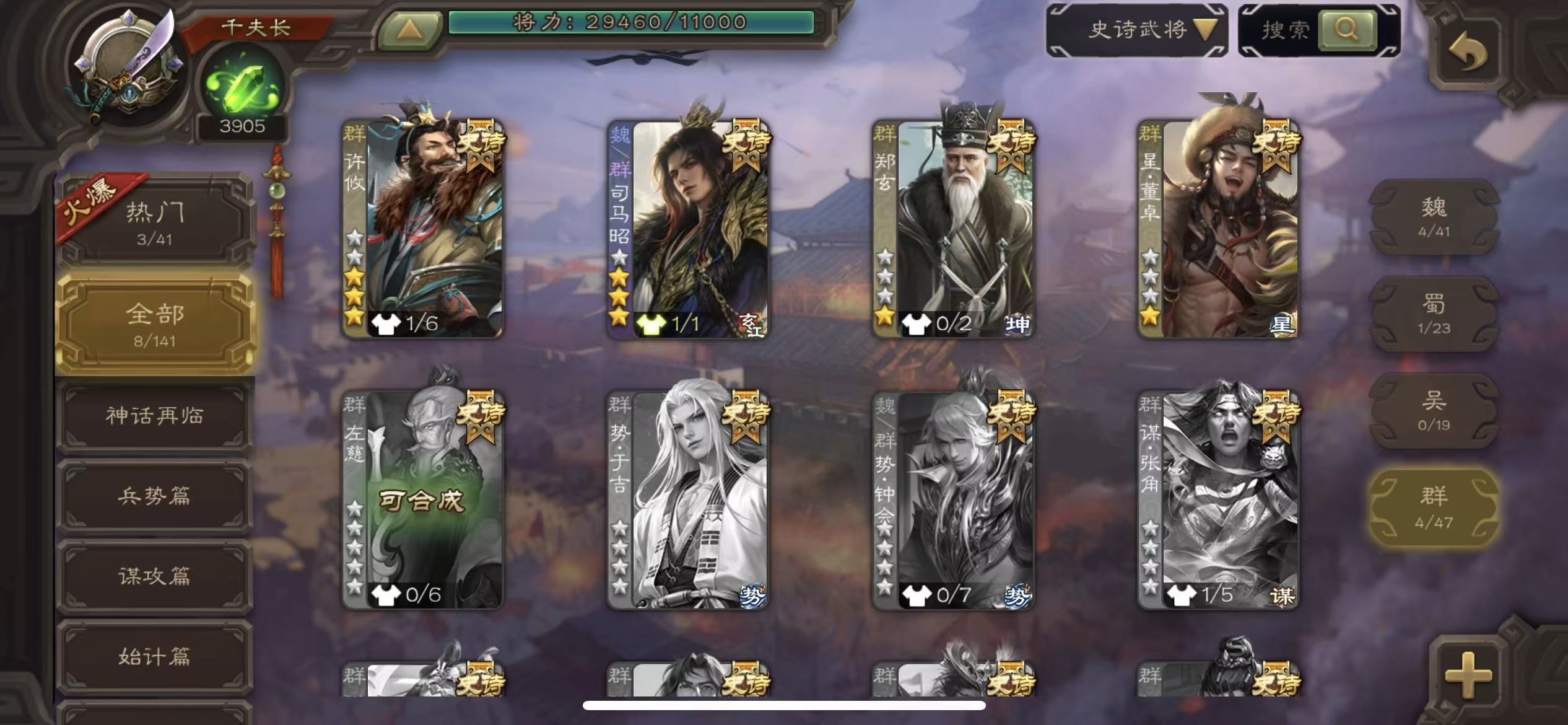 史诗武将数量: