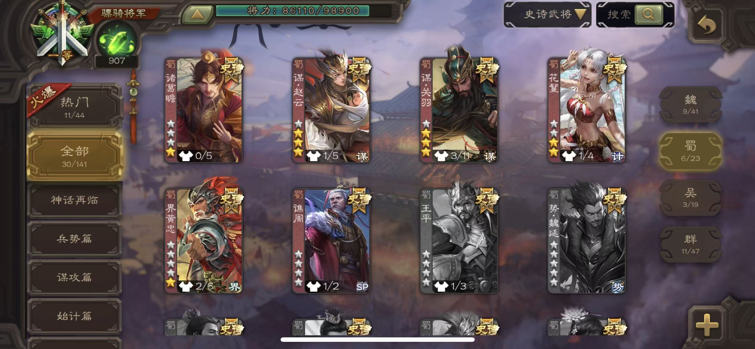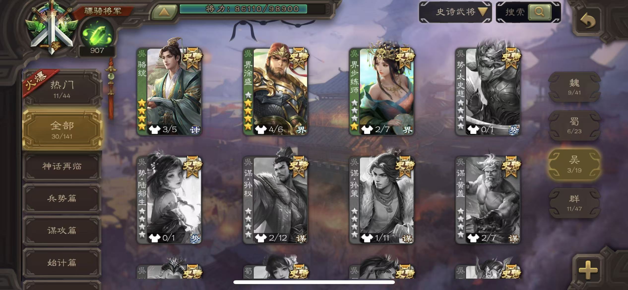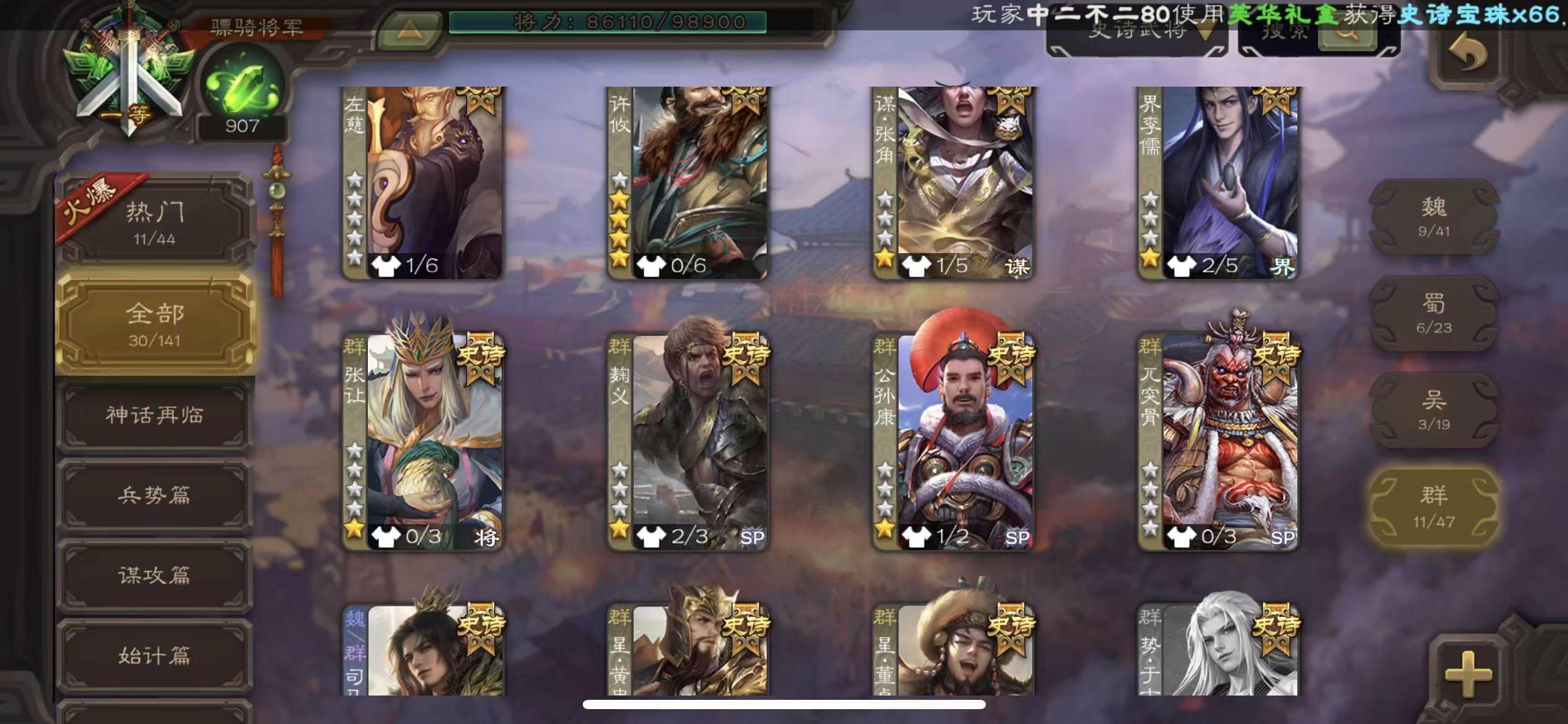 史诗武将数量: