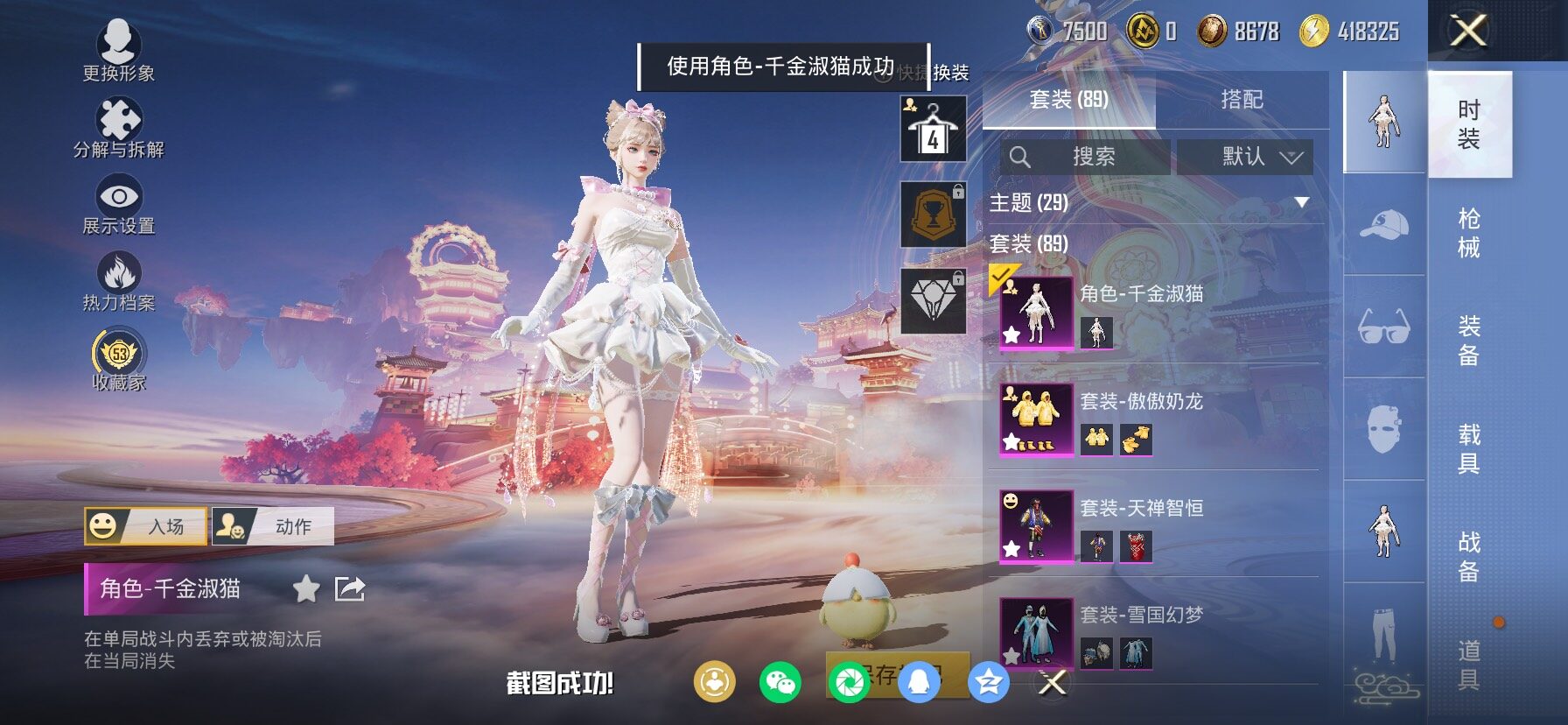 【4特效枪】 AKM-绿萝繁花 (5级) Kar98K-巳巳如意 (5级) MG3-酷泡奶龙 (7级) DP-28-豹影疾电 (5级)
