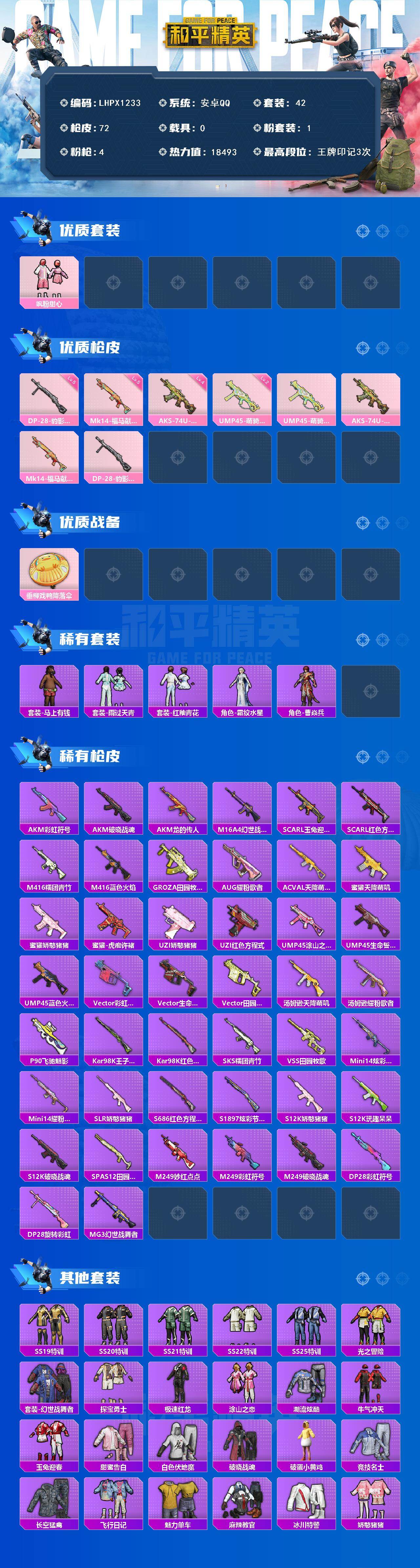 【特价出售/店主推荐】安卓 手Q-1粉装-4特效枪-0载具-0粉色飞行器-18493热力值-3王牌印记-42套装-72枪皮