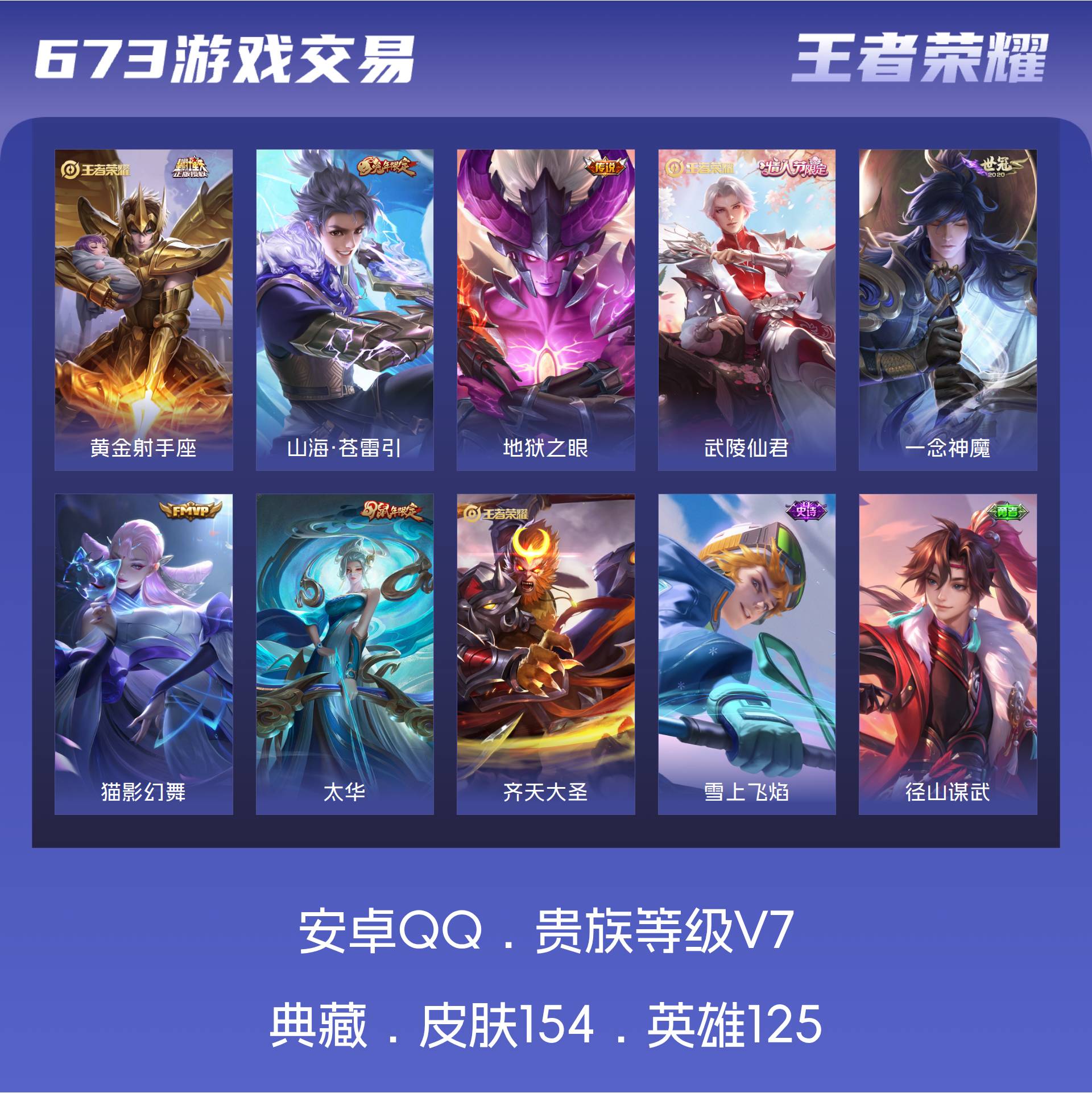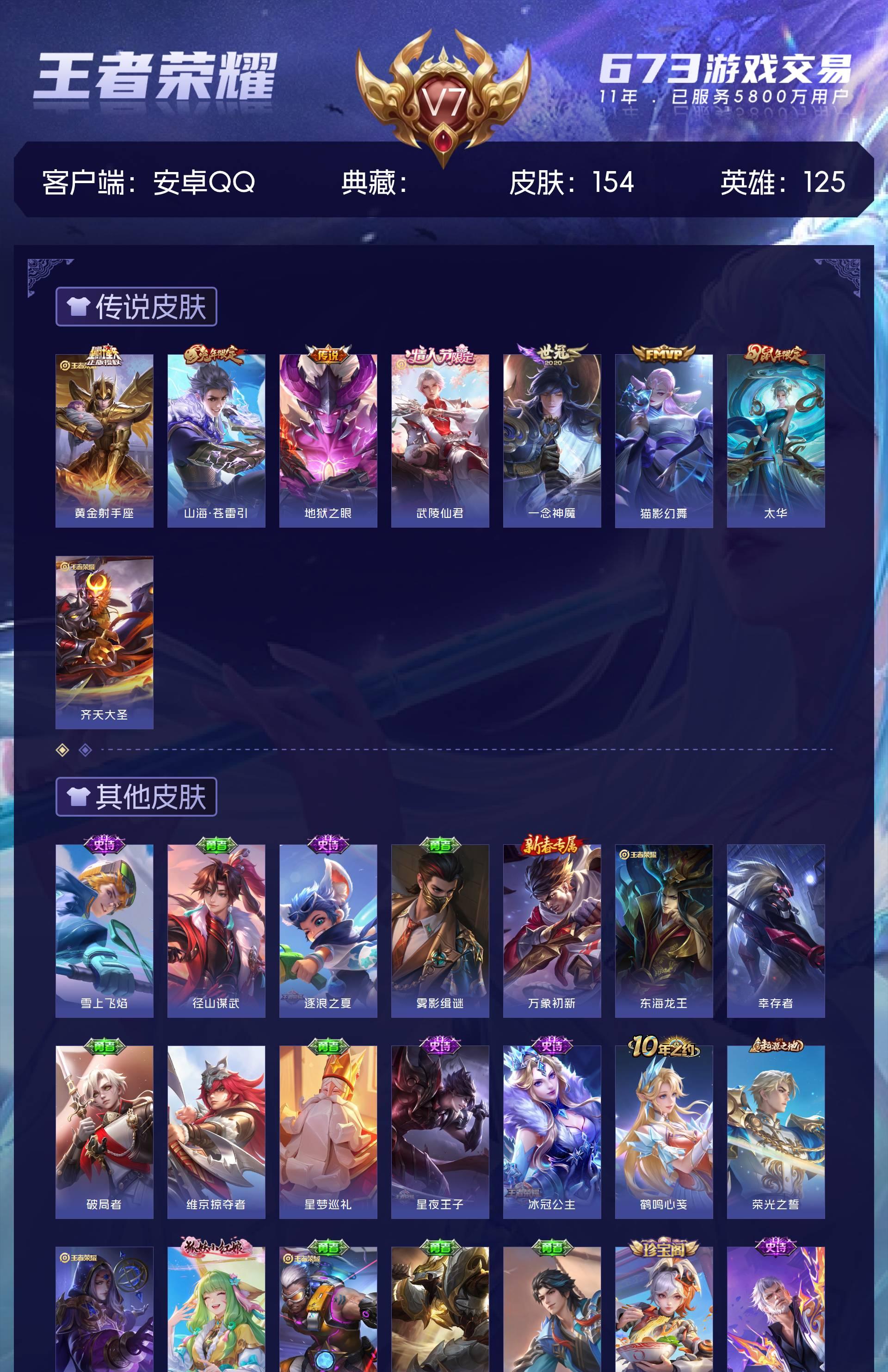 V7 皮肤154 英雄125 尊贵铂金 传说8 其他皮肤152