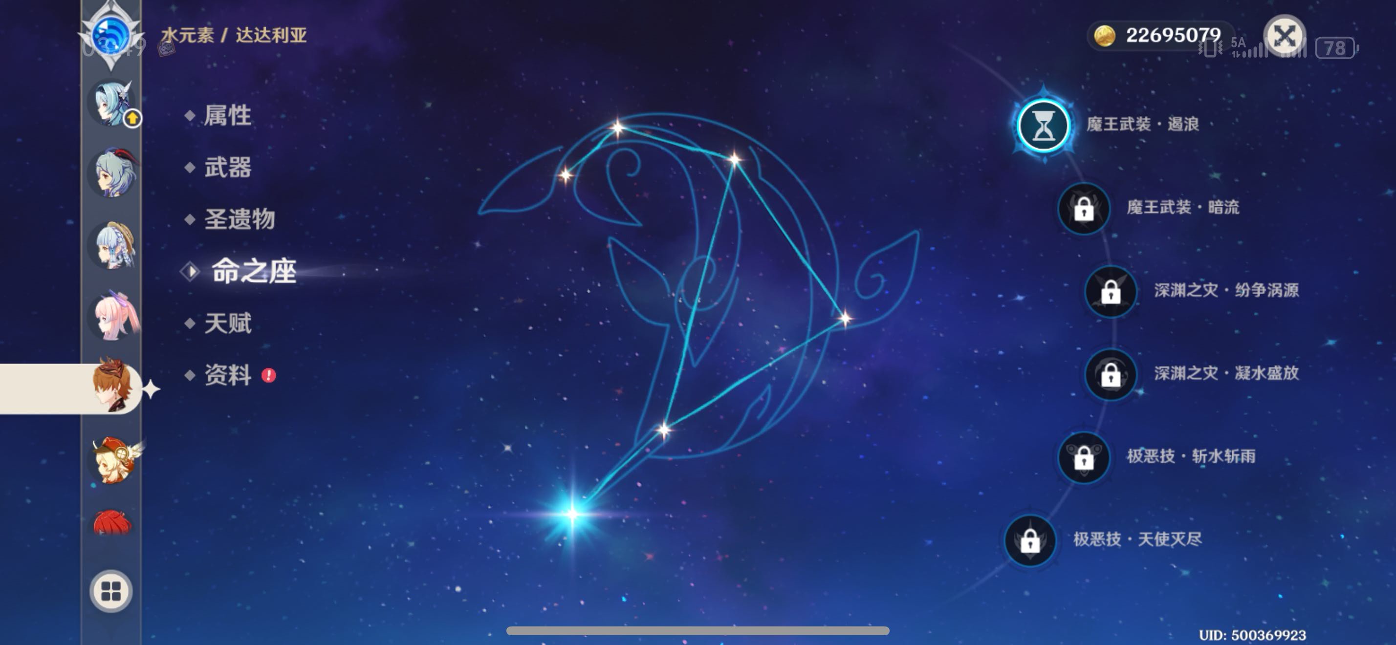 78金,二命雷神,水神,一命岩神,胡桃,鸭鸭,还有好多五星时装,世界原石大量,