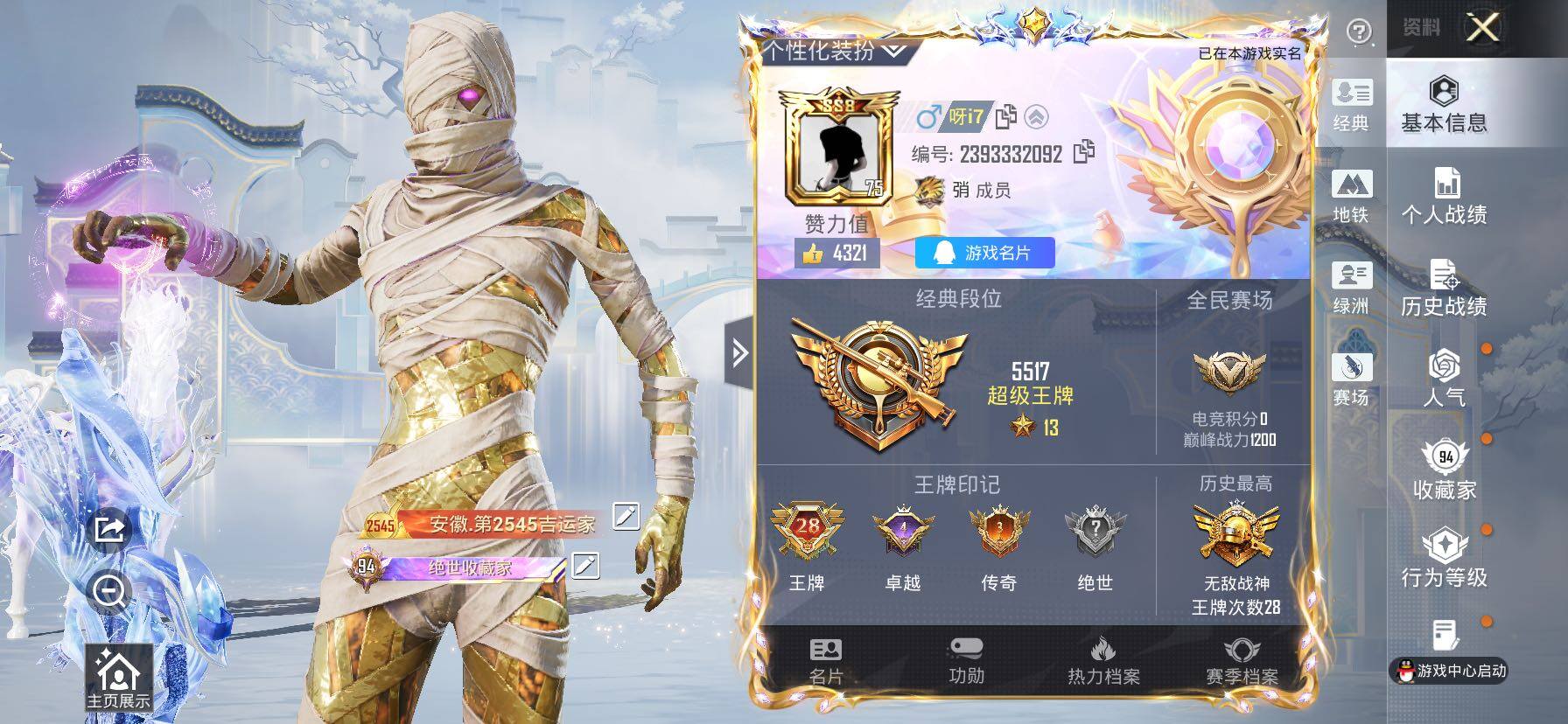 【顶级战神素材号!2个战神框 2级图卡盟 木乃伊 赤蝎 都市 天网 金鞋 新101 雪国 怪诞 猪妹 放客 7级AUG星梦 6级四噶哪吒 星星裤 粉熊包 满地铁天赋】YXc26553-【无二次】【因赛季更新游戏段付以上号为准!】