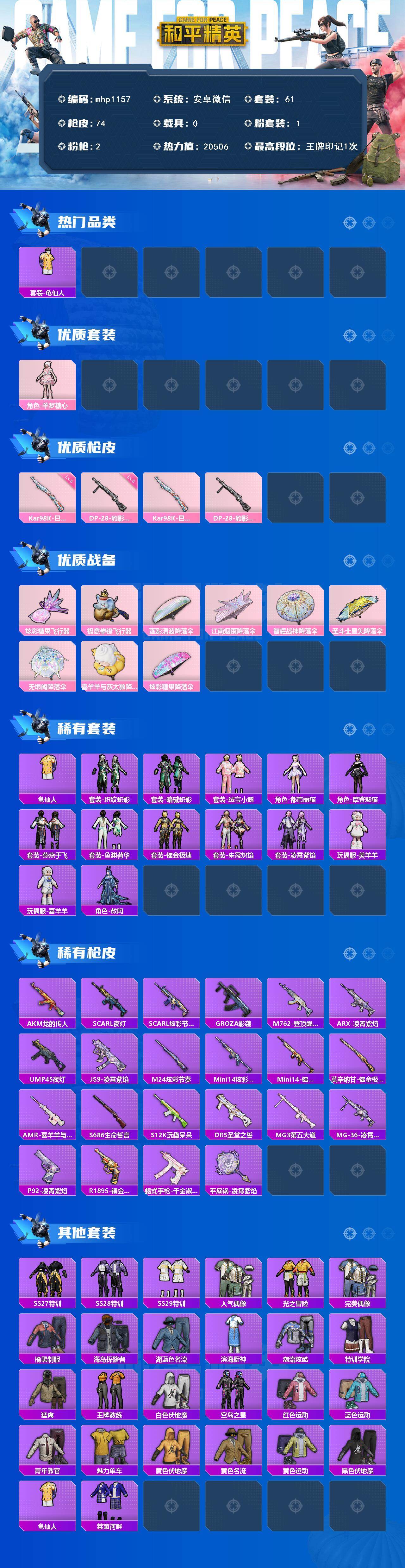 【mhp1157】安卓 微信-1粉装-2特效枪-0载具-2粉色飞行器-20506热力值-1王牌印记-61套装-74枪皮