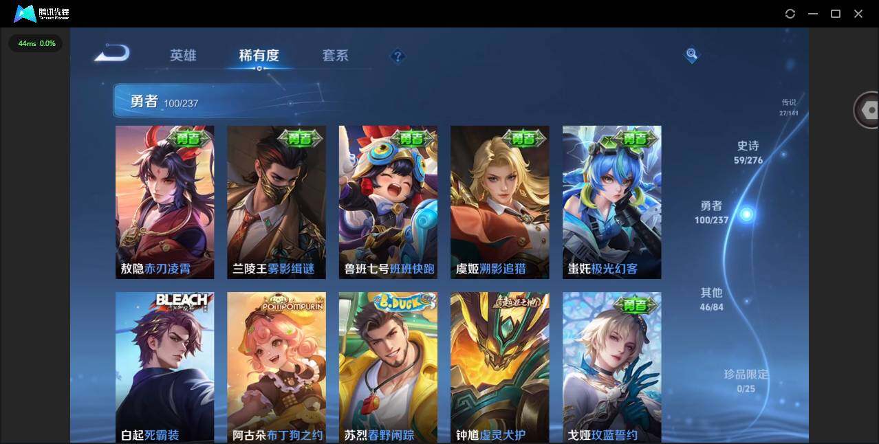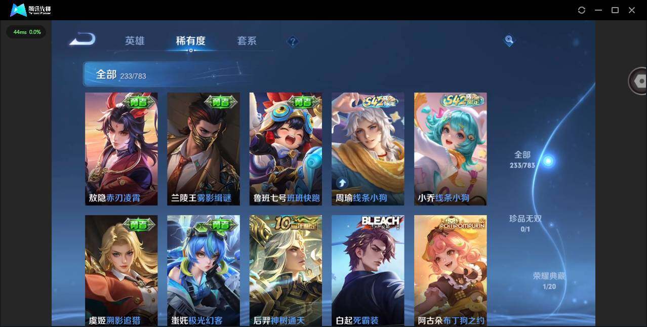 【龙年限定全套】贵族等级: V8 英雄数: 128 皮肤数: 233 荣耀水晶