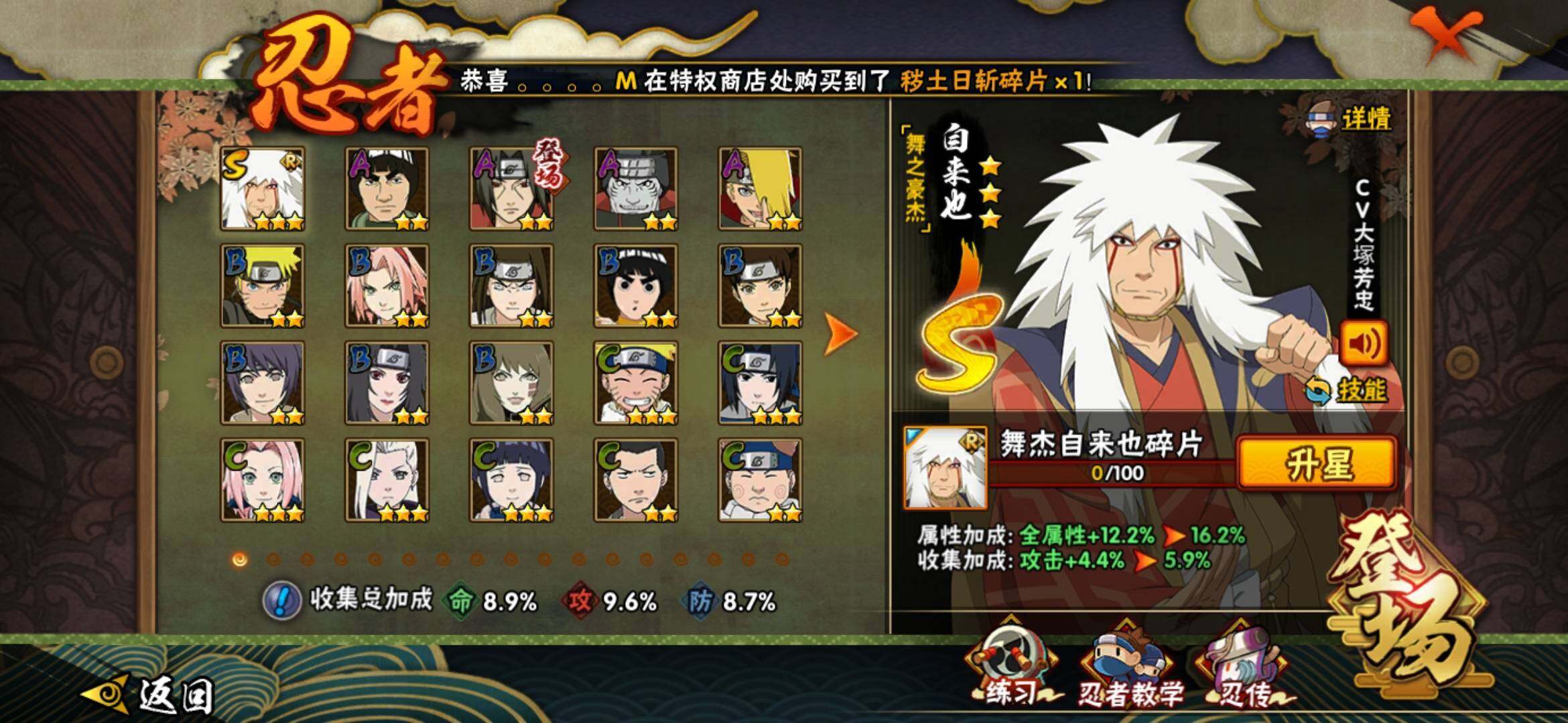 【低价火影小号!】:1S级忍者数-4A级忍者数【S级忍者】:自来也「舞之豪杰