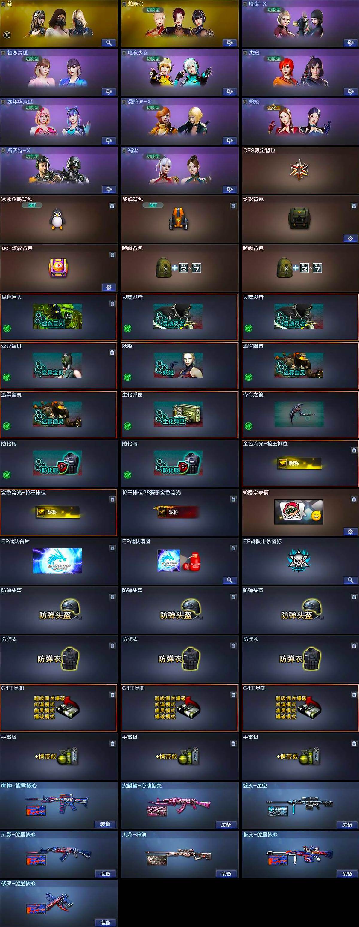 【人偶武器】:迷你宝贝,AWM-灵狐-15周年嘉年华,COP-旗袍,迷你生化手雷*2,生化手雷-机甲核心