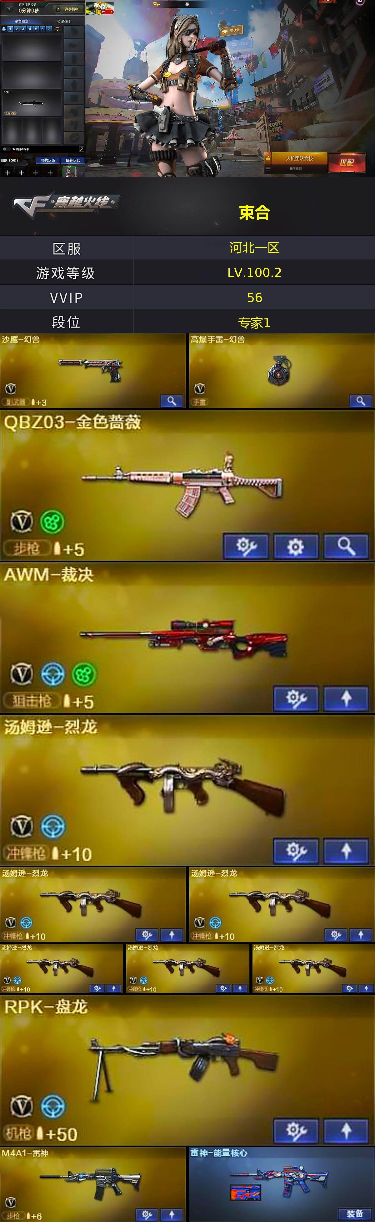 【热门武器】:QBZ03-金色蔷薇,死亡之眼,汤姆逊-烈龙*6,RPK-盘龙,沙鹰-修罗*5,高爆手雷-幻兽
