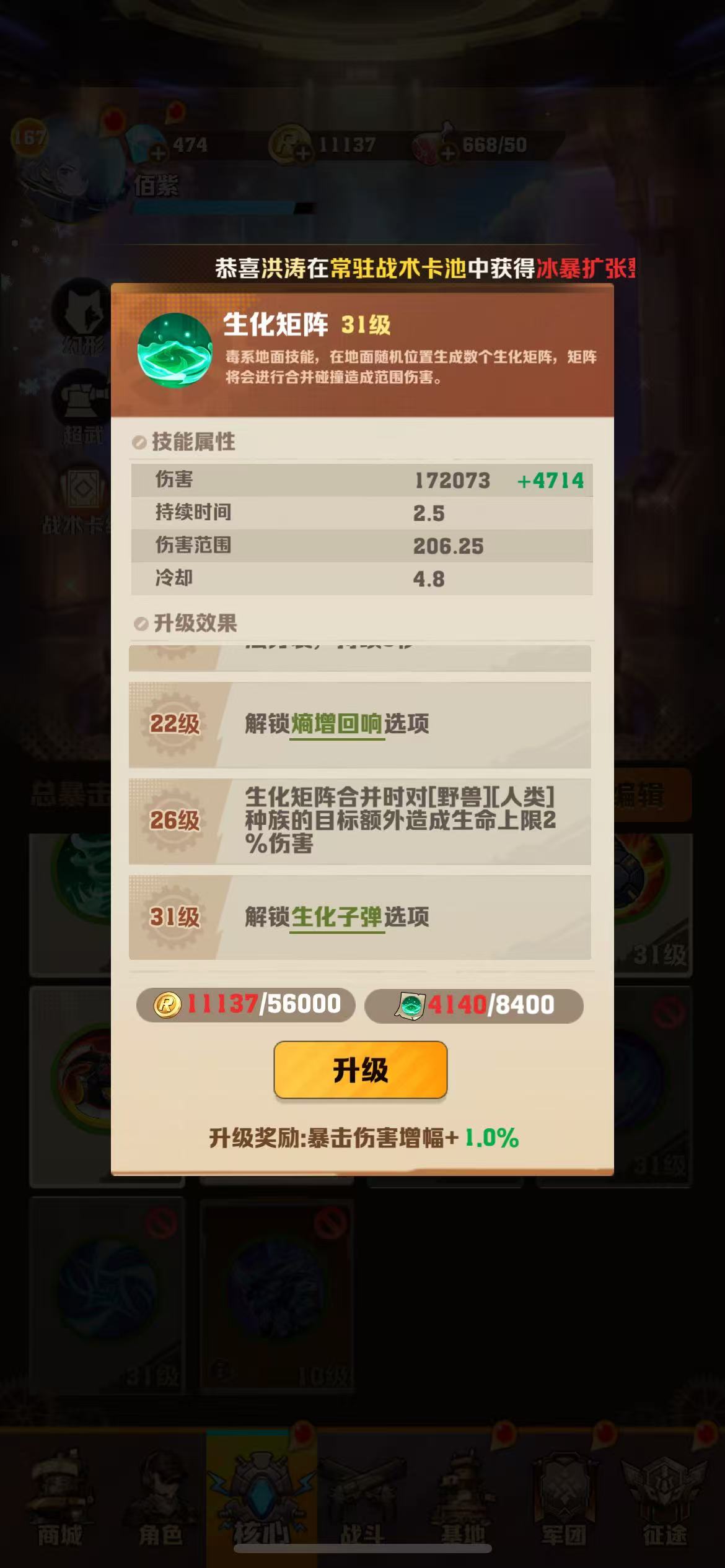 新区高战力!炫彩冰!2代电,行星车皮!8阶工程师!31级矩阵毒子弹!40至尊,月卡!醒狮,人面鸟空姐