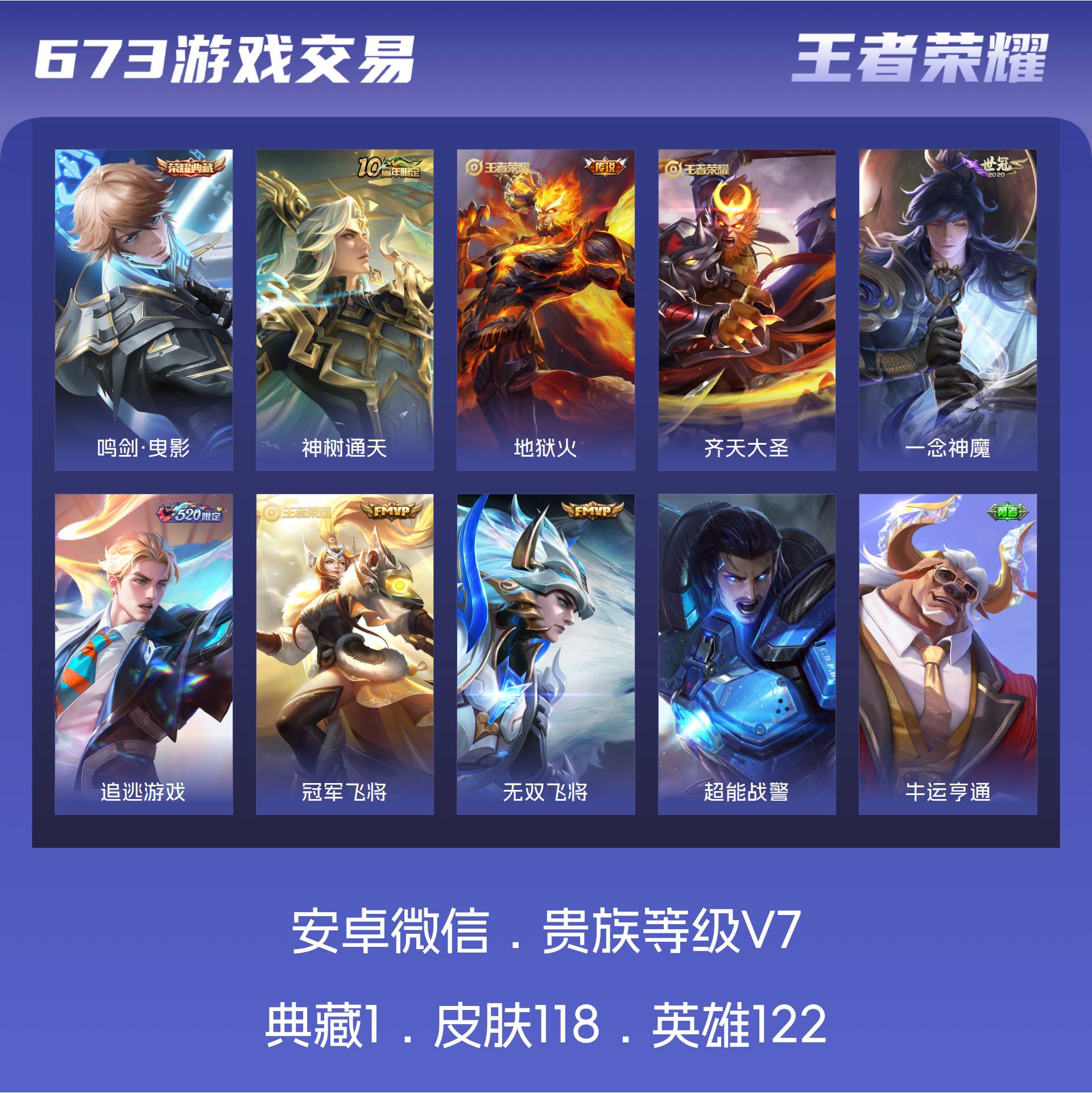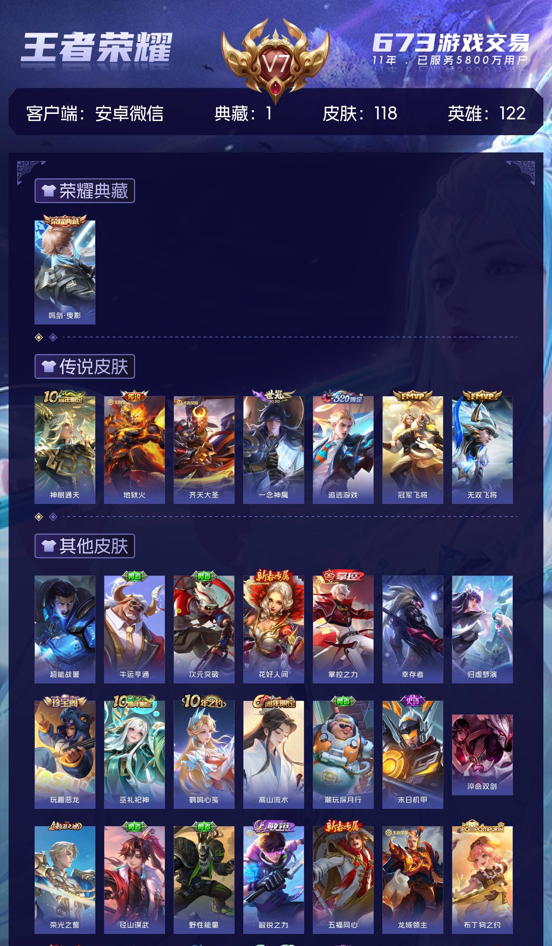 V7 皮肤118 英雄122 荣耀黄金 荣耀典藏1 传说7 其他皮肤116