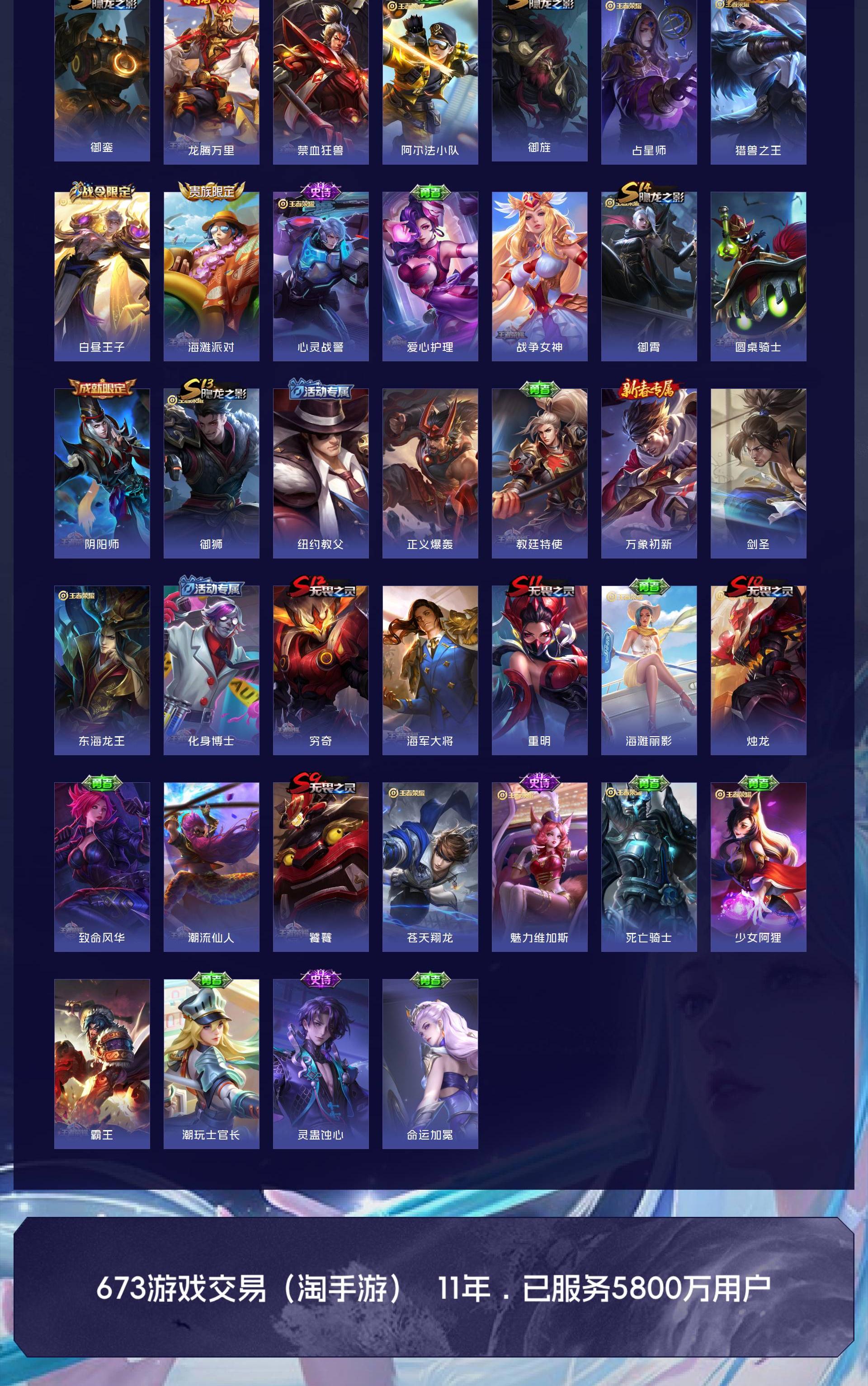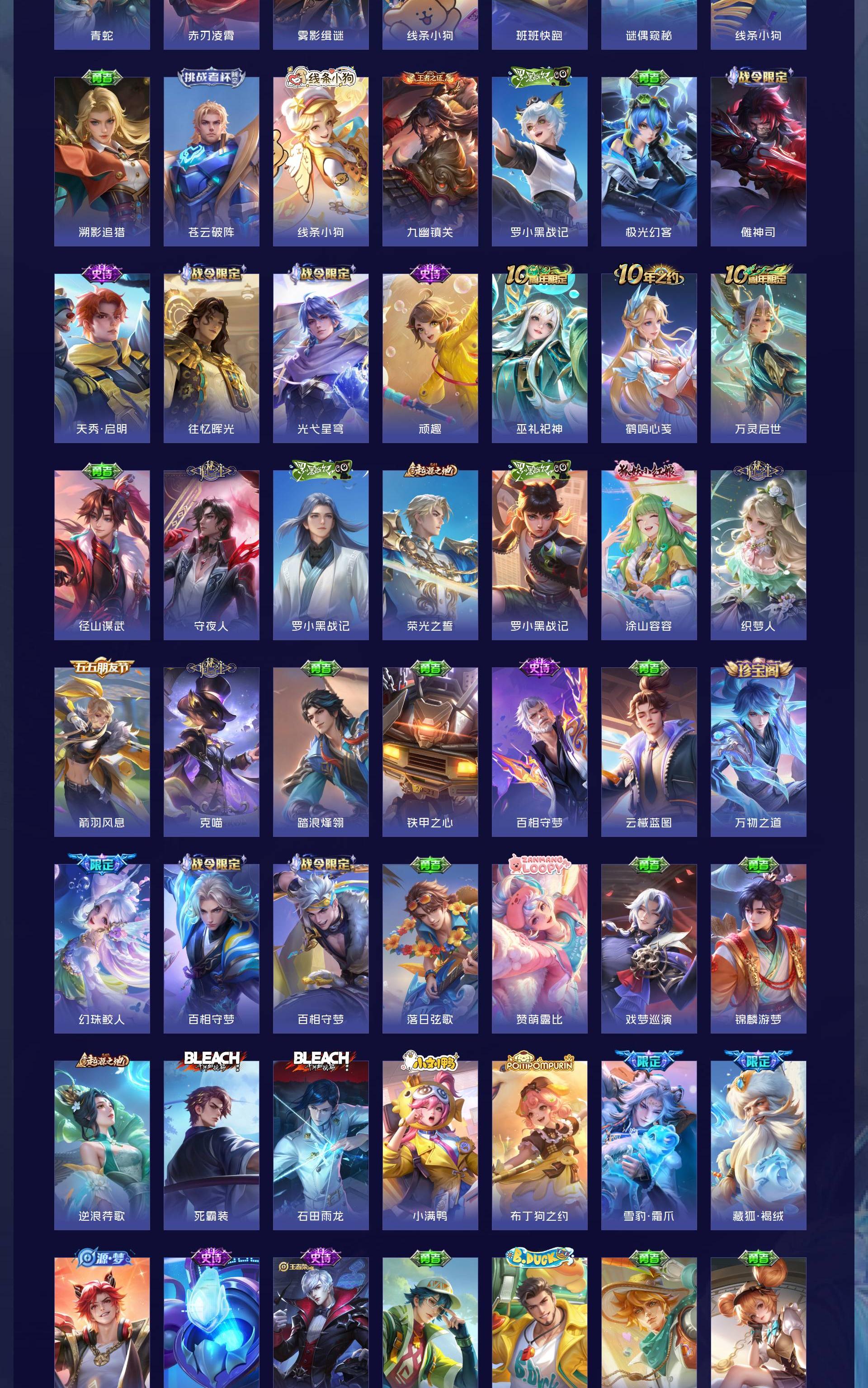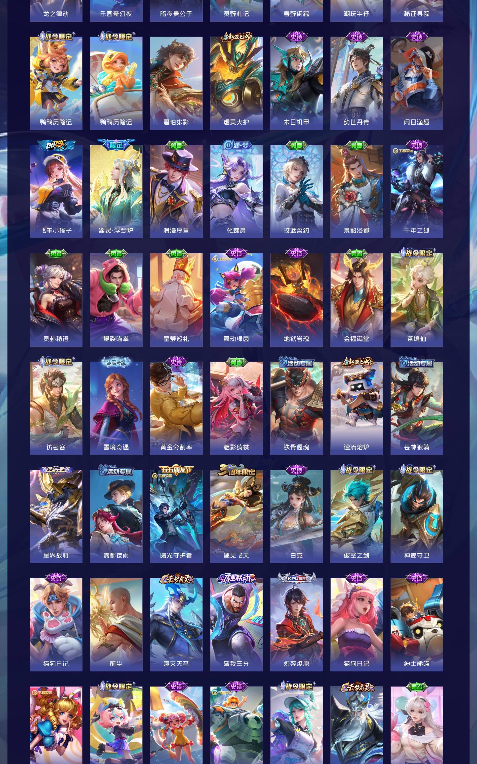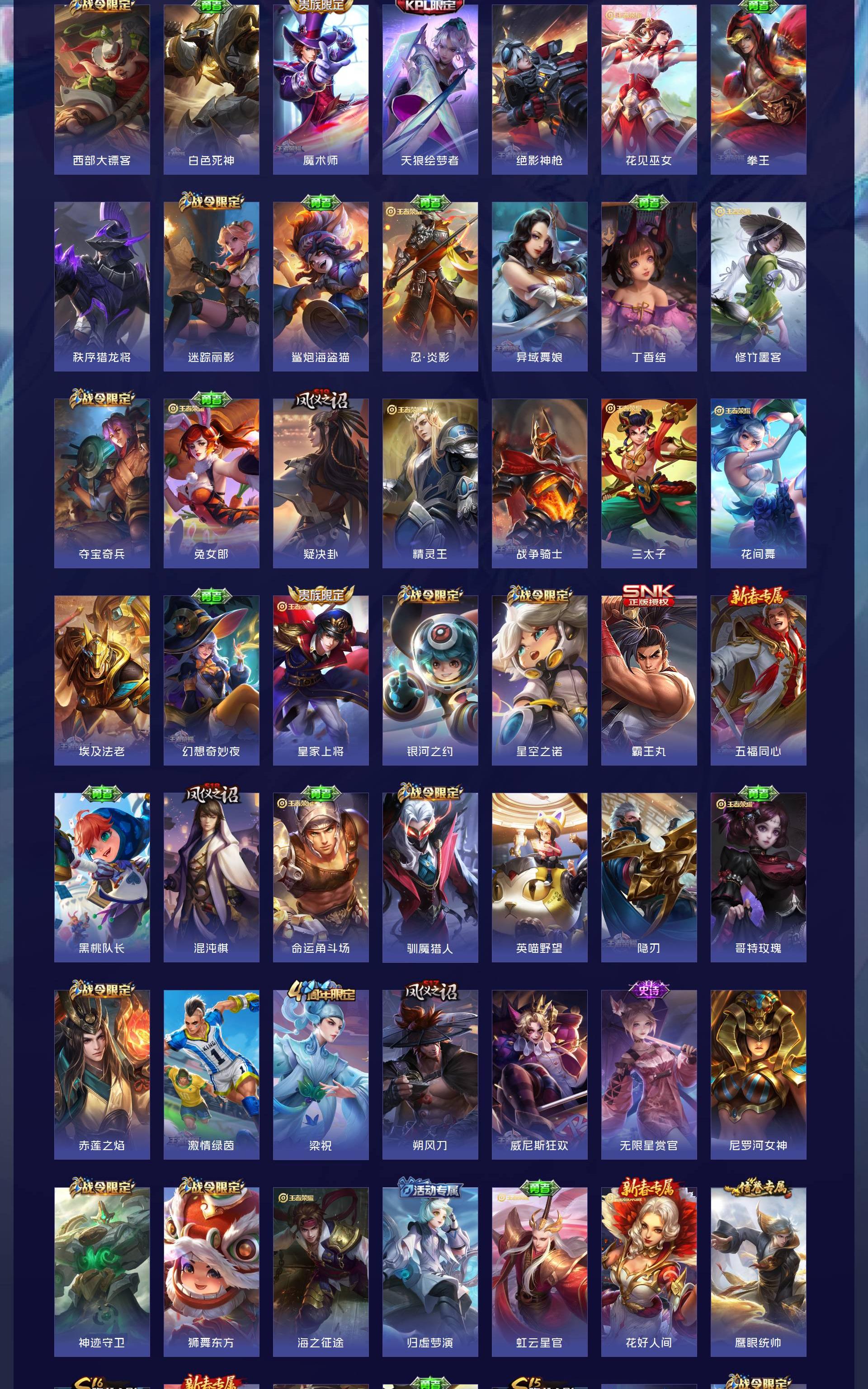 V10 皮肤482 英雄129 至圣王者 荣耀典藏4 无双皮肤1 珍品传说1 传说45 其他皮肤438