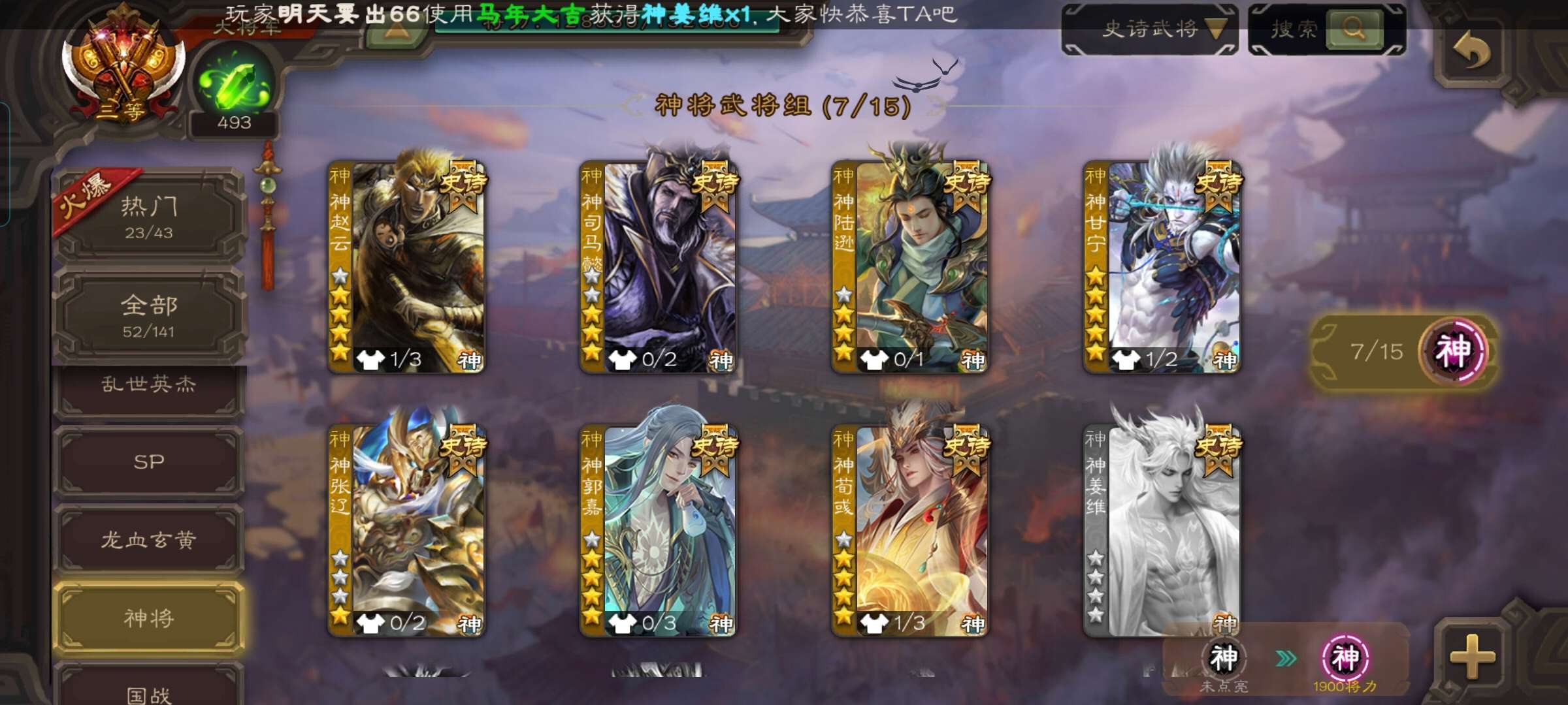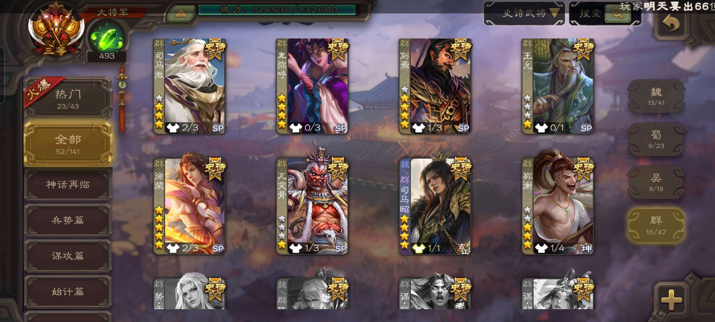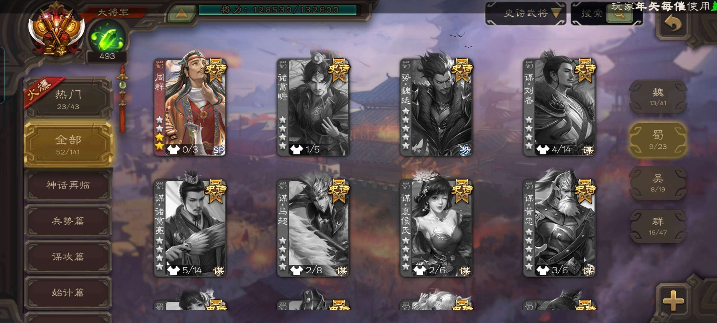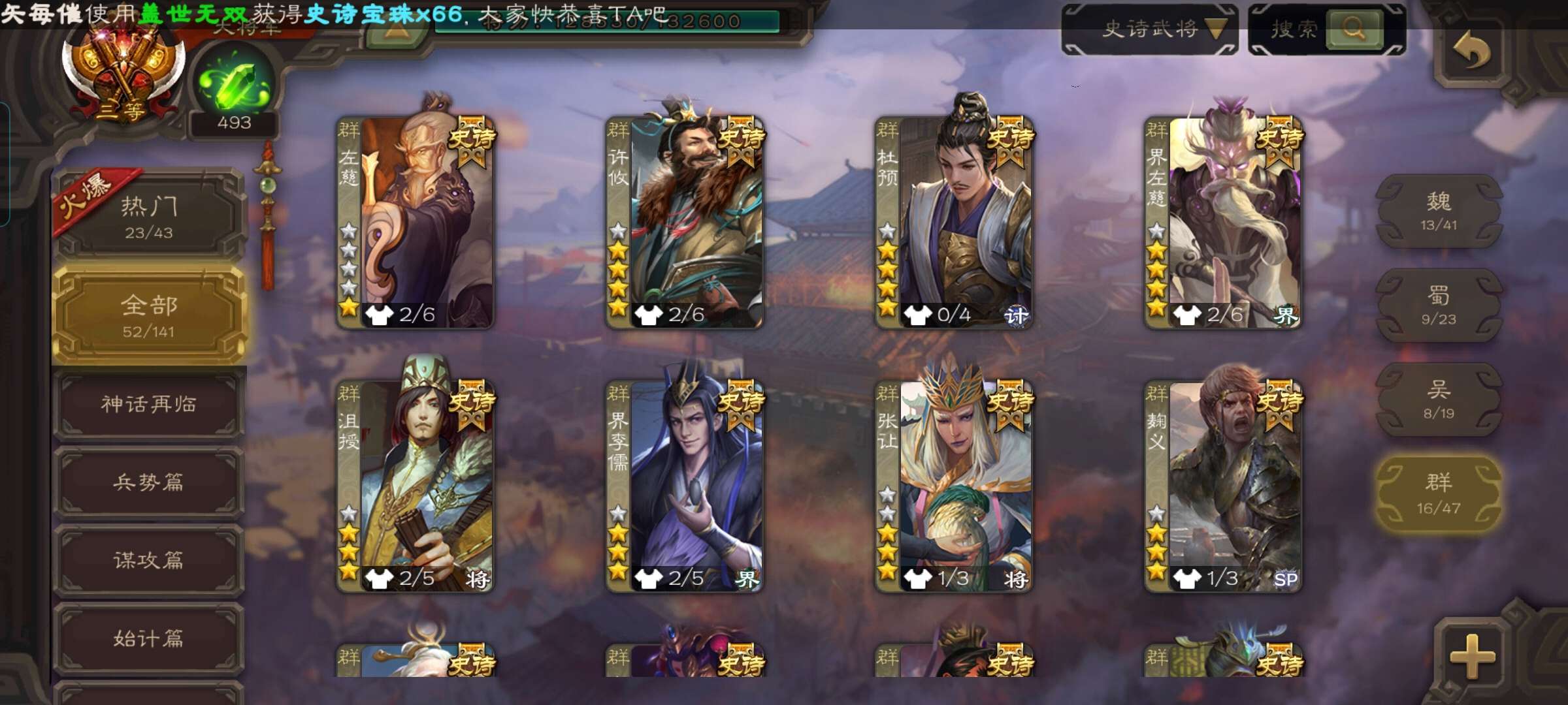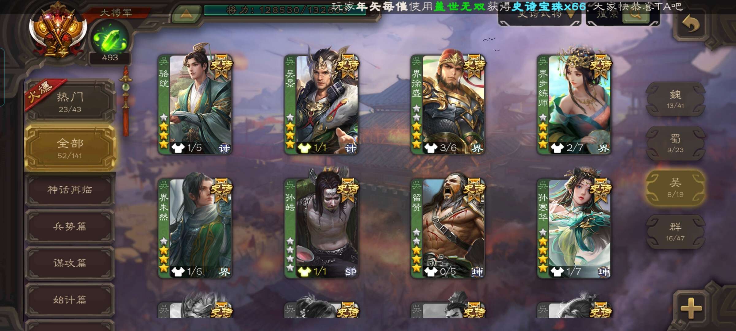 史诗武将数量: