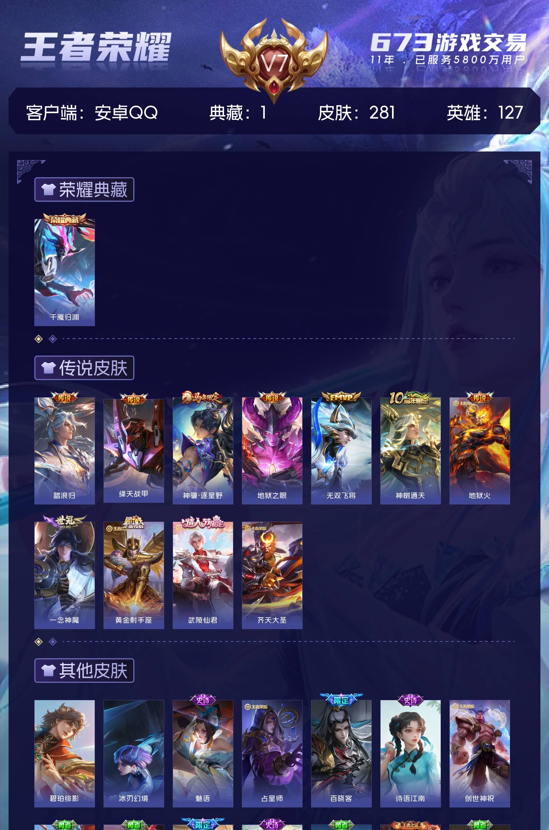 V7 皮肤281 英雄127 最强王者 荣耀典藏1 传说11 其他皮肤275