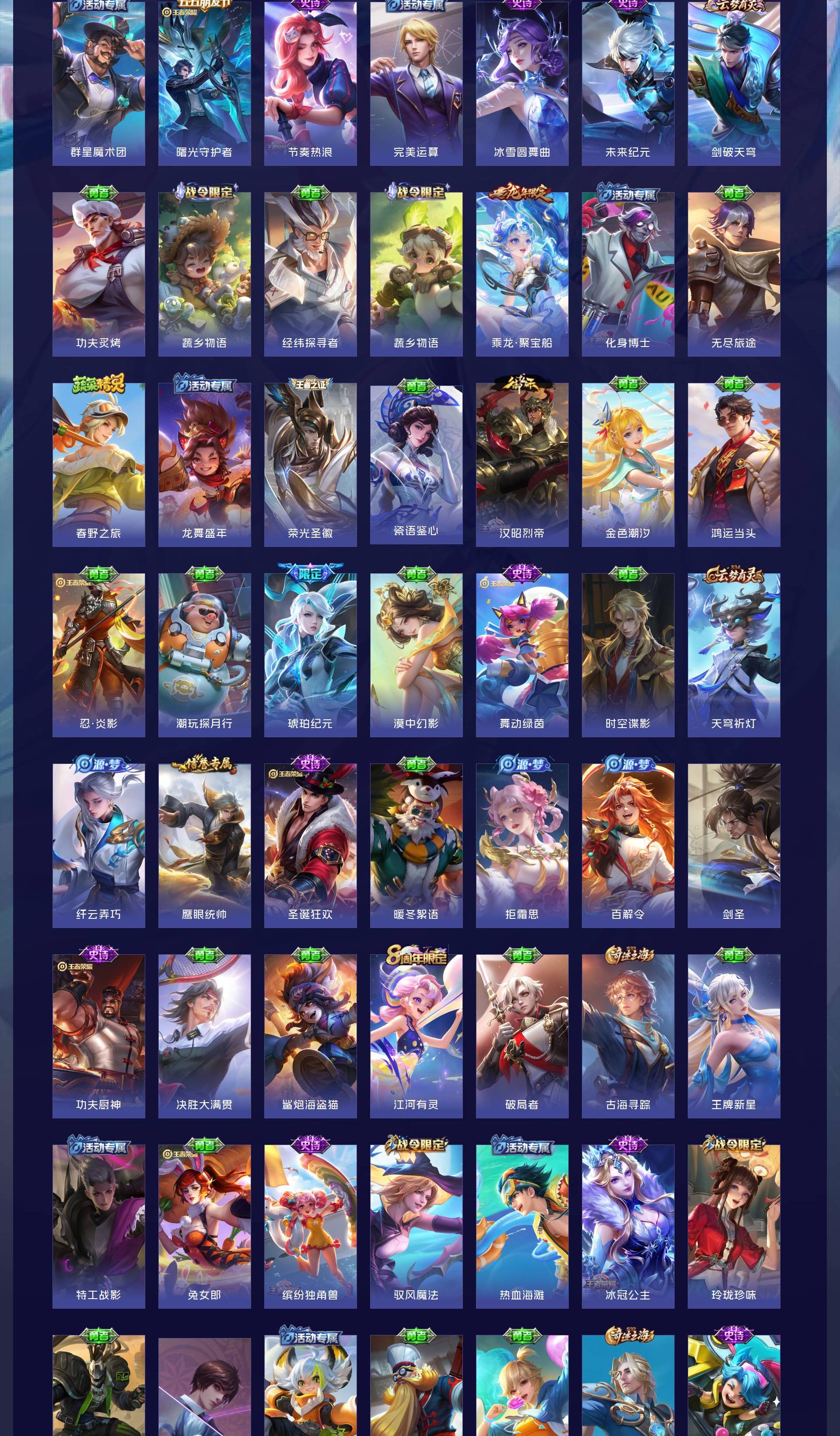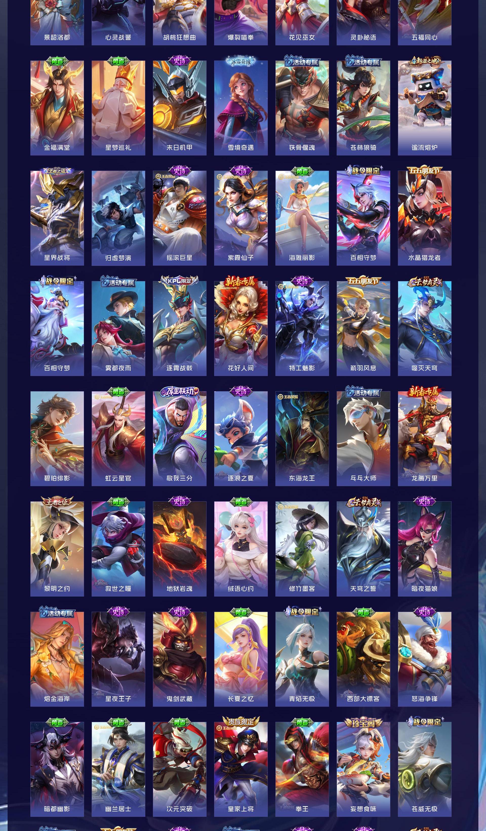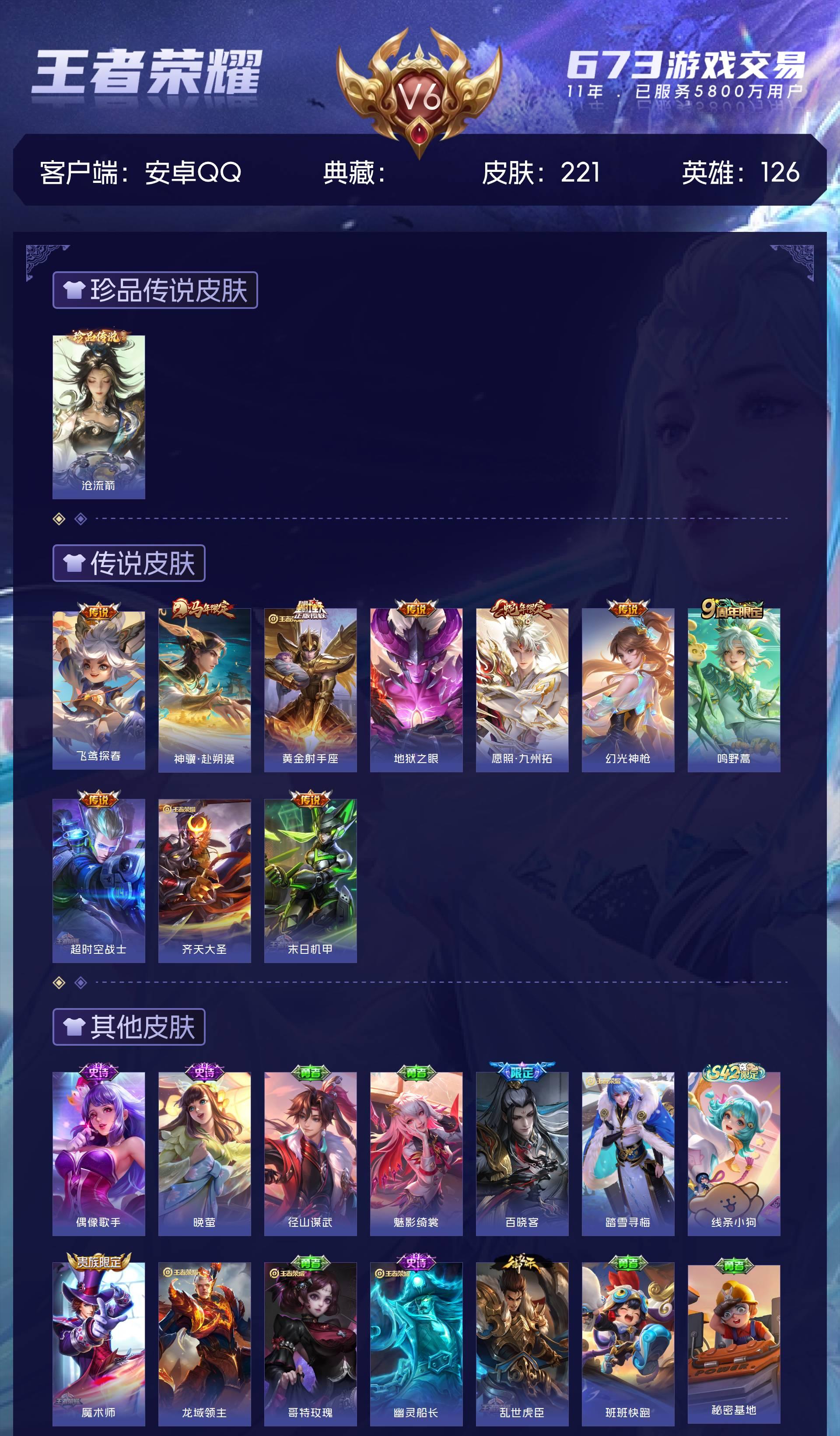 V6 皮肤221 英雄126 荣耀王者 珍品传说1 星传说2 传说10 其他皮肤216